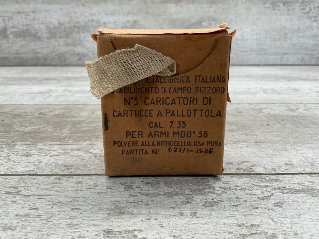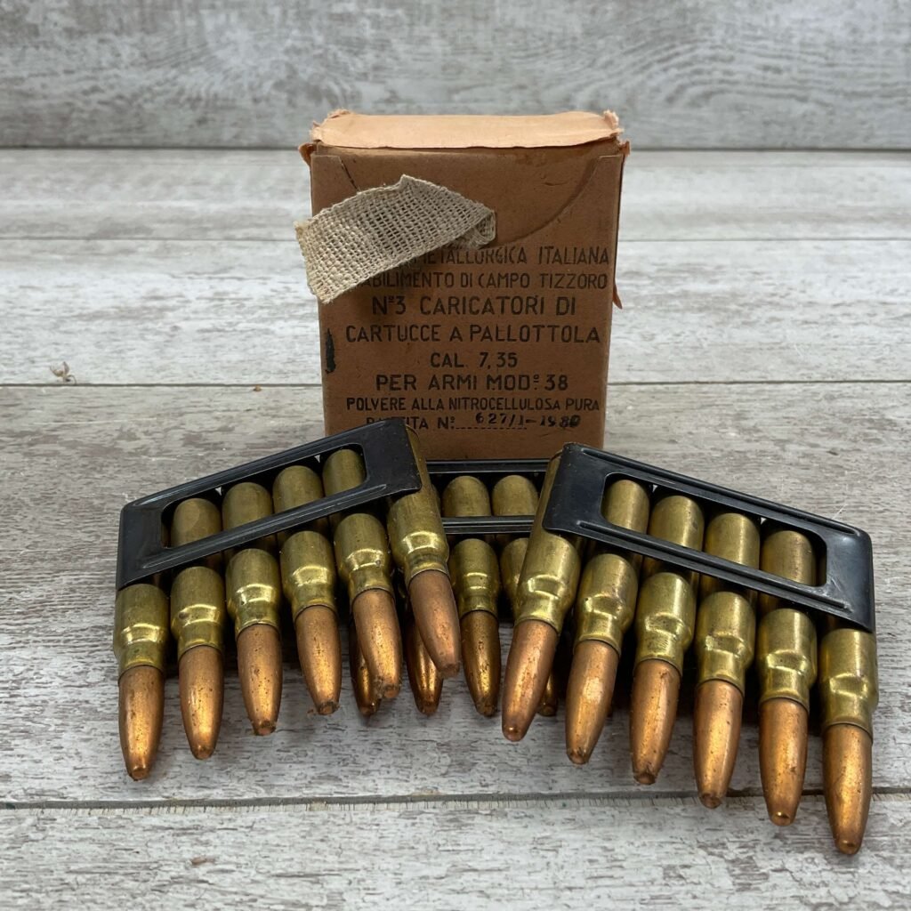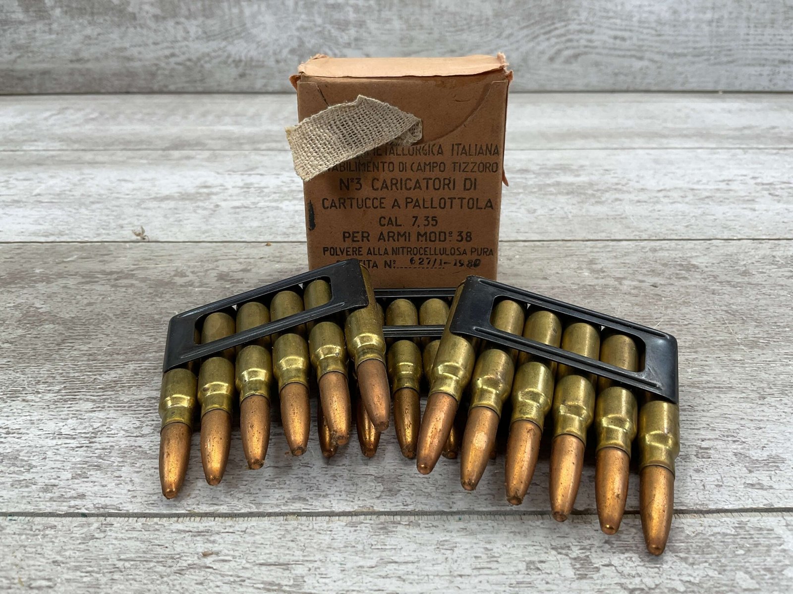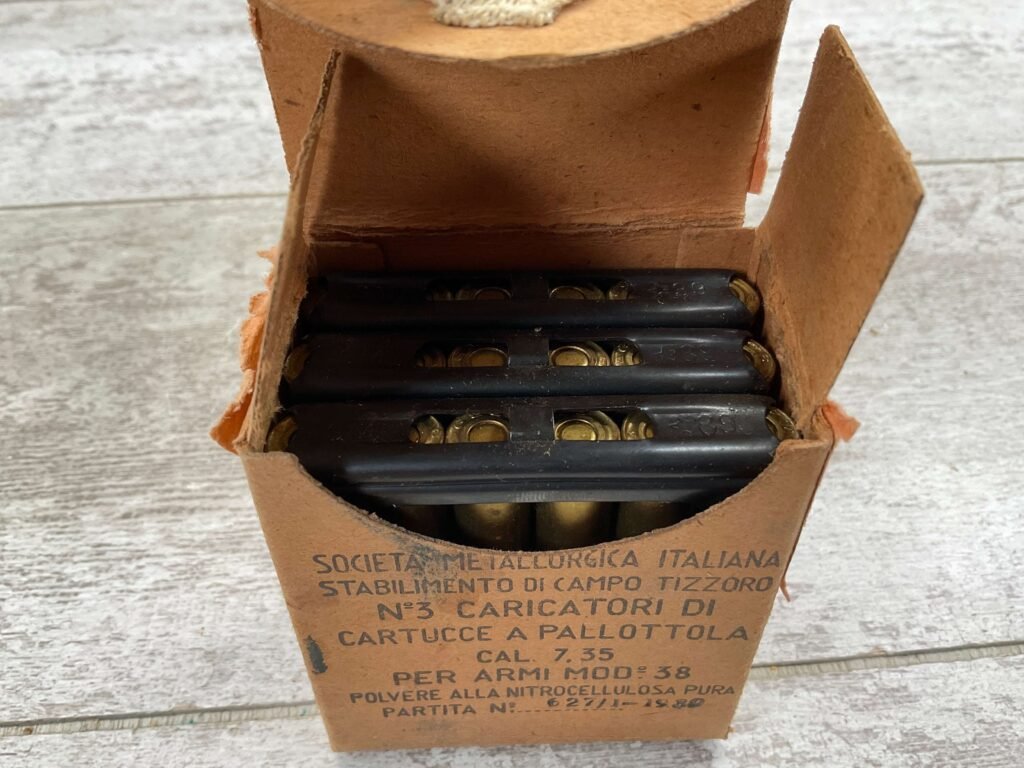 7.35 CARCANO ITALIAN AMMUNITION, 1939, VINTAGE, FULL BOX, GREAT CONDITION, 18 ROUNDS/BOX