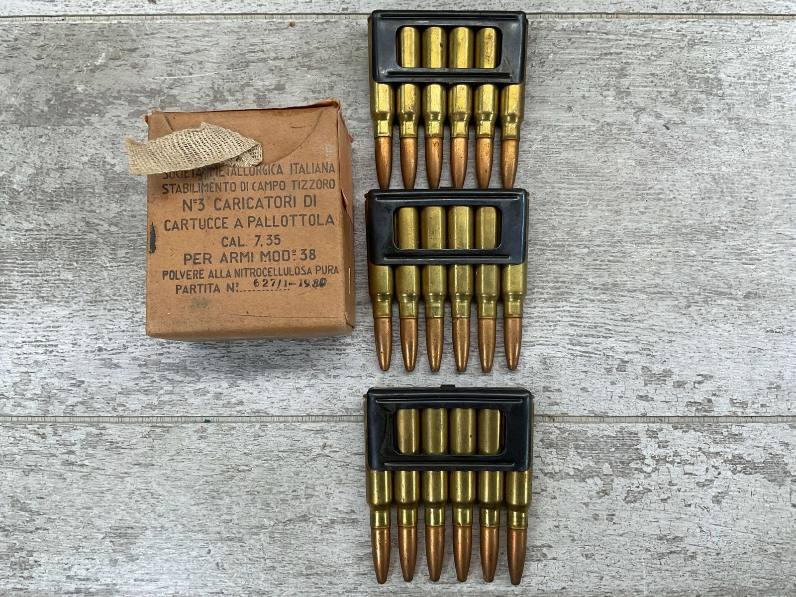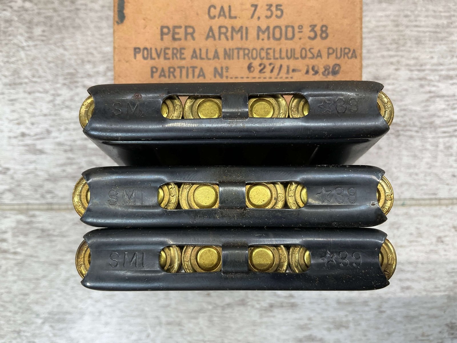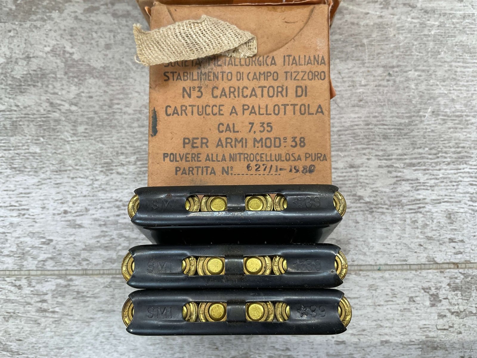 7.35 CARCANO ITALIAN AMMUNITION, 1939, VINTAGE, FULL BOX, GREAT CONDITION, 18 ROUNDS/BOX