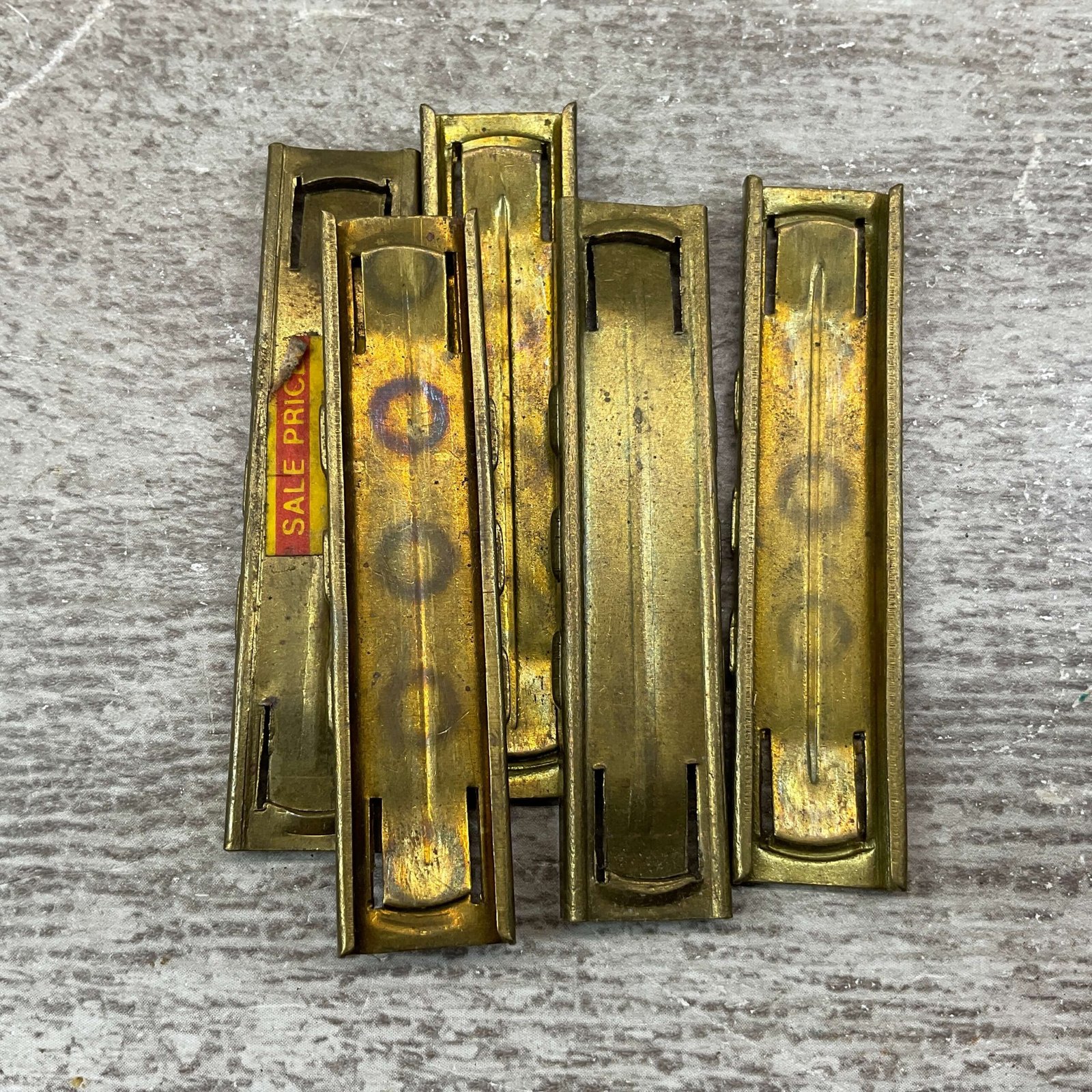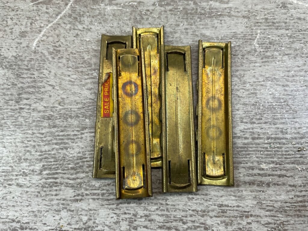 8MM MAUSER BRASS STRIPPER CLIPS, QTY 5, K98, 98K, ORIGINAL, NOT REPRODUCTION, GOOD CONDITION