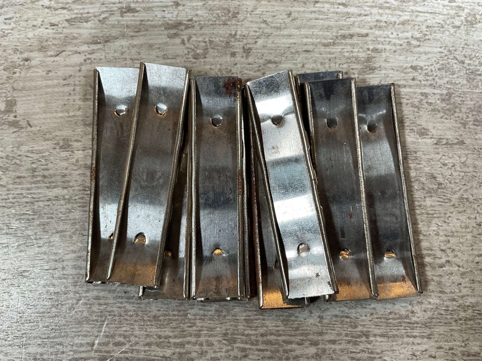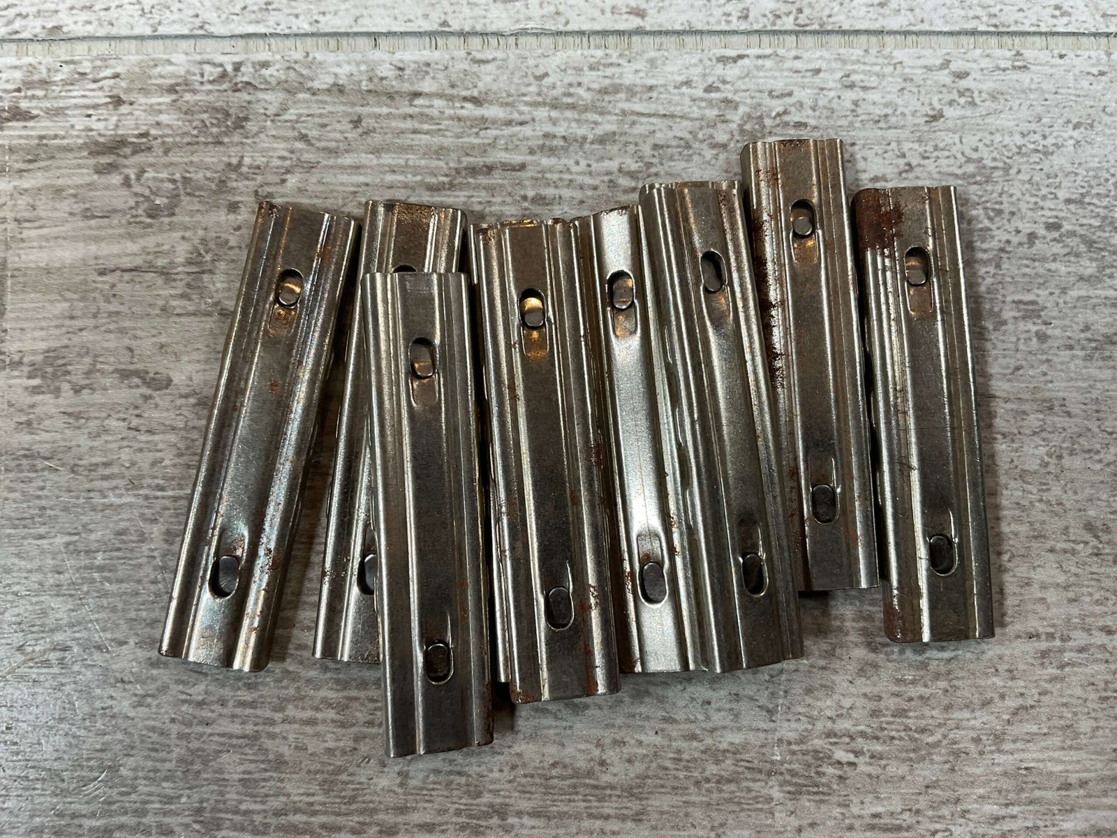 8MM MAUSER STEEL STRIPPER CLIPS, QTY10, K98, 98K, SOME SURFACE RUST, ORIGINAL, NOT REPRODUCTION, GOOD CONDITION
