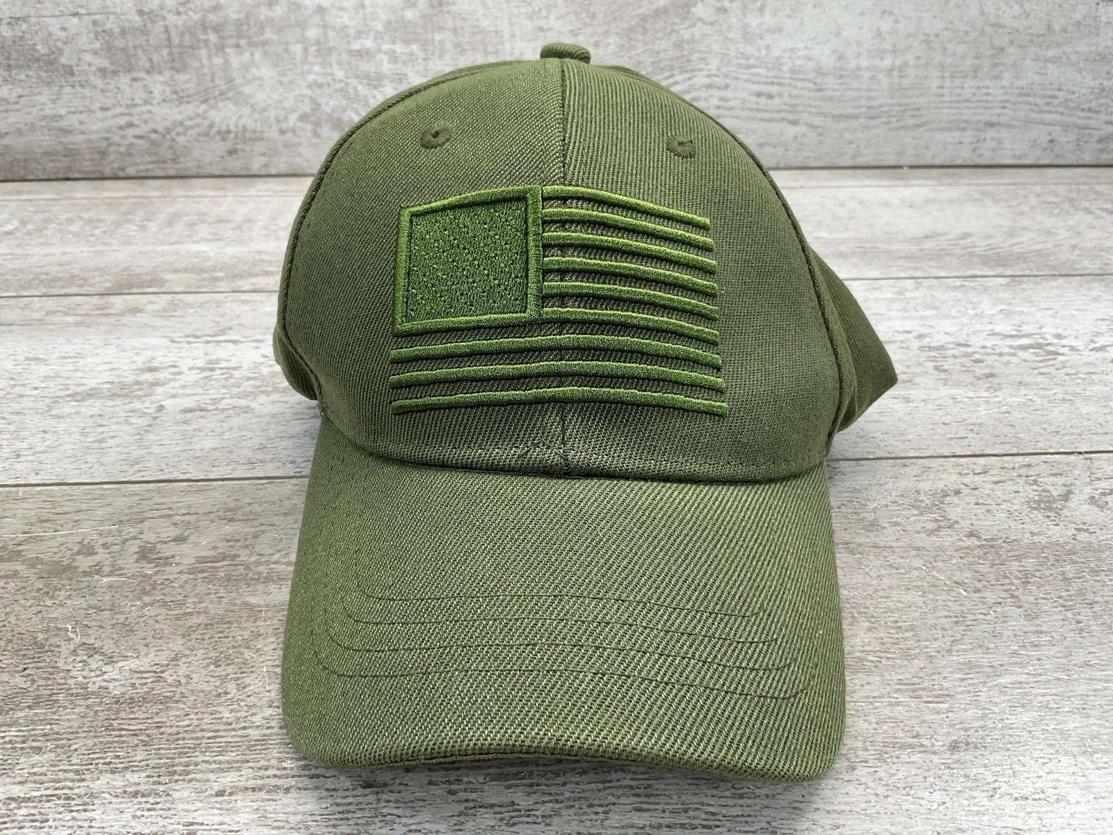 A GREAT HAT WITH EMBROIDERED AMERICAN FLAG ON FRONT!