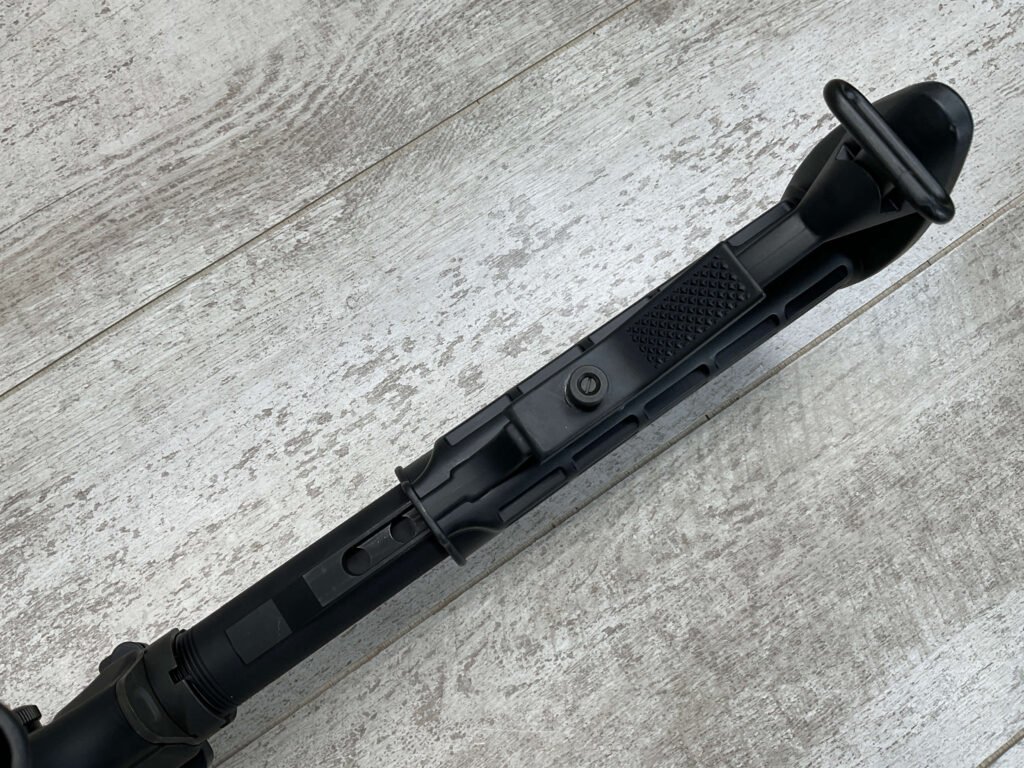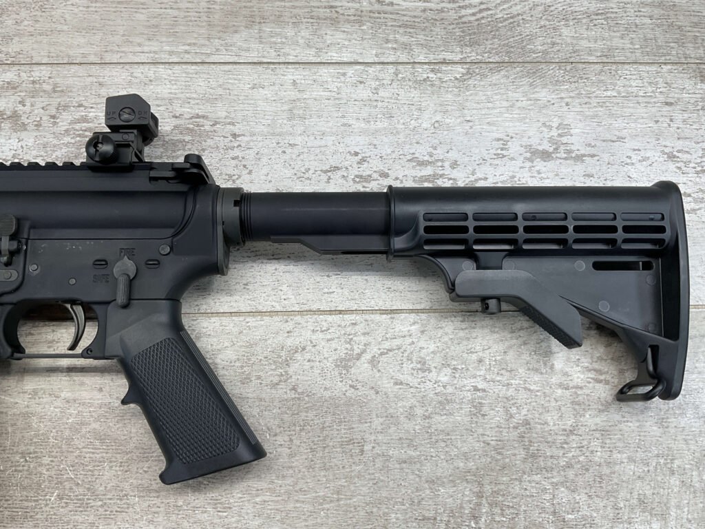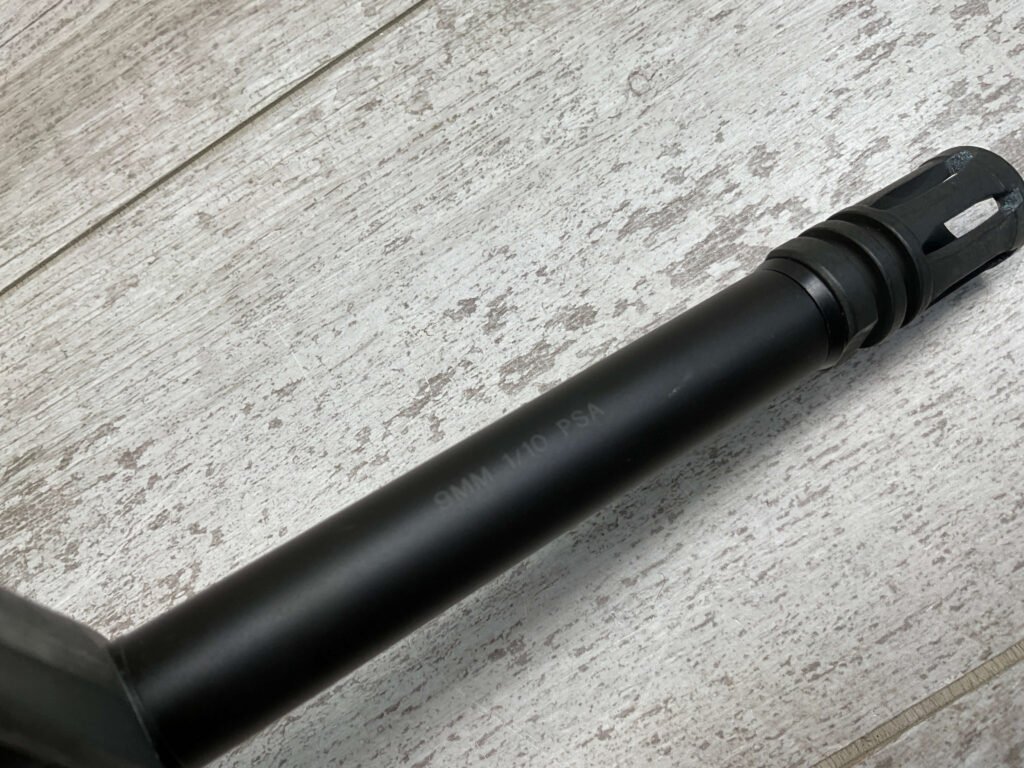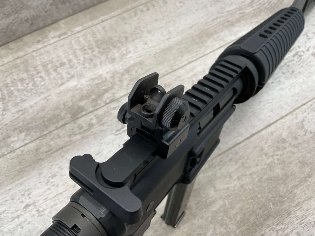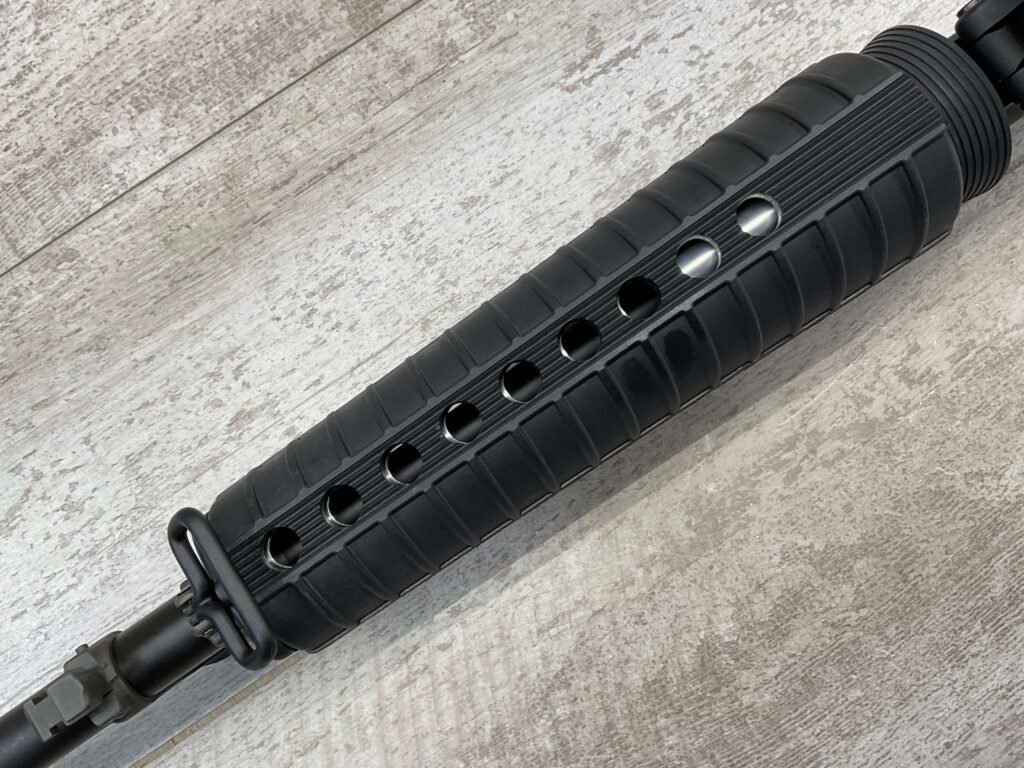 ANDERSON MFG AM-15 .223/5.56 LOWER IN 9MM SEMI AUTO RIFLE #14100570, A4 MID-LENGTH, 1-32 ROUNDS ASC 9MM MAGAZINE, 17″ BARREL, FLASH HIDDER, 8 1/2″ HANDGUARD, PALMETTO ADJ STOCK, BAYONET LUG, EXC BRIGHT BORE W/EXC RIFLING, GREAT SHOOTER!