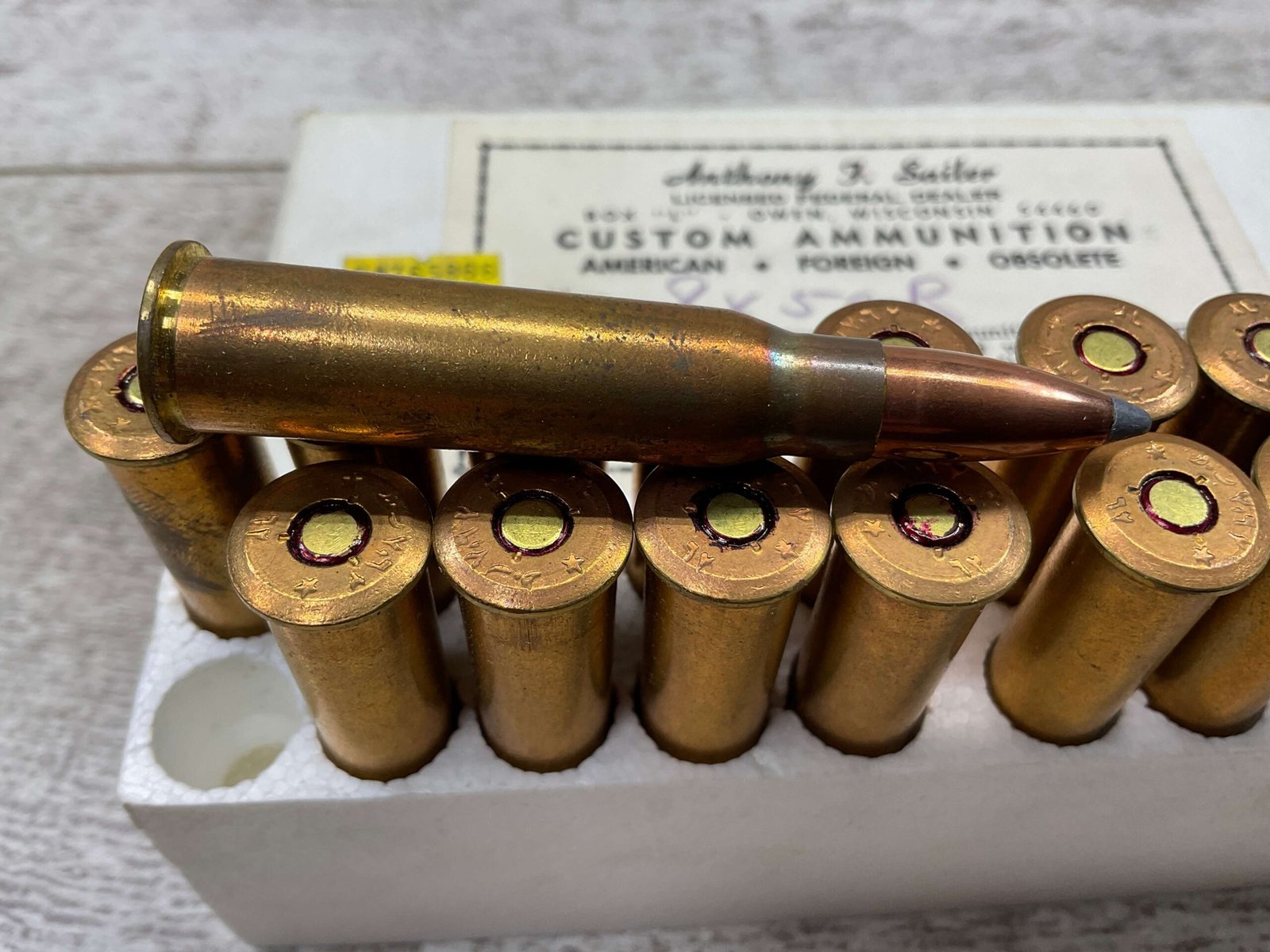 ANTHONY J. SAILER 8X50R CUSTOM AMMUNITION, FULL BOX (QTY 20), BOX IS IN EXC CONDITION WITH ORIGINAL PRICE STICKER ON FRONT, BOX “L” – OWEN, WISCONSIN 54460