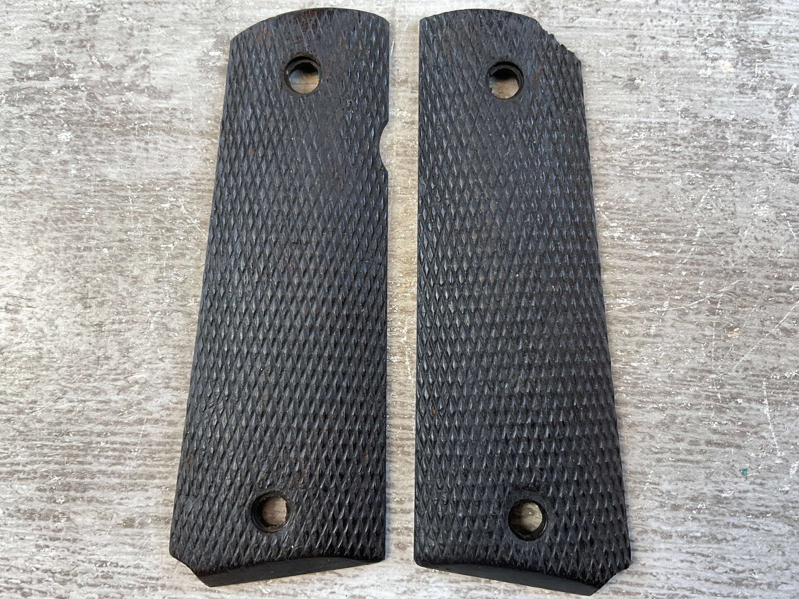 ARGENTINE 1911 BLACK WOOD GRIPS, JAMES EARL JONES COLLECTION, PAPER WITH IT (IN JAMES EARL JONES’ HANDWRITING) SAYS “OFF OF REPUBLICA ARGENTINA”, POSSIBLY MODEL 1927? IN GOOD CONDITION OVERALL BUT NEEDS SOME TLC.