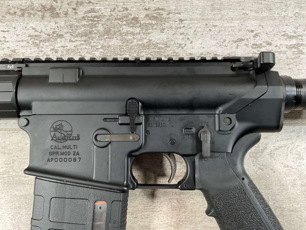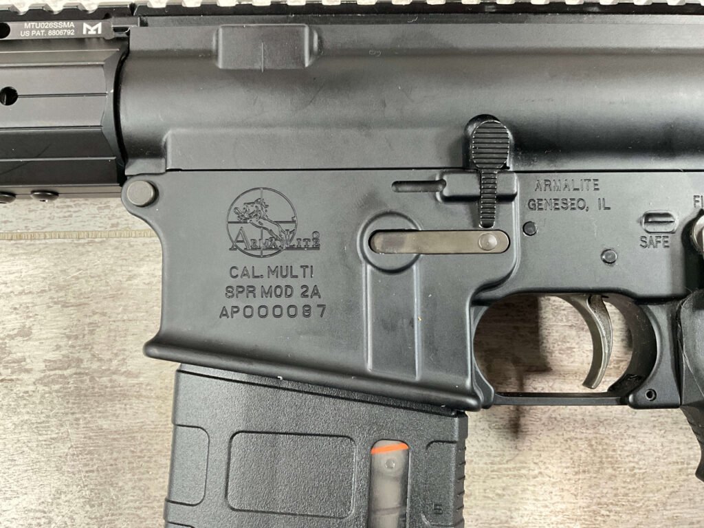 ARMALITE SPR MOD 2A 7.62x51mm NATO/AR10 SEMI AUTO RIFLE #AP000087, 16″ CR-MO, 1:11.25 TWIST, MTU UTG PRO 15″ M-LOK SUPER SLIM FREE FLOAT HANDGUARD, MULTIPORT COMPENSATOR, MAGPUL MIAD GEN 1.1 PISTOL GRIP, LOW SERIAL NUMBER! USED BUT EXCELLENT CONDITION!
