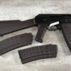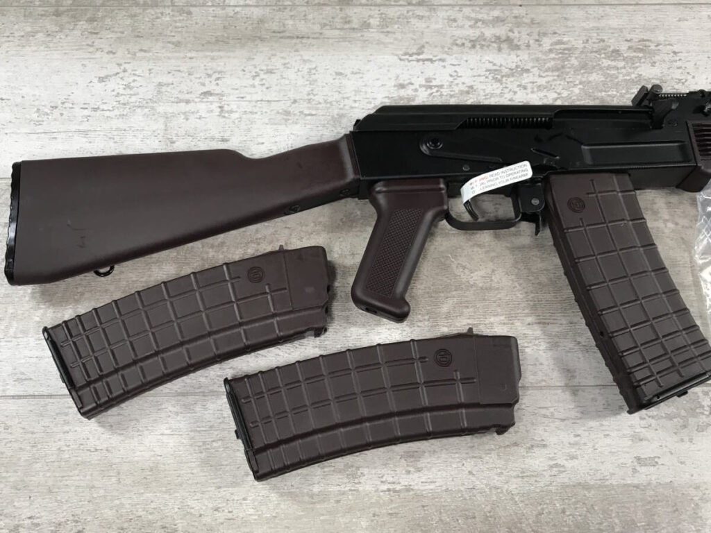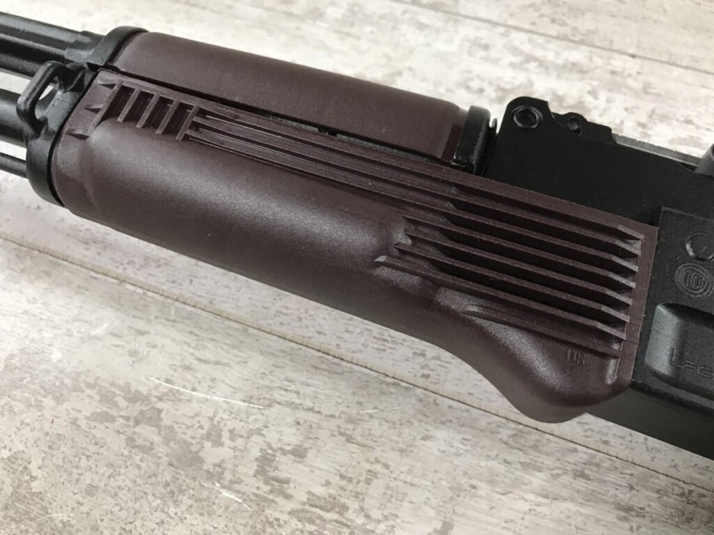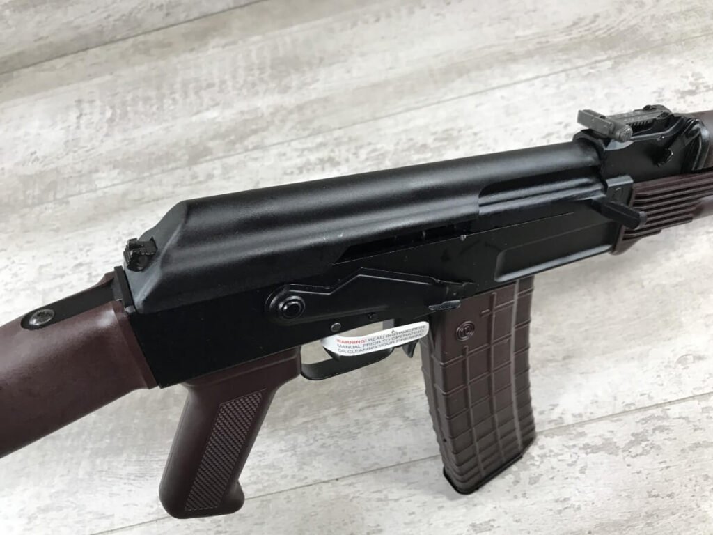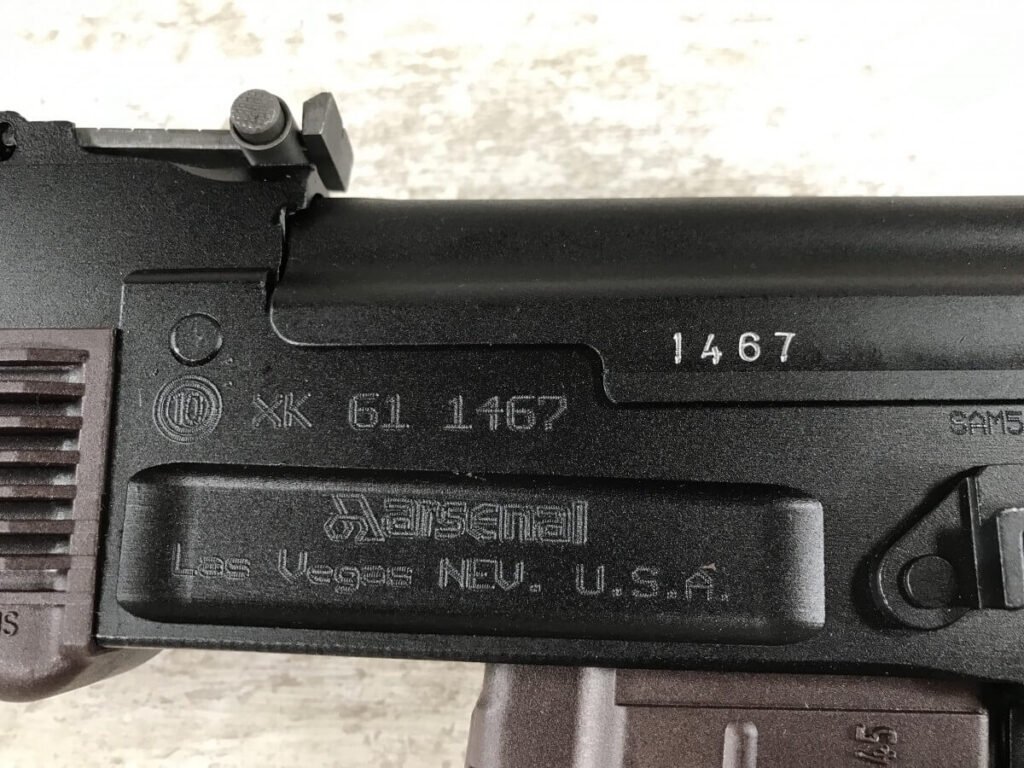 Arsenal SAM5 5.56x45mm (.223 REM) AK47 rifle, milled and forged receiver, 16.3″ chrome lined hammer forged barrel, 14x1mm left-hand muzzle threads, AK-351 muzzle brake, FIME Enhanced Fire Control Group, cleaning rod, bayonet lug, Plum polymer furniture, intermediate length buttstock, scope rail, comes with one Plum 30 round magazine, sling, oil bottle, and cleaning kit. Features 100% new-production parts and components. Bulgarian hot-die hammer forged receiver, bolt, and bolt carrier. Cold hammer-forged 16.3†barrel from Arsenal’s Bulgarian factory, built on Steyr manufacturing technology, hard-chrome plated bore and chamber with left-hand 14mm threads. Includes AK scope rail, Intermediate length US-made 10†trapdoor buttstock (total length of pull 13.4â€.) 922(r) compliant with US or imported magazines. Substantially extended service life over other types of assemblies. Installed on this rifle is the Enhanced Fire Control Group from Fime, the AK enthusiasts favorite. This 5.56×45 rifle combines authentic, high-quality features rarely seen in the American market. From its intermediate-length trapdoor buttstock to its removable muzzle device, every component of the SAM5 is engineered to provide decades of dependable and accurate service. The SAM5 rifle is extremely sought after and a very collectible firearm. Arsenal’s SAM5 receiver is milled from a hot-die hammer forged receiver blank by the Arsenal Co. of Bulgaria. Other milled-receiver AKs are machined from bar stock, but Arsenal’s hot-die hammer forging produces stronger and finer-grained steel. Internal voids and cooling deformations are eliminated by the 5-ton hammer forging process. The forged receiver blank requires over 5.5 hours of milling before assembly. This forging and milling process is complex and time-intensive, but Arsenal’s meticulous attention to detail delivers a receiver of unequalled strength, precision and durability.
