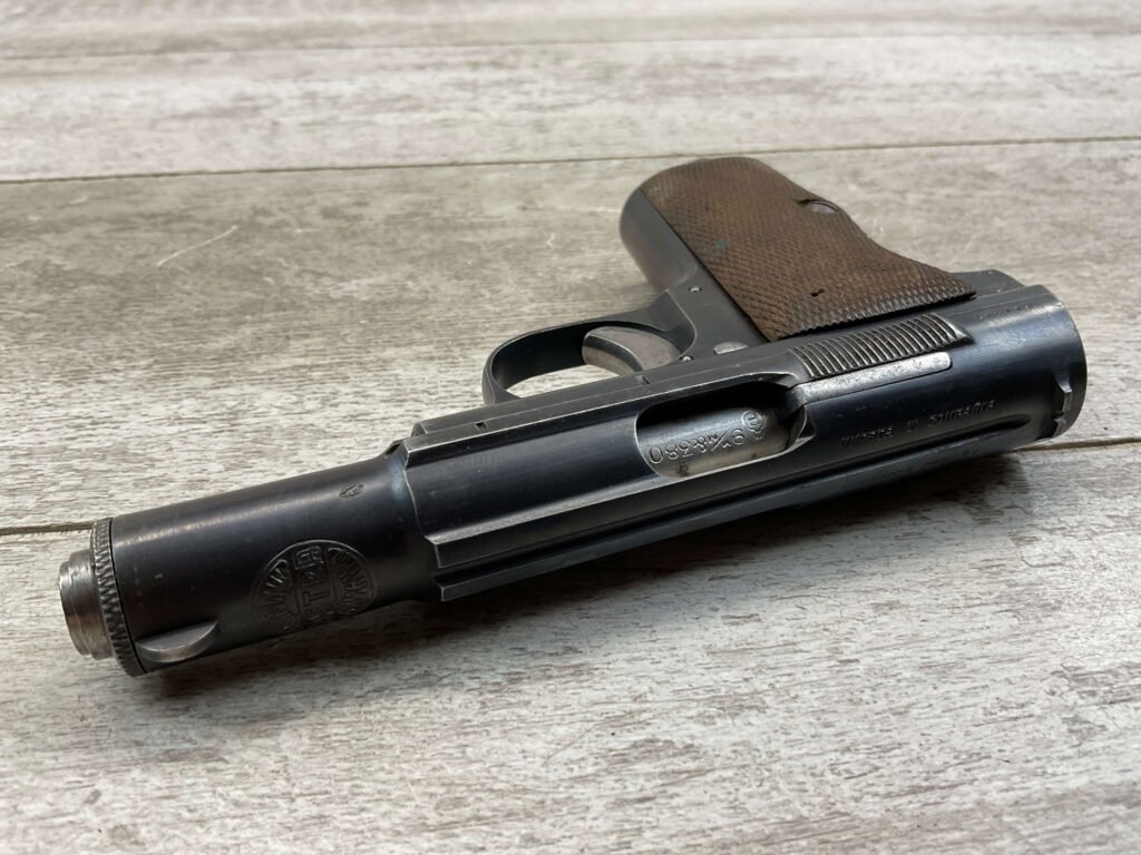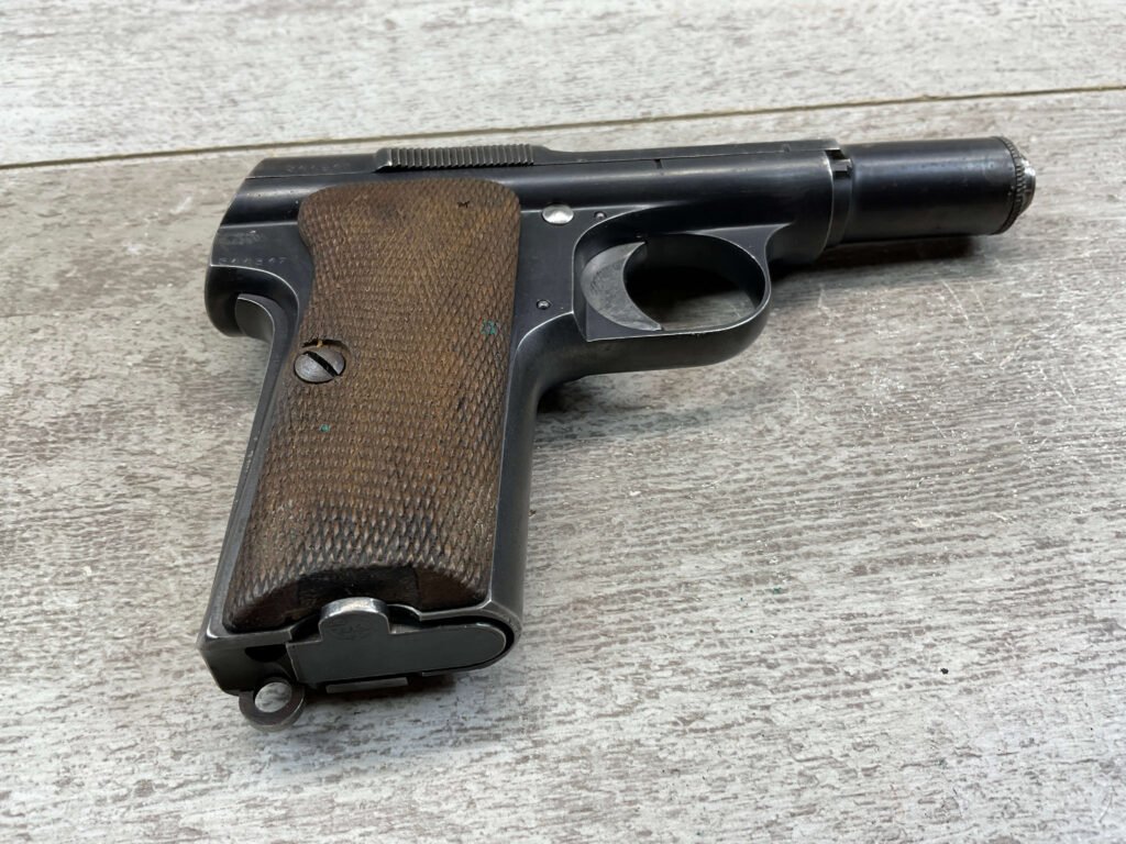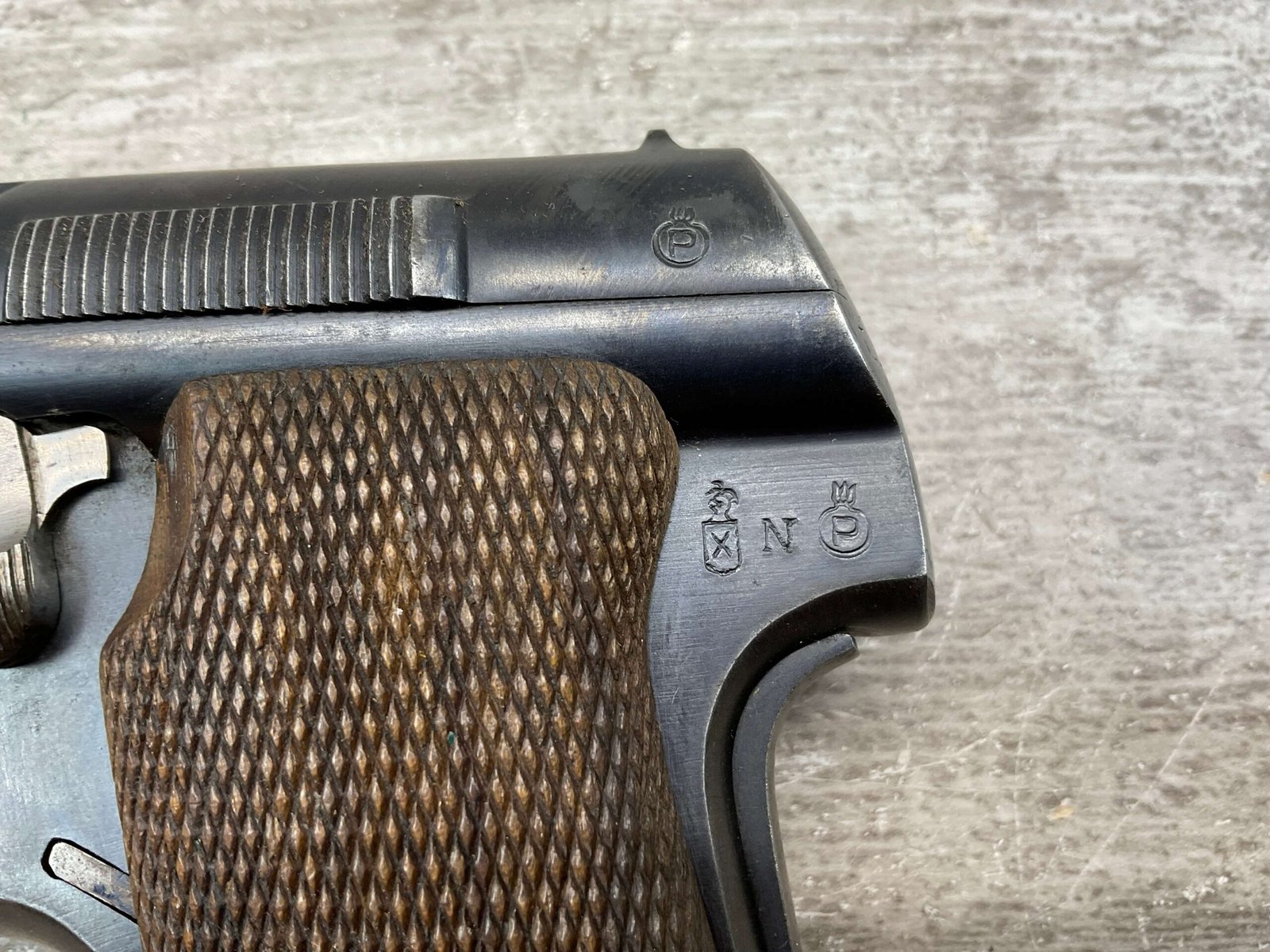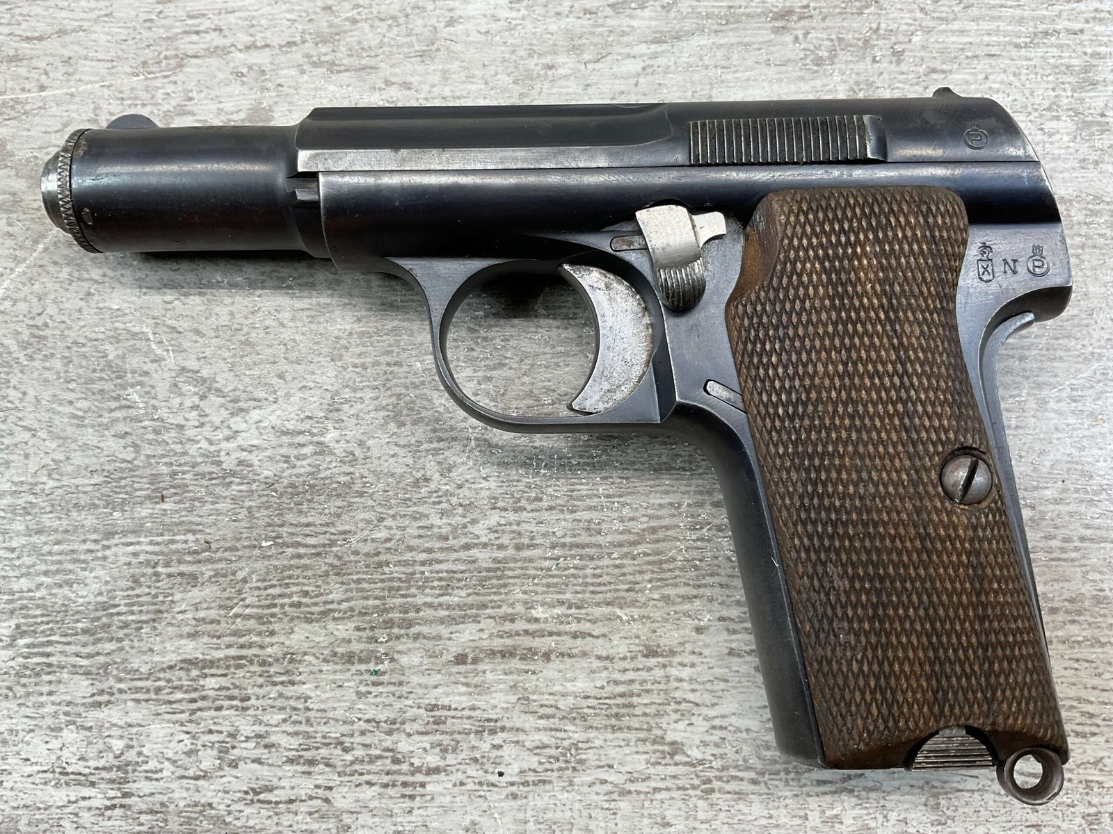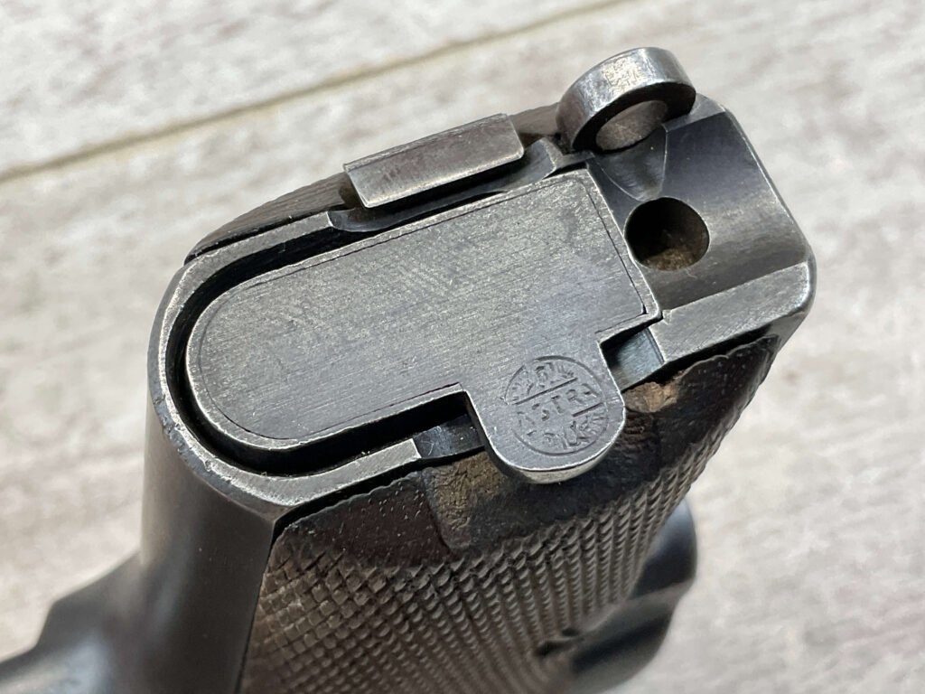 ASTRA 300 7.65MM WWII NAZI MARKED PISTOL RIG #544347, FRAME IS MARKED WaA251, TOP OF SLIDE MARKED “UNCETA Y COMPANIA S.A. / GUERNICA ESPANA”, SPANISH PROOFS ON LEFT REAR OF FRAME, VERY GOOD CHECKERED WOOD GRIPS W/MORE WEAR ON RIGHT GRIP, BRIGHT BORE W/LIGHT FROST THROUGHOUT & EXC RIFLING, BROWN LEATHER HOLSTER, ALL MATCHING, TWO ORIGINAL ASTRA LOGO MAGAZINES, 95+%