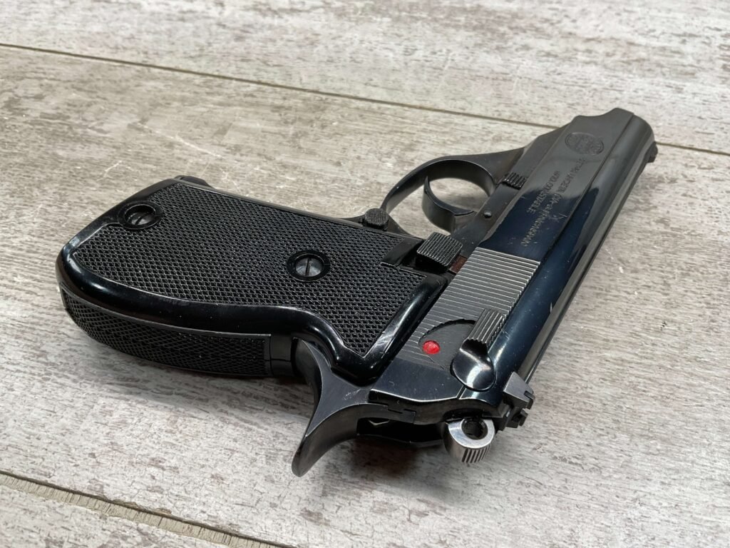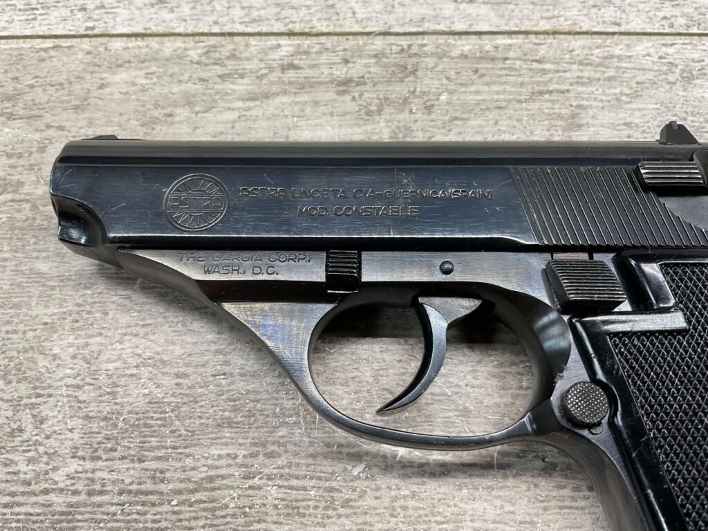 ASTRA CONSTABLE 380 ACP SEMI AUTO PISTOL, PPK CLONE #1109070, 3.5″ BBL, 7 ROUND MAGAZINE, FIXED SIGHTS, THUMB SAFETY/DECOCKER, EXC BORE & RIFLING (9/10), EXC BLUED FINISH W/LIGHT WEAR FROM USE, EXC BLACK CHECKERED GRIPS, 1 MAGAZINE INCLUDED, WOULD MAKE A GREAT CONCEAL CARRY PIECE!!