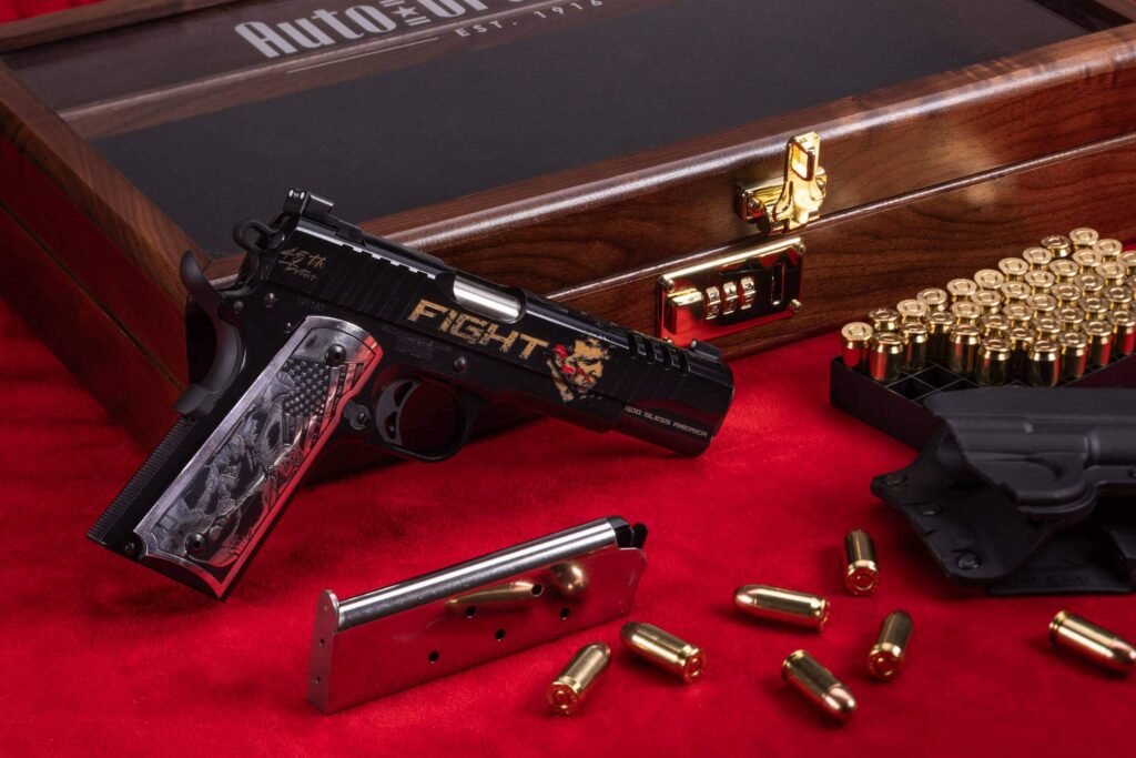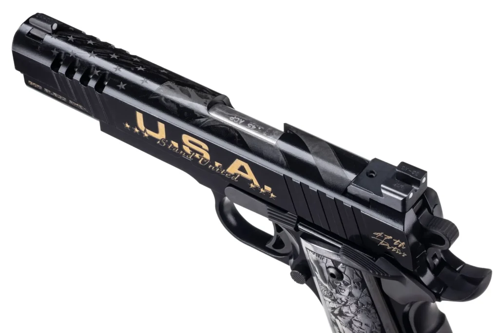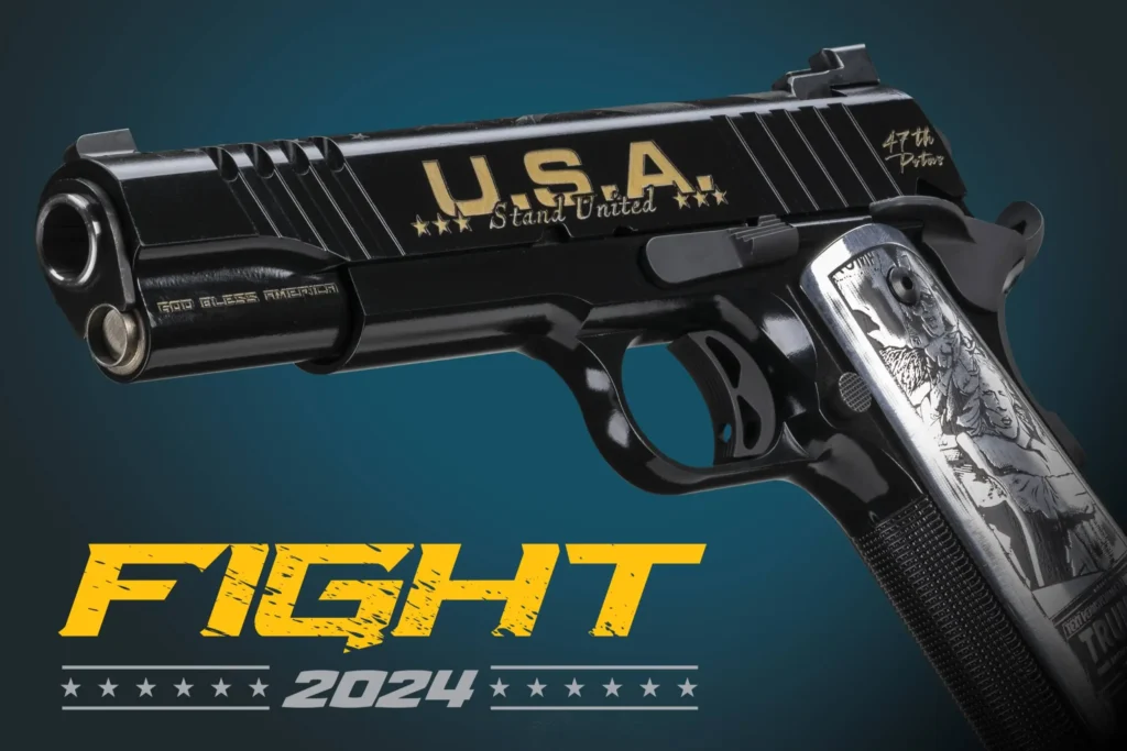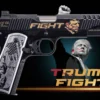 Auto-Ordnance presents the “Trump Fight†limited edition Trump 1911! The team at Outlaw Ordnance worked to design this latest President Trump themed pistol, highlighting his determination to continue fighting for America, even in the face of the violent assassination attempt of 7/13/24.