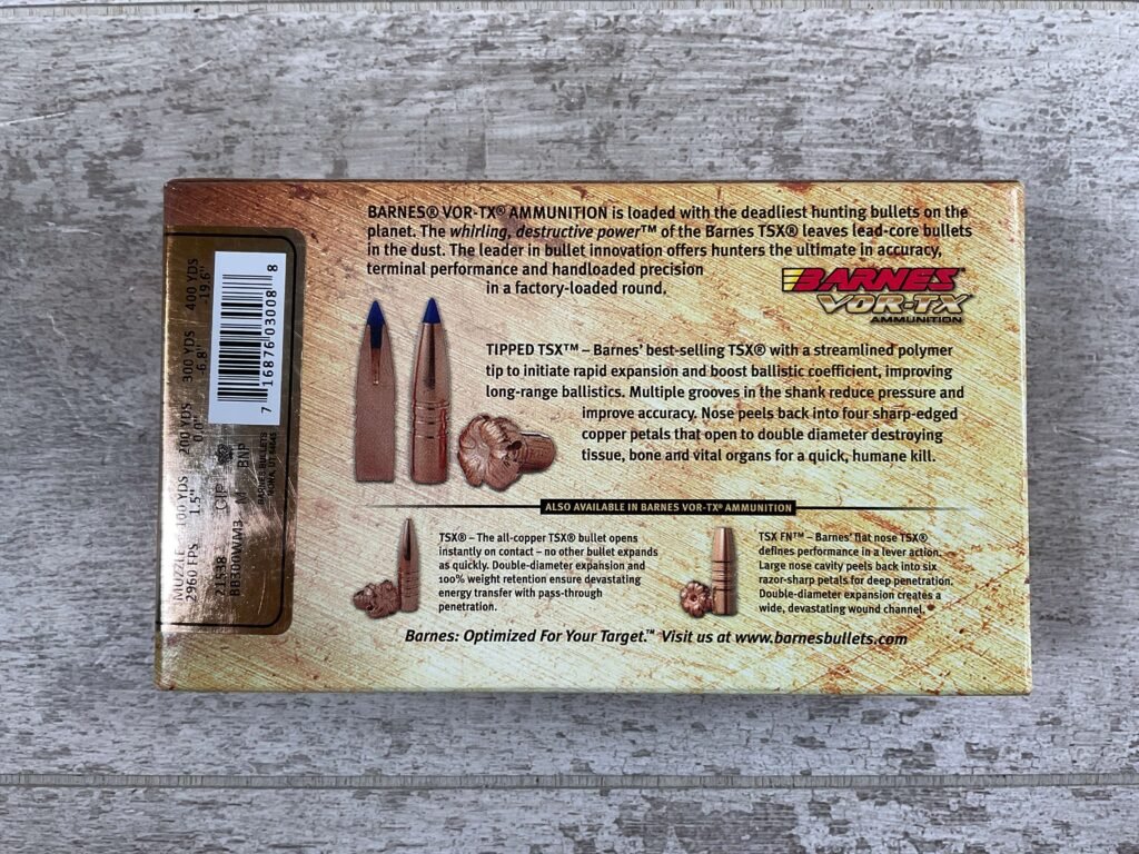 BARNES VOR-TX AMMUNITION 300 WIN MAG 180 GRAIN TTSX POLYMER TIPPED SPITZER BOAT TAIL BOX OF 20, MUZZLE: 2960 FPS, NEW