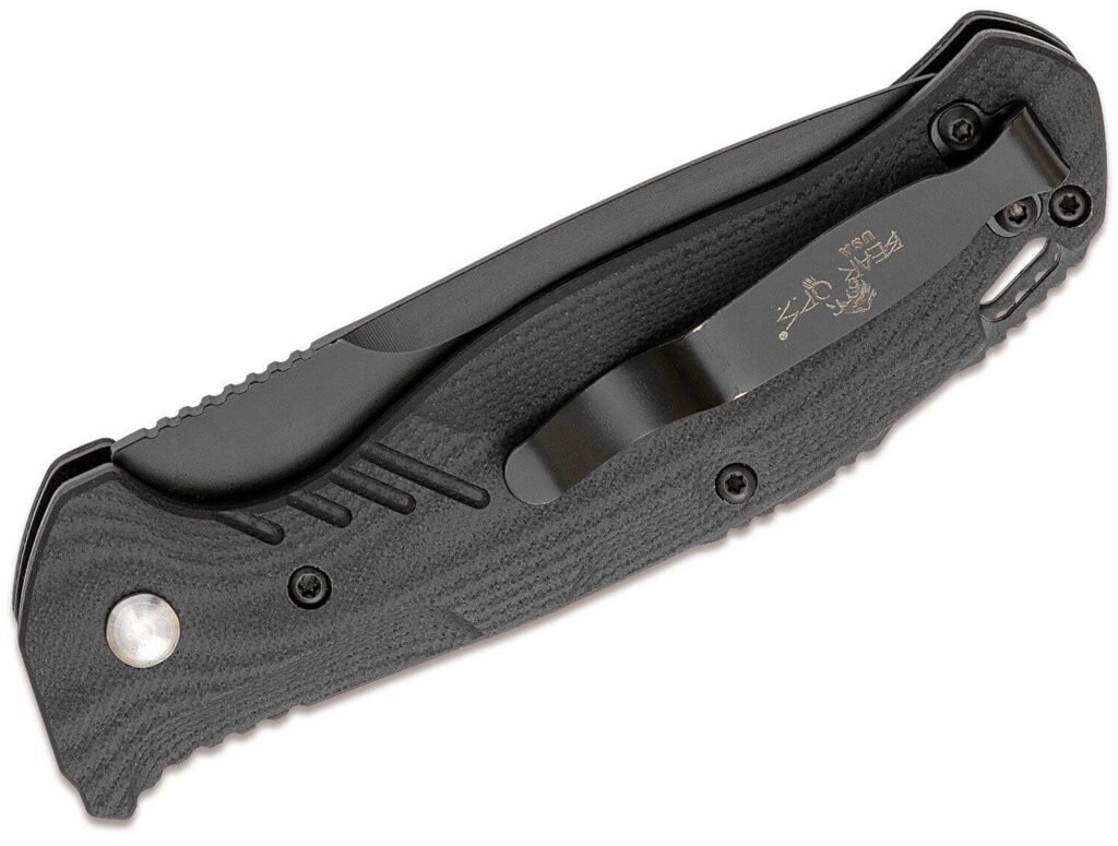 The Bold Action X AUTO folder is sized perfectly for EDC (every day carry) and can tackle any job you throw at it. The handles are black G10 with great fit and finish. They are not only comfortable to hold but provide good traction when in use. The 3.25″ Sandvik 14C28N stainless steel blade is deployed with the simple yet firm press of the button which is also used to unlock the blade. The safety prevents accidental blade opening when not in use, as well as closing when in use. The pocket clip can be positioned for left or right-handed tip-up carry.