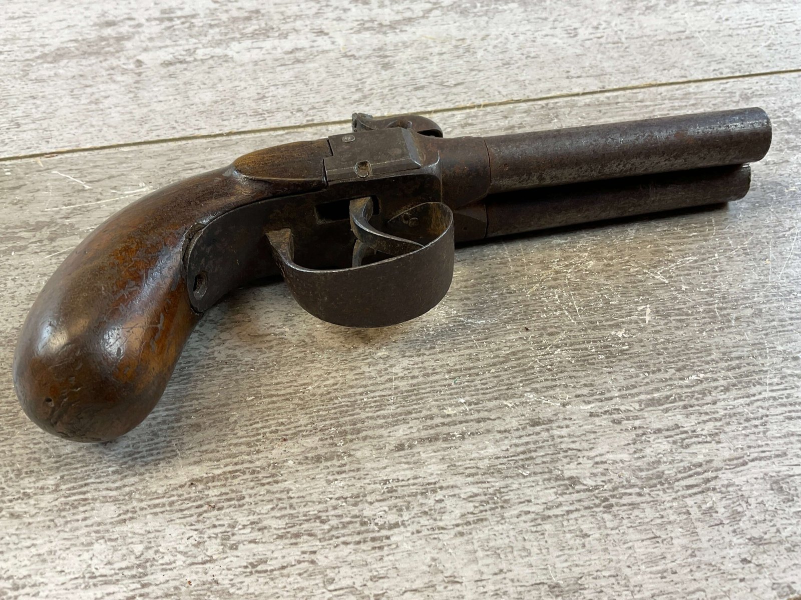 BELGIAN .36 CAL DOUBLE BARREL PERCUSSION PISTOL, JAMES EARL JONES COLLECTION, ANTIQUE #5-10944-PF