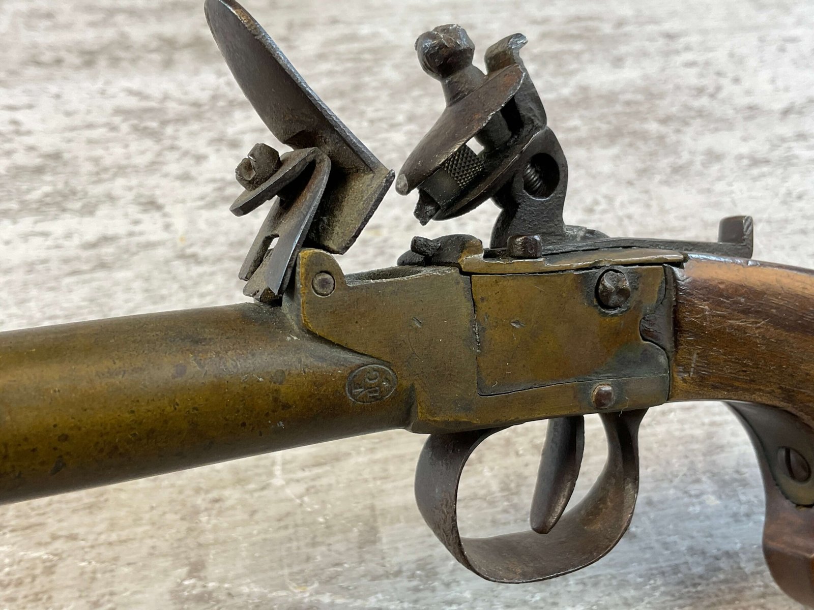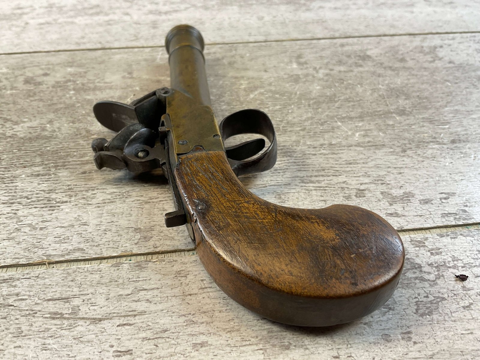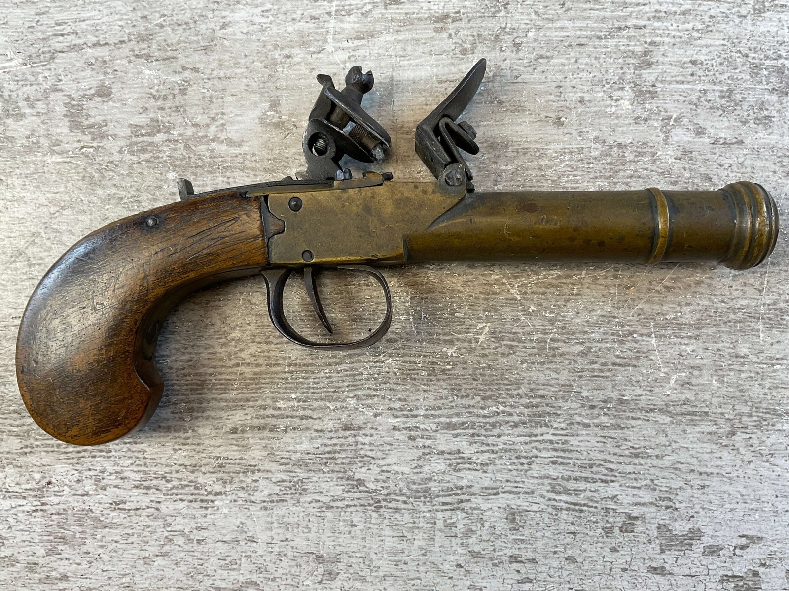 BELGIAN FLINTLOCK .45 CAL CANNON BRASS PISTOL #NSN, .45 CAL, 3.5″ CANNON SHAPED BARREL, SMOOTH WALNUT GRIP IN VG CONDITION, BRASS BARREL NEEDS A GOOD CLEANING, MECHANICALLY VG, EVEN BETTER ONCE CLEANED, CONDITION AS SHOWN IN PICTURES, FROM THE JAMES EARL JONES “FAVORITES” COLLECTION W/ CERTIFICATE OF AUTHENTICITY.