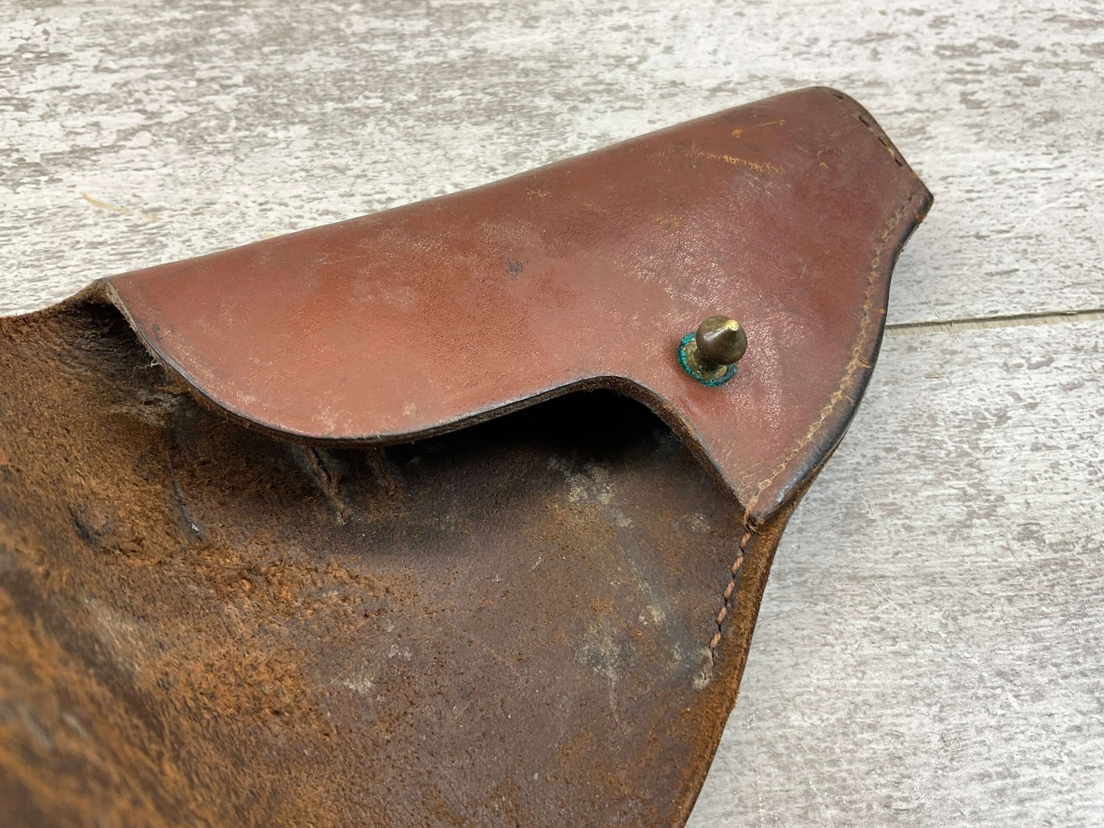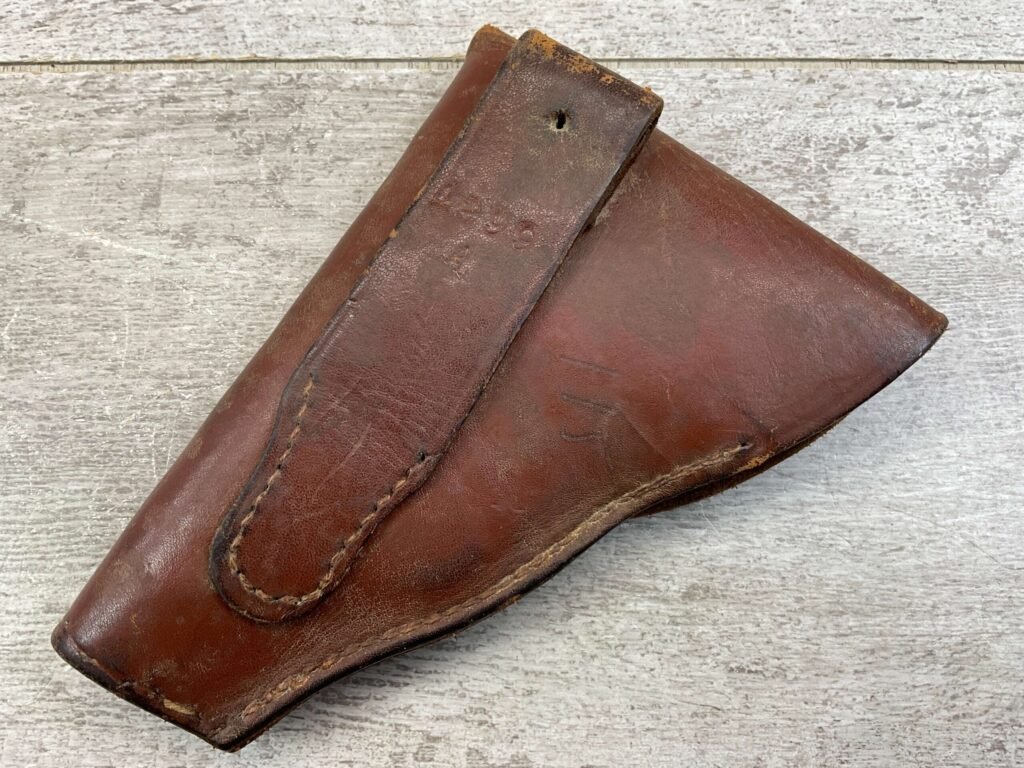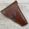 BERETTA 25 AUTO BROWN HOLSTER, MISSING TOE, “1299/A” STAMPED ON BELT LOOP, VG-EXC OVERALL