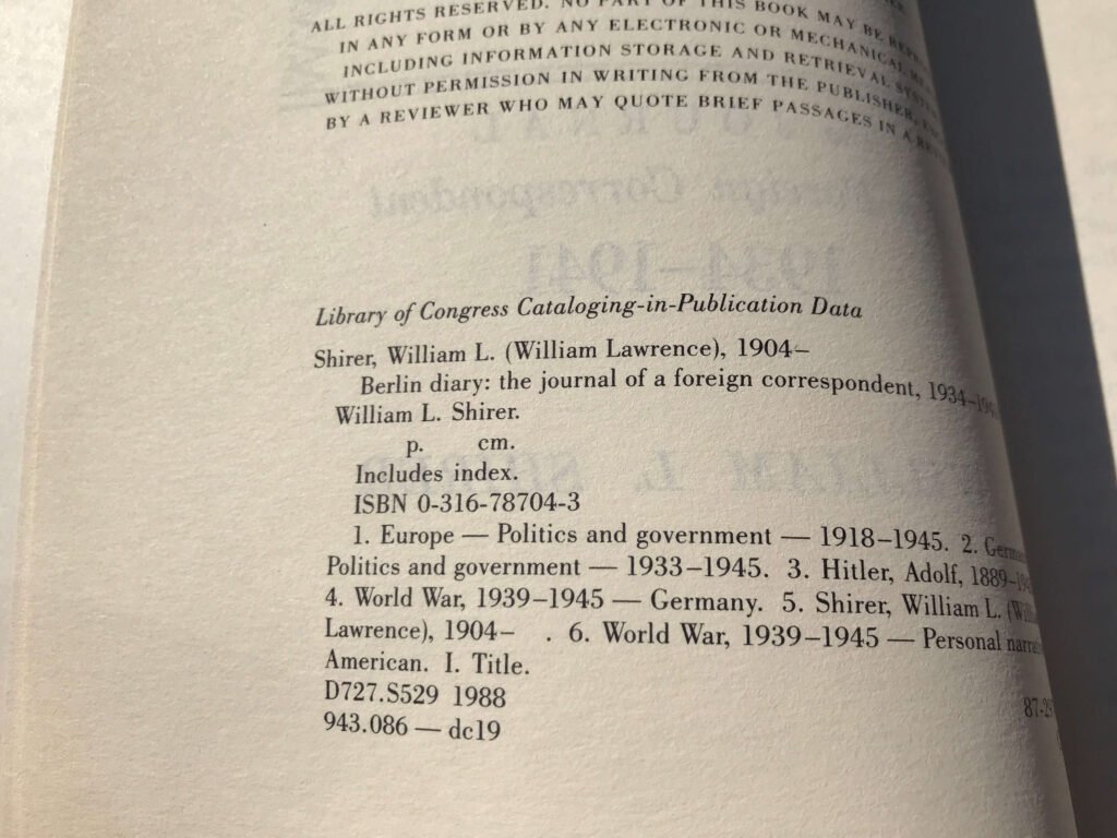 BERLIN DIARY: THE JOURNAL OF A FOREIGN CORRESPONDENT 1934-1941 PAPERBACK – JANUARY 1, 1988