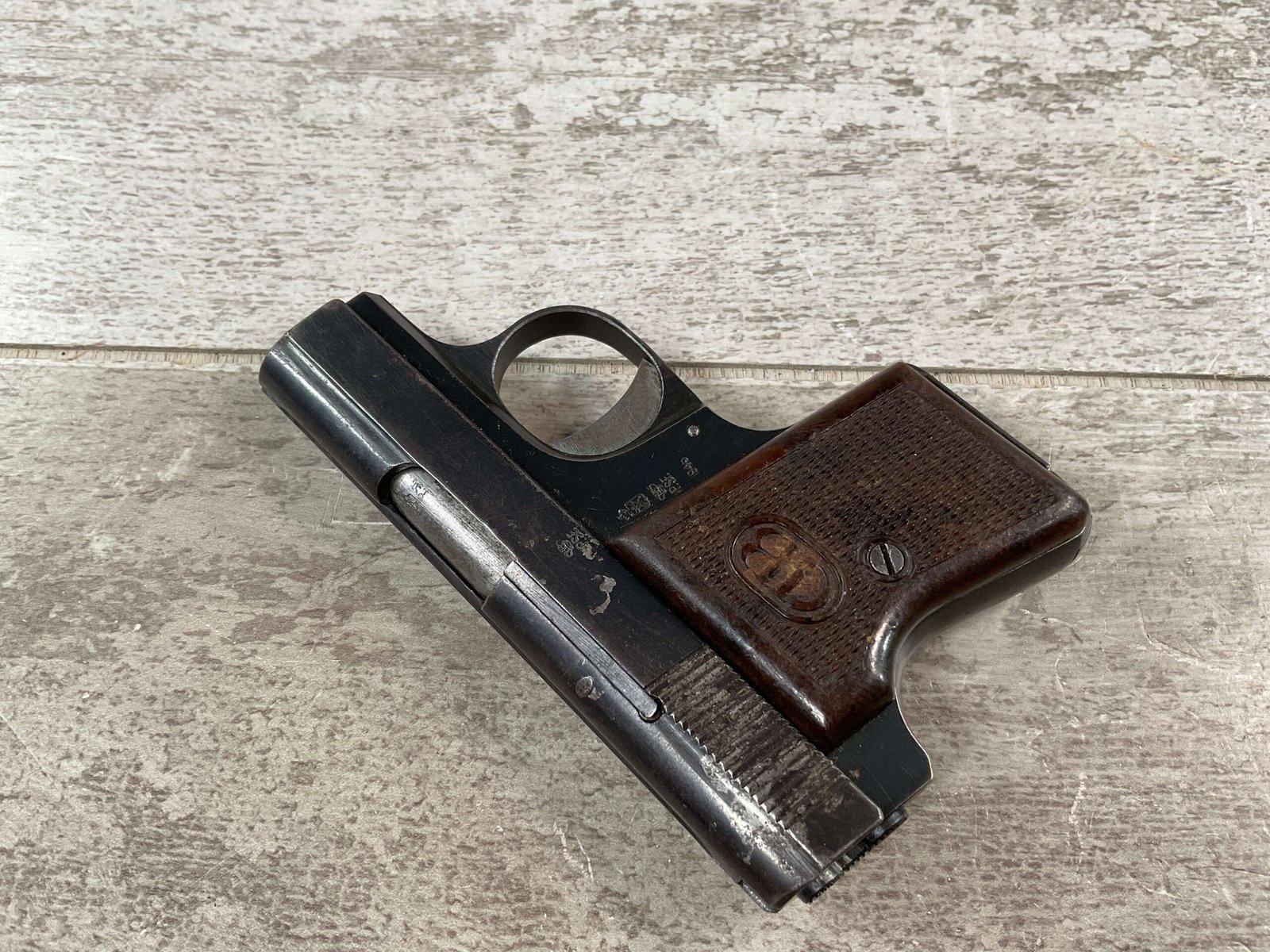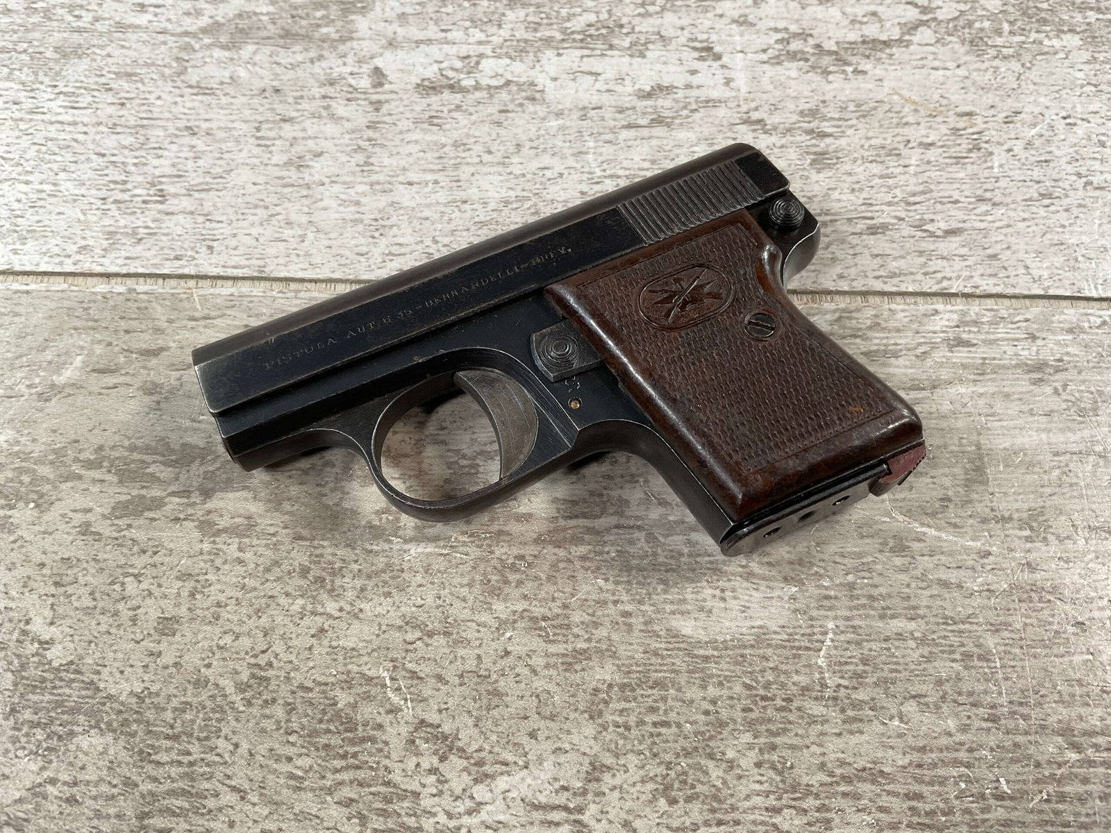 In summary, the Italian Bernardelli Vest Pocket Pistol is a .25 ACP semi-automatic firearm made in 1946. It is in very good condition, indicating minor wear with the finish largely intact and fully functional mechanics. This compact pistol is ideal for personal defense and is also a valuable collectible due to its quality, historical context, and the reputation of Bernardelli firearms.