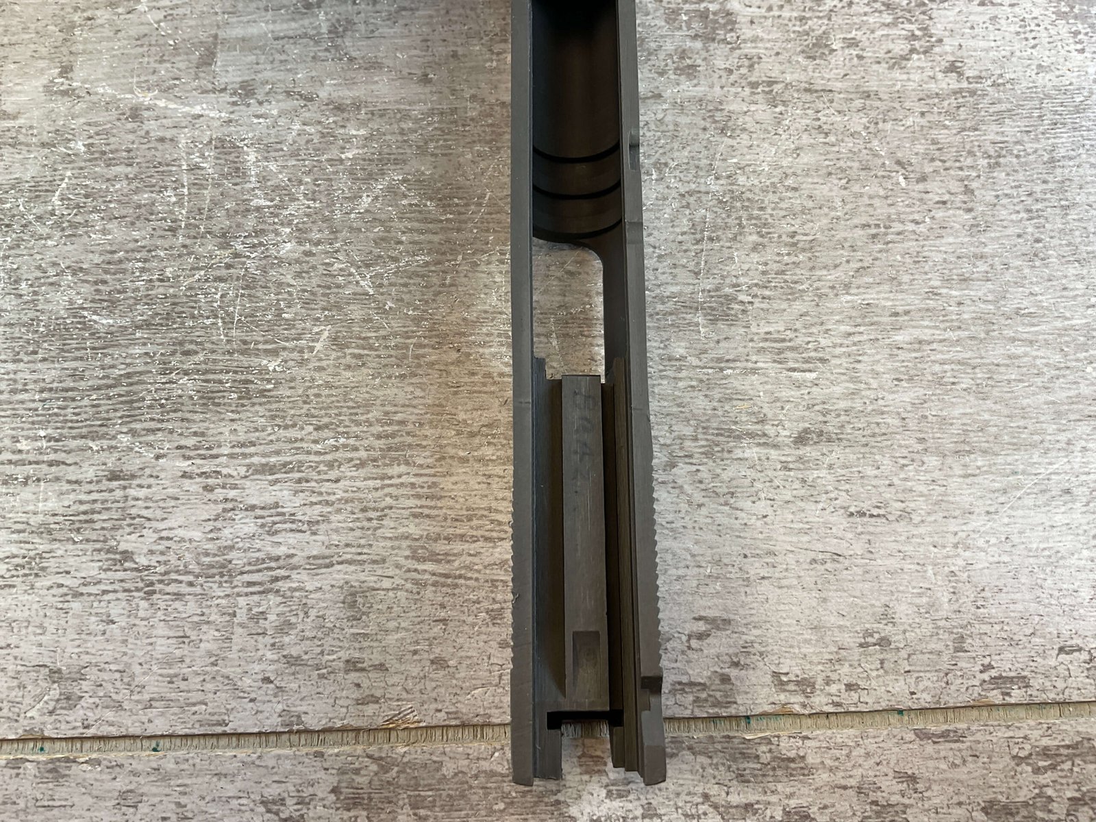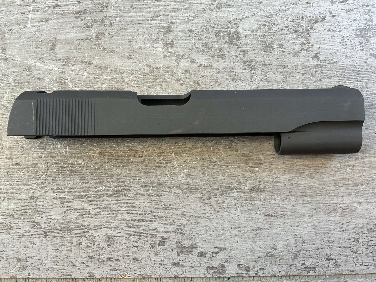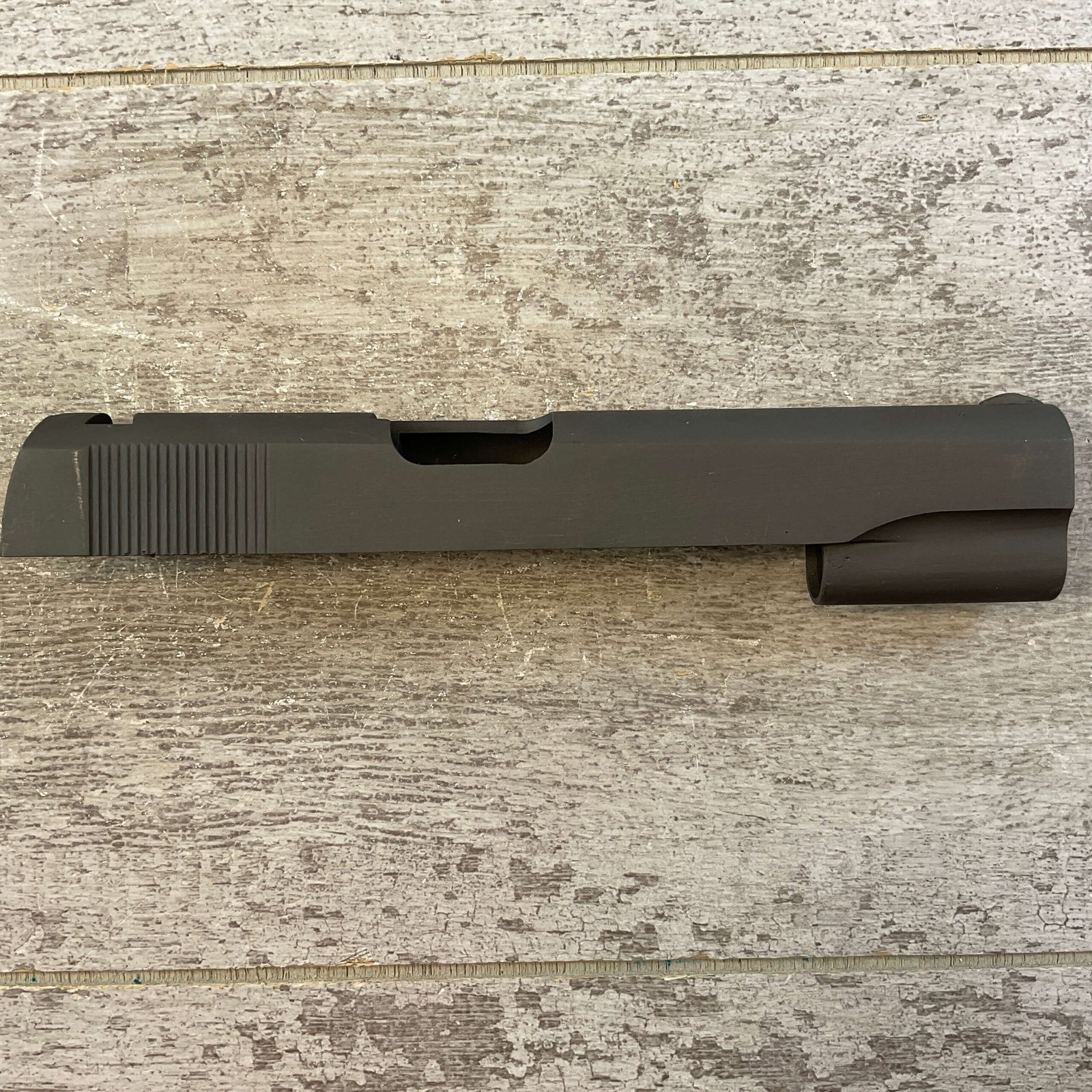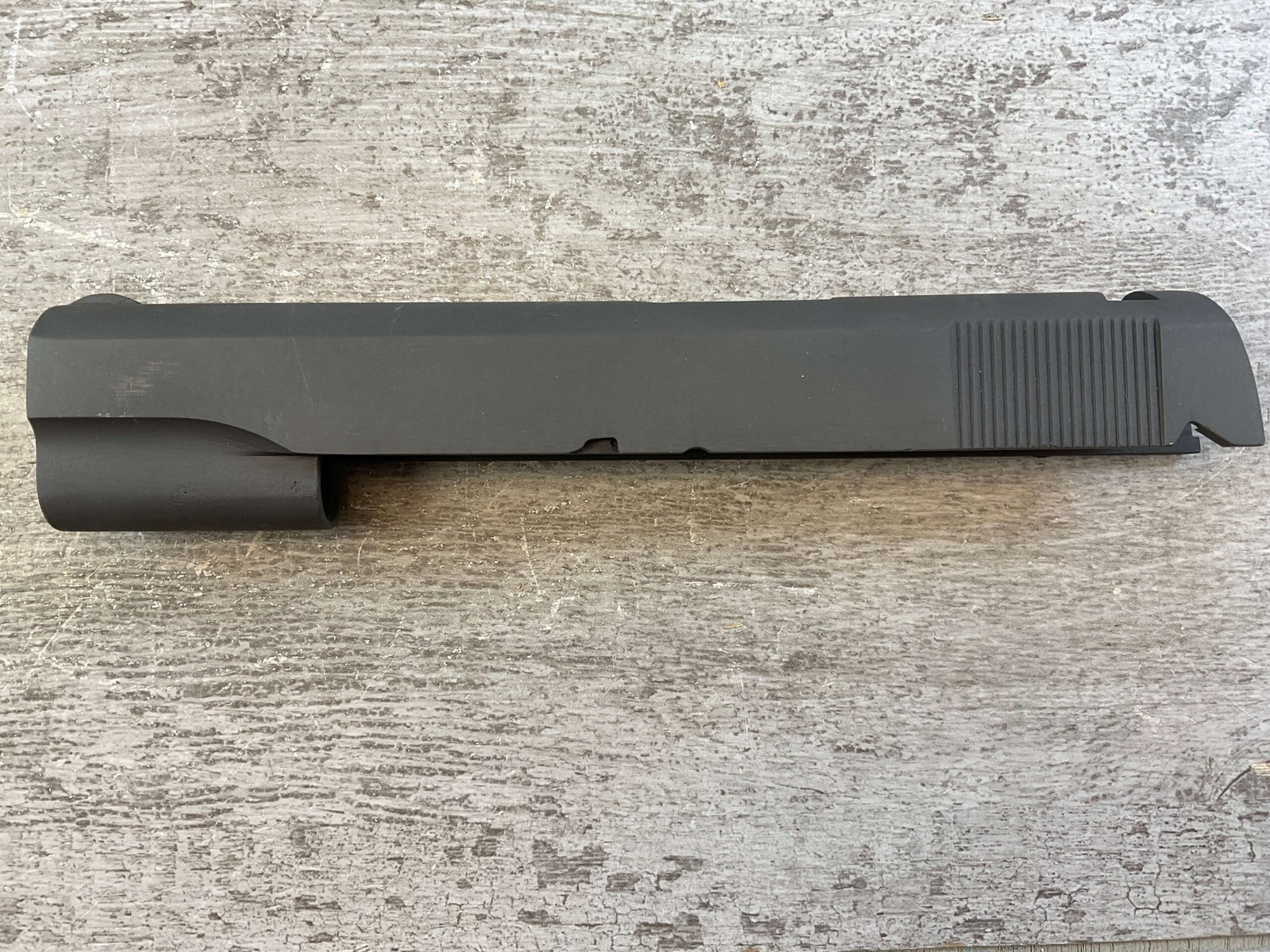 BLANK PARKERIZED 1911 SLIDE ONLY W/FRONT SIGHT, NO FIRING PIN & EXTRACTOR, OVERALL CONDITION AS SEEN IN PHOTOS.