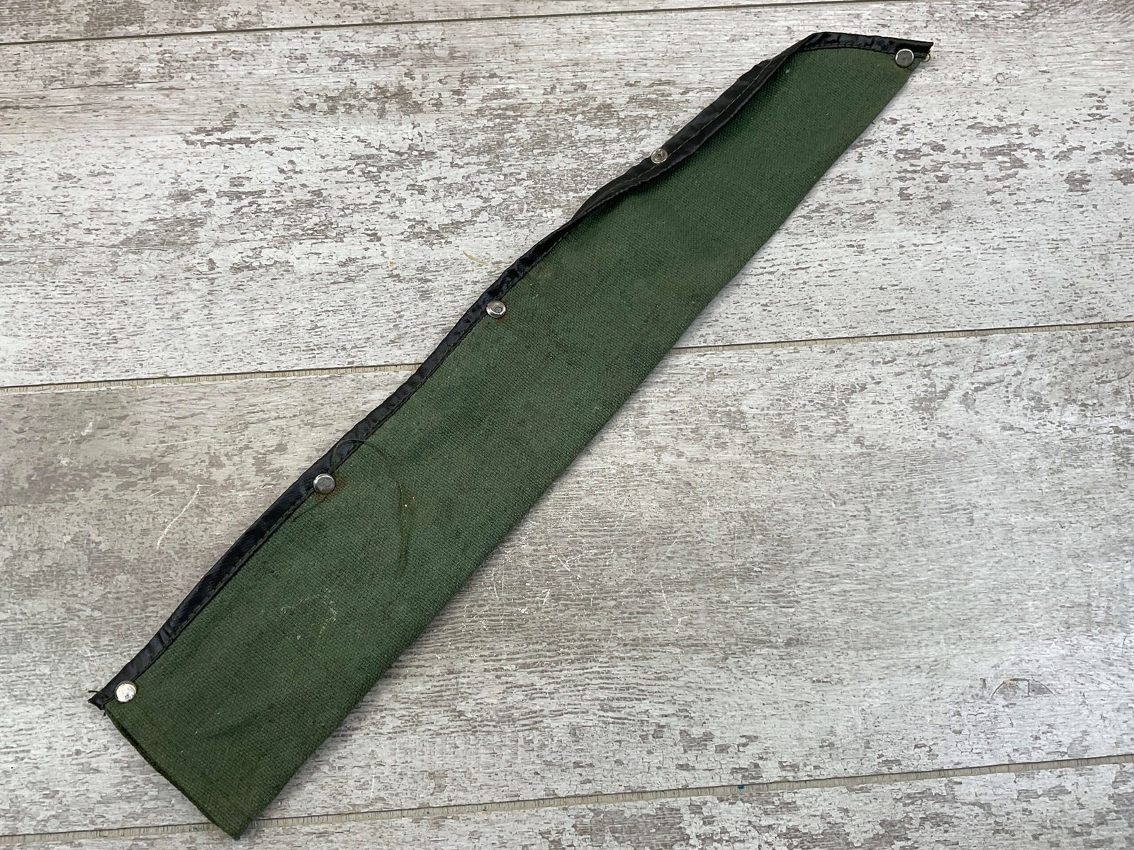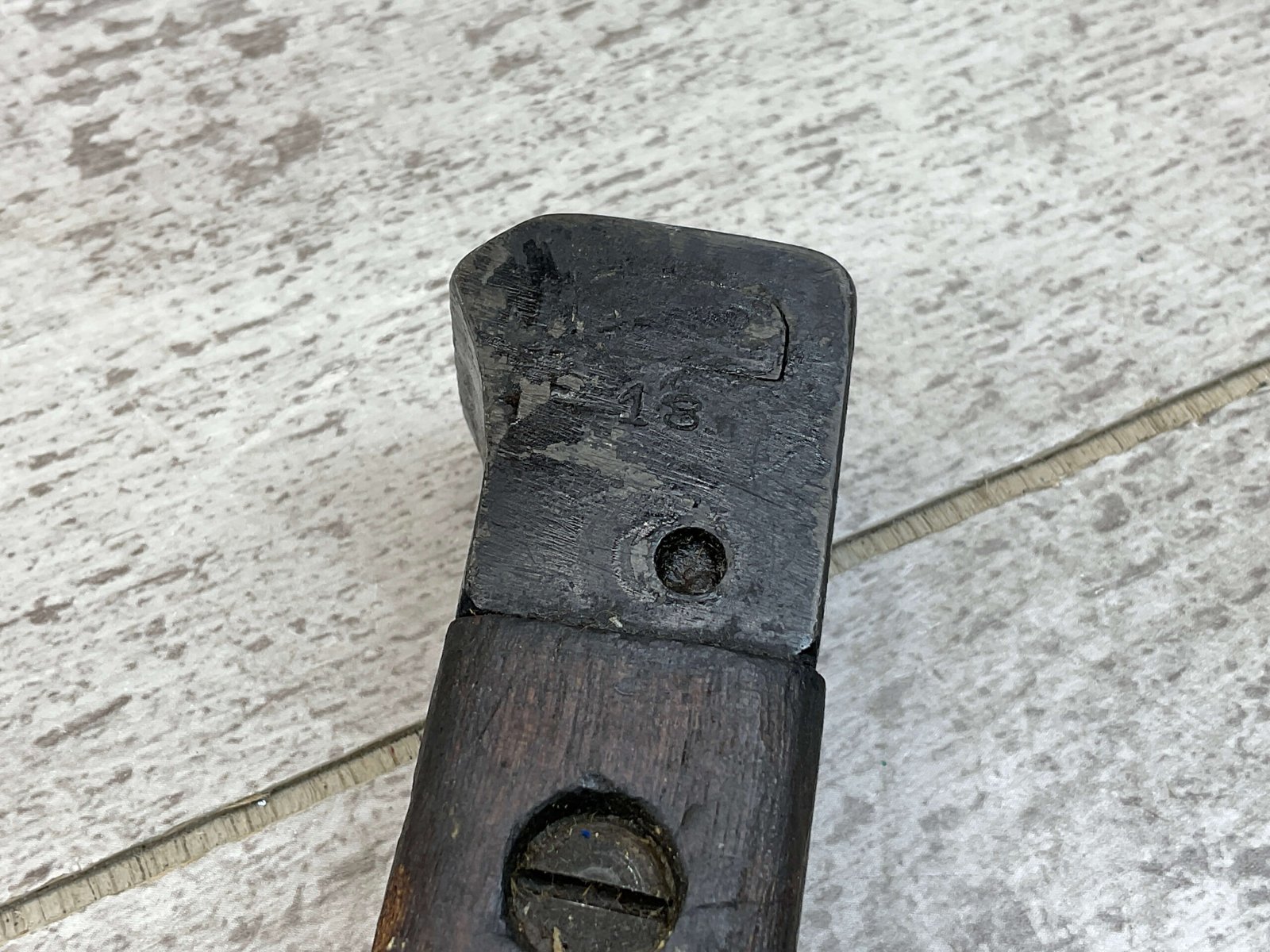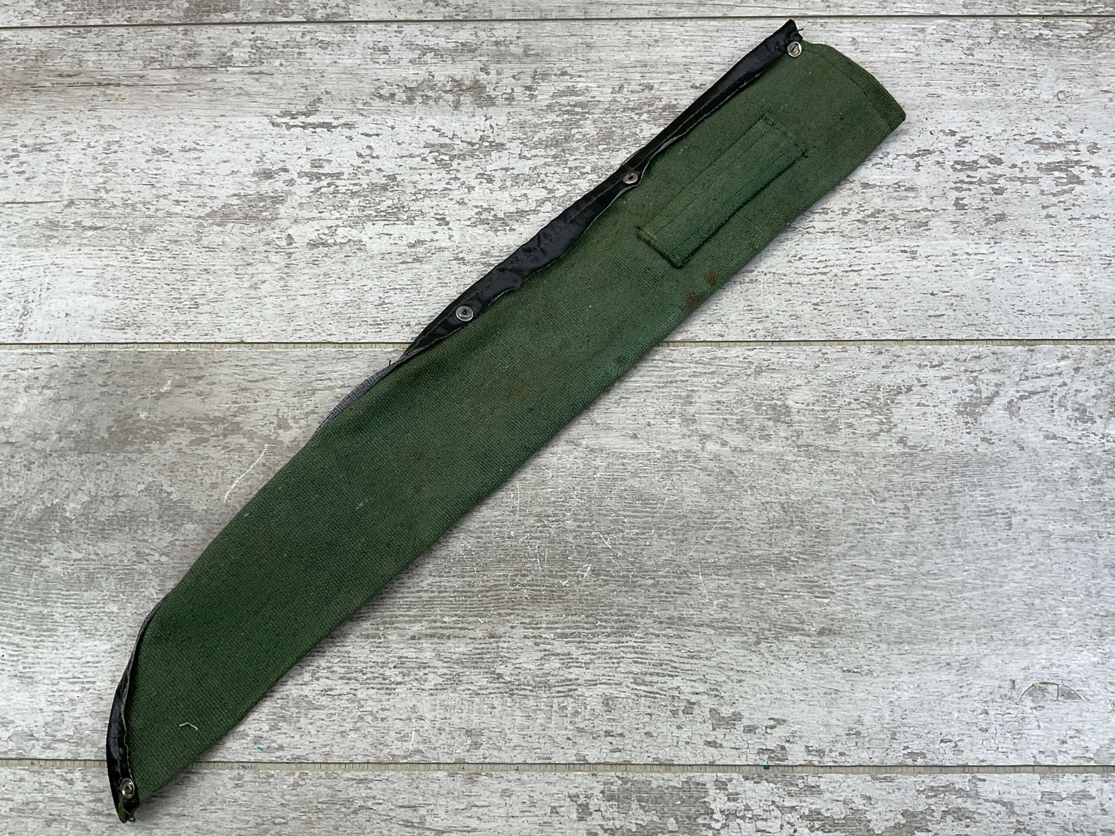 BRITISH/INDIA LEE ENFIELD 1944 GRI MKII BAYO W/ CANVAS SHEATH, VINTAGE, MISSING ORIGINAL SCABBARD BUT HAS A CANVAS SHEATH INCLUDED, RICASSO STAMPED WITH ROYAL CYPHER OF KING GEORGE VI, EMPEROR OF INDIA, A CROWNED G.R.I, OTHER SIDE OF RICASSO DISPLAYS CLEAR INSPECTION/ACCEPTANCE STAMPS “IS / 212”, “SA / 209” & “5”, POMMEL STAMPED WITH SERIAL #18, GUARD ABOVE RICASSO MARKED “DP†ON ONE SIDE, HANDLE HAS YELLOW RING AROUND IT, OVERALL CONDITION IS GOOD FOR AGE.