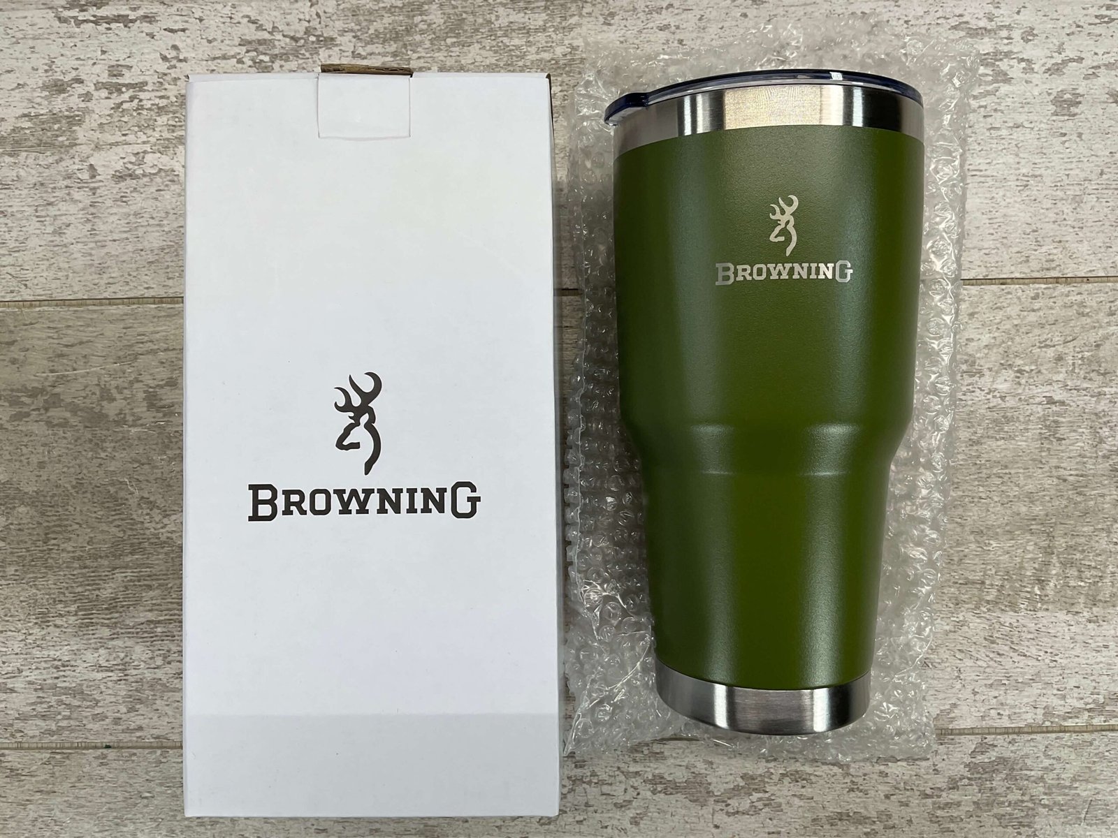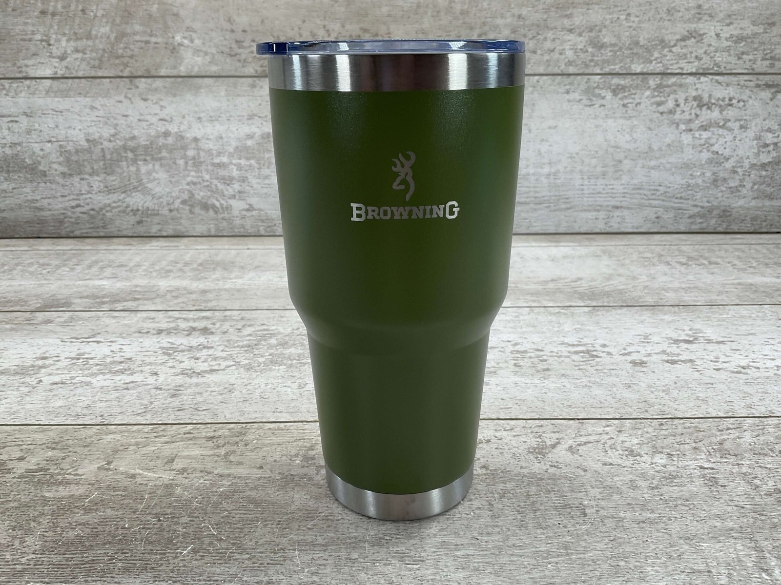 BROWNING FIREARMS GREEN TUMBLER, PERFECT FOR YOUR ICE WATER OR COFFEE!