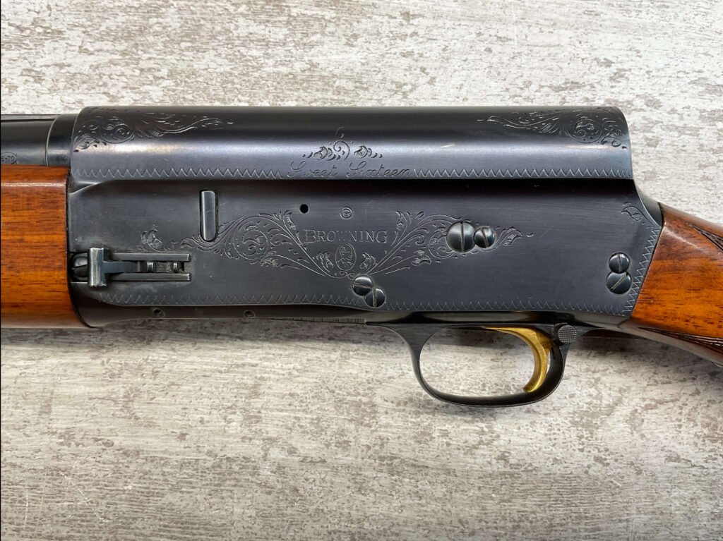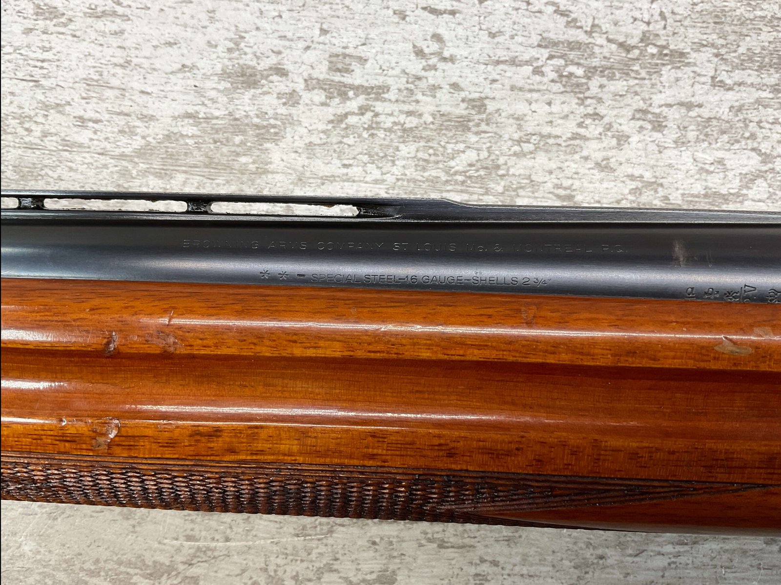 BROWNING SWEET 16 A5 SEMI-AUTO VR BARREL 16GA SHOTGUN #2S 86563, 25″ VR IMPROVED CYLINDER BARREL, 2ND 28″ VR FULL CHOKE BARREL INCLUDED, EXC BRIGHT BORE IN BOTH, 98+% ORIGINAL BLUE FINISH. 98+% ORIGINAL STOCK W/VERY LIGHT HANDLING MARKS, DELUXE FN BROWNING PLASTIC BUTT PAD, GOLD TRIGGER, 1962 MFR, 14 1/4″ LOP, NOT SURE YOU WILL FIND ONE NICER!