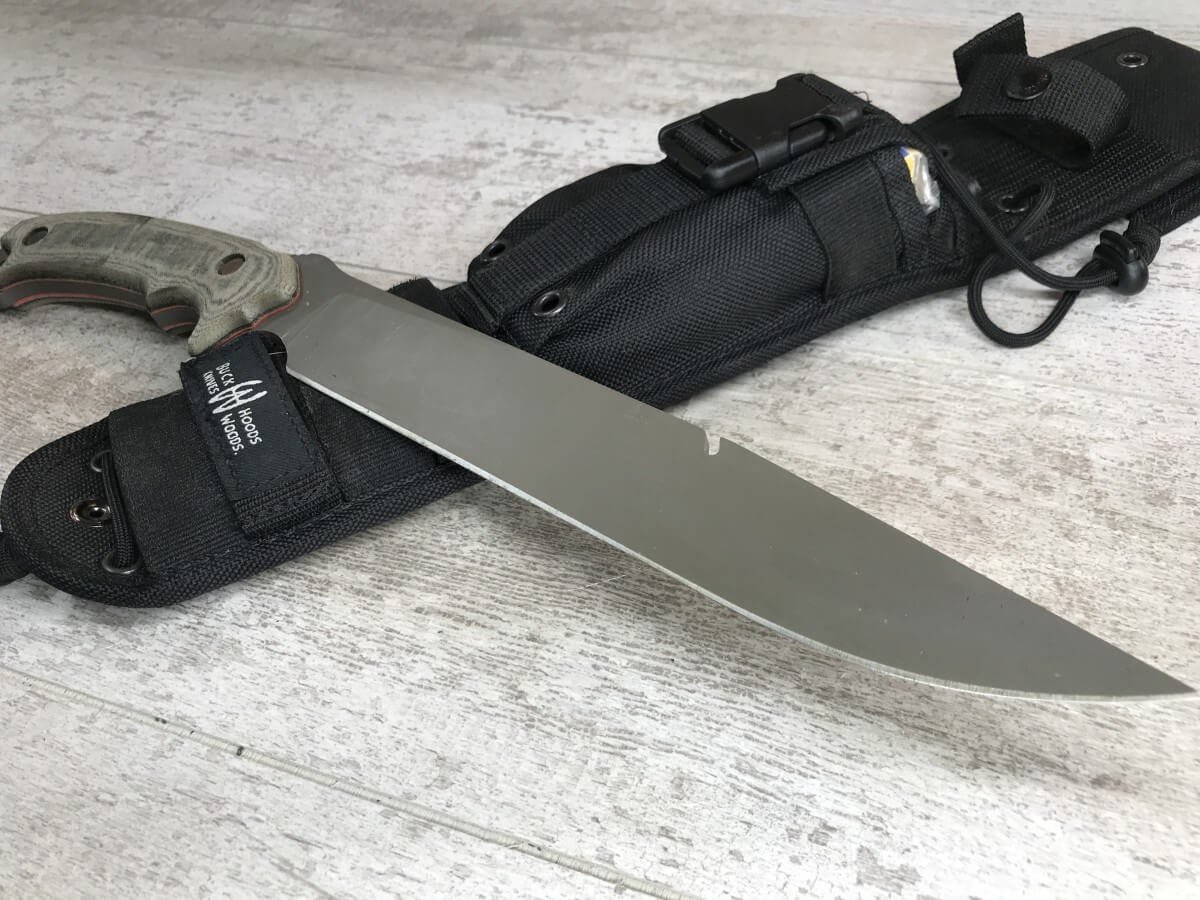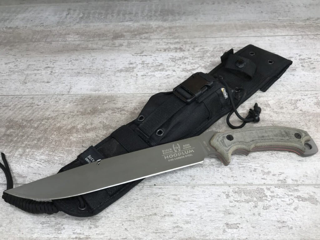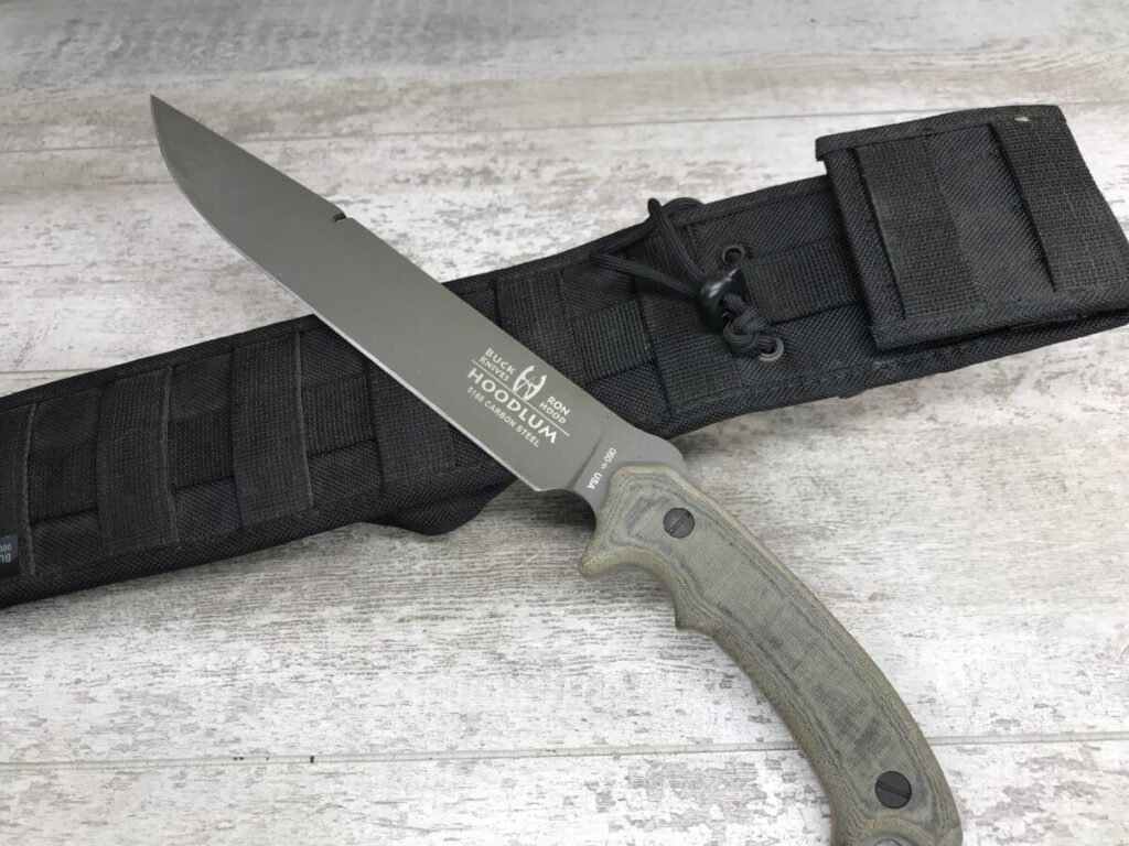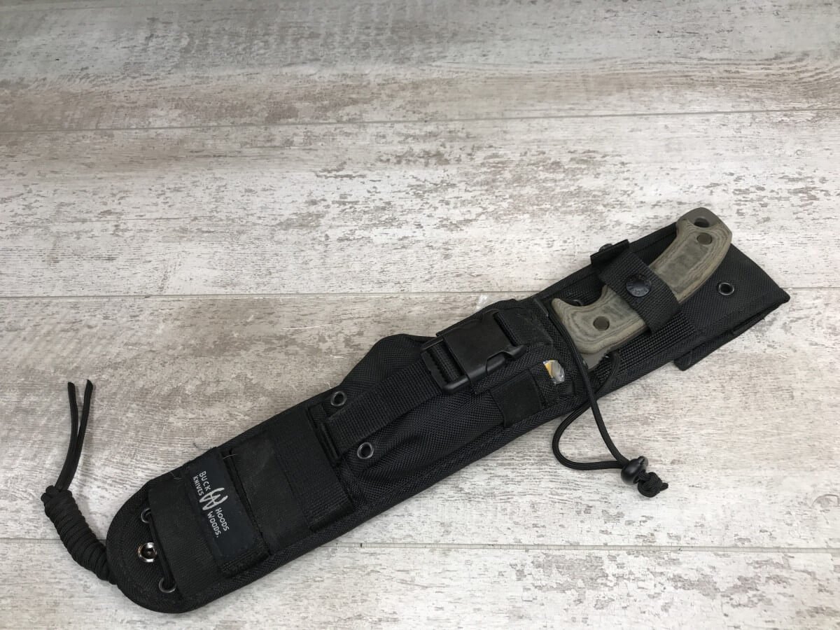 The Hoodlum is built for ultimate survival. Based on Ron Hood’s design and built to Buck’s quality standards, the Hoodlum helps ensure survival in extreme conditions. It is light enough to carry in a sheath, but heavy duty enough for any task out in the wilderness. The handle is built with a Shock Mitigation System (SMS) to alleviate shock and wasted energy when chopping. It has a large finger choil for providing control while whittling or other detailed activities. A groove is cut into the blade spine for scoring bone, bending wire, removing pots from a camp fire, or other small tasks. Also, the Micarta handles can be removed to create a spear by lashing a branch to the tang of the blade. There is an integrated hammer and lanyard hole in the butt of the handle and it comes with a heavy duty nylon sheath. The Hoodlum will serve all your survival needs from protection to food prep while out in the wilderness.