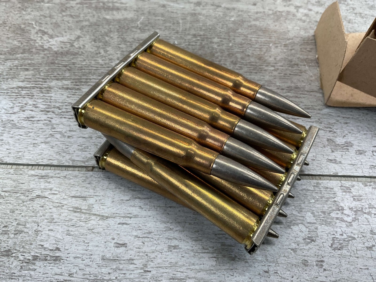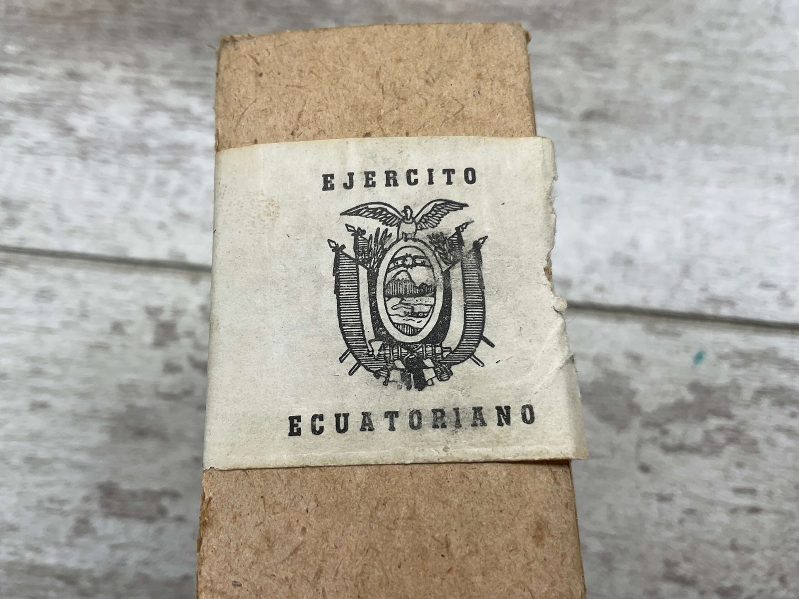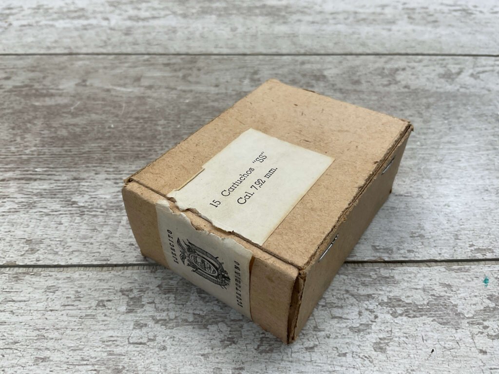 CARTUCHOS “SS” 7.92 CAL. 15 ROUNDS PER BOX SET IN 3 ZIPPER STRIPS, BOXES STAMPED WITH EJERCITO OVER ECUATORIANO, BOXES ARE IN EXCELLENT CONDITION.