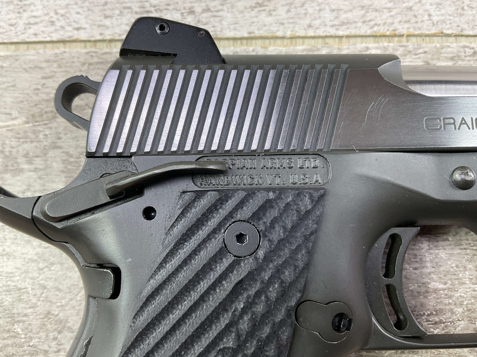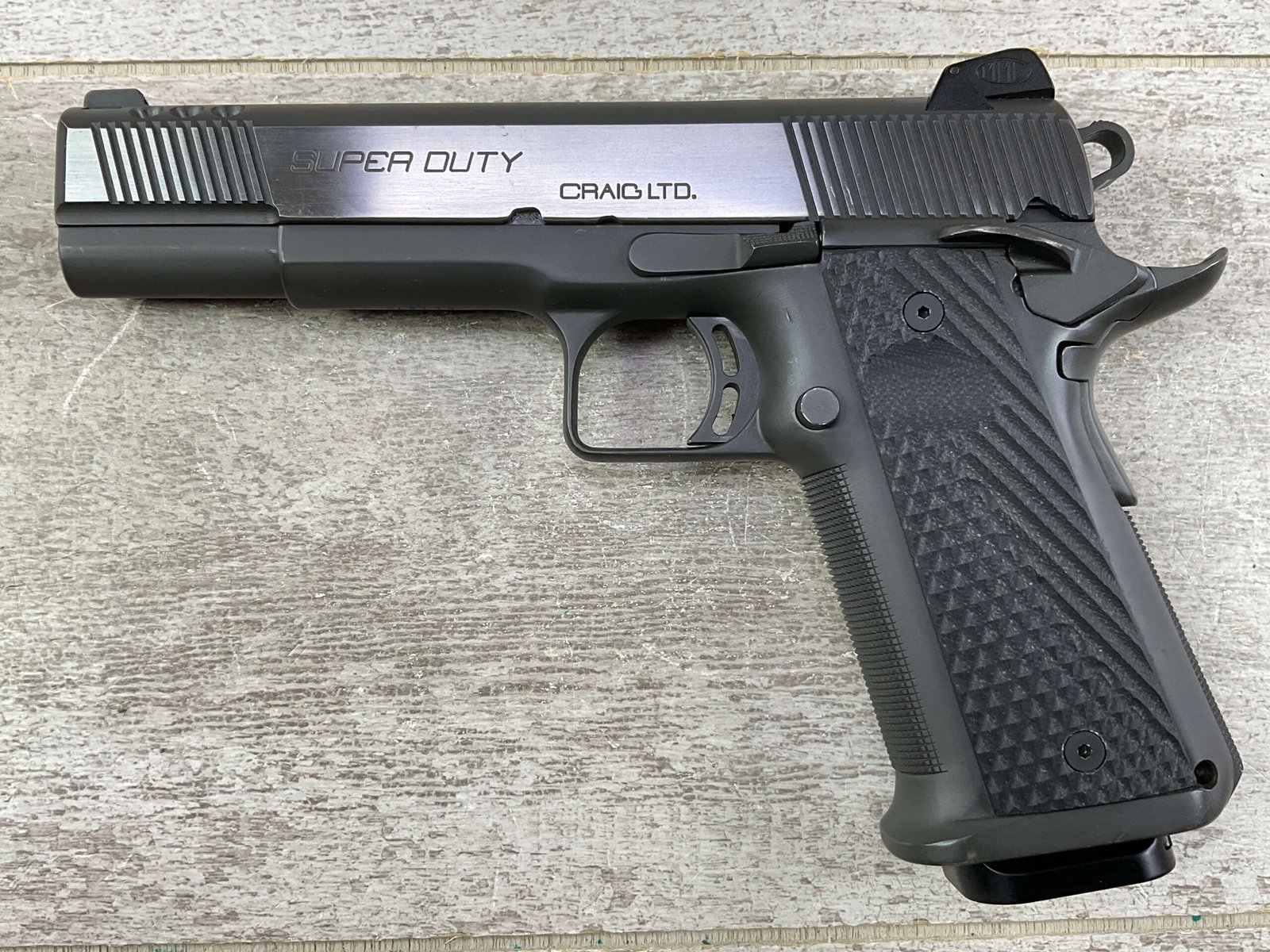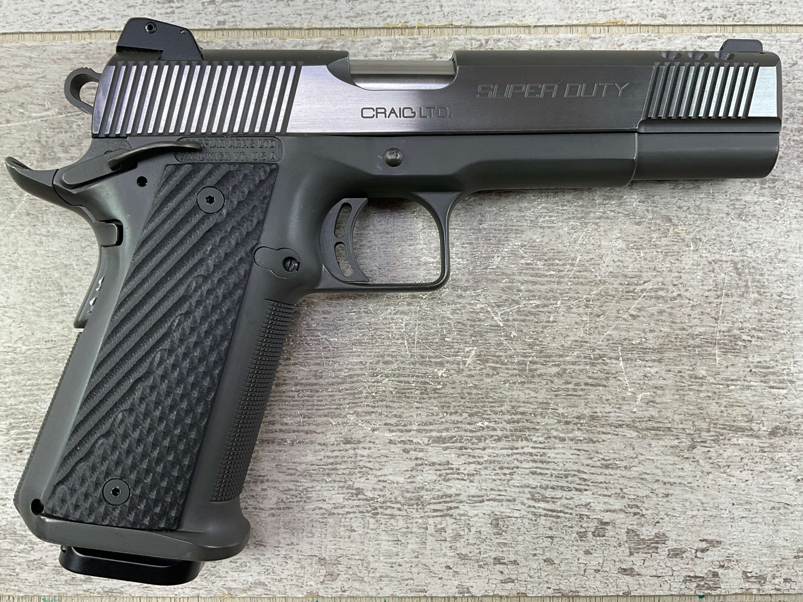 CASPIAN ARMS / FRED CRAIG LTD 1911-A2 45 ACP SEMI AUTO PISTOL, JAMES EARL JONES COLLECTION #01797H, 5″ CUSTOM PORTED FRED CRAIG LTD BARREL, EXC MIRROR BORE & RIFLING, EXC LIKE NEW FINISH, EXC FRED CRAIG LTD STAINLESS SLIDE WHICH IS PORTED TO MATCH BARREL, CUSTOM TRIGGER, ENLARGED MAG WELL, SILKY SMOOTH ACTION, CONDITION AS SHOWN IN PICTURES, FROM THE JAMES EARL JONES “FAVORITES” COLLECTION W/ CERTIFICATE OF AUTHENTICITY.
