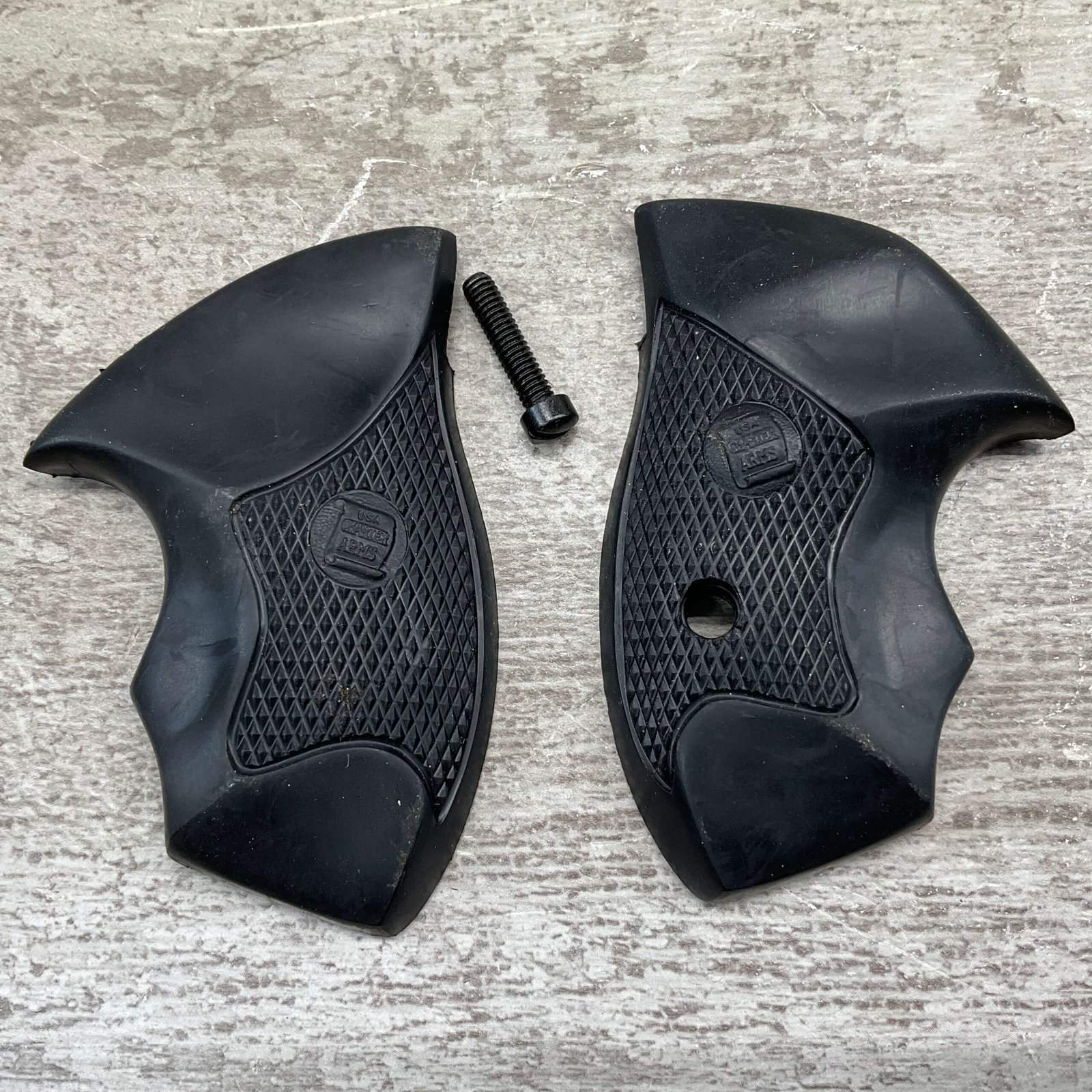 CHARTER ARMS PACHMAYR COMPAC GRIPS, BLACK RUBBER, COMES WITH SCREWS, IN EXCELLENT CONDITION.