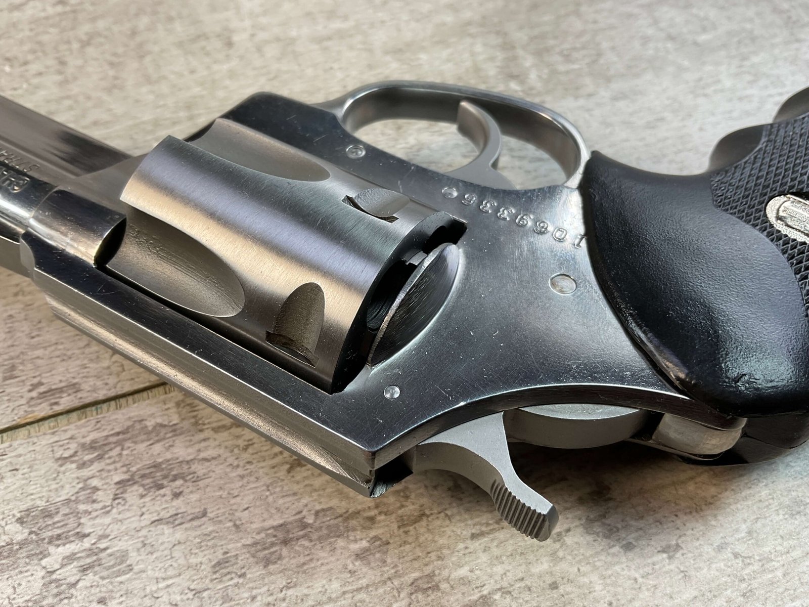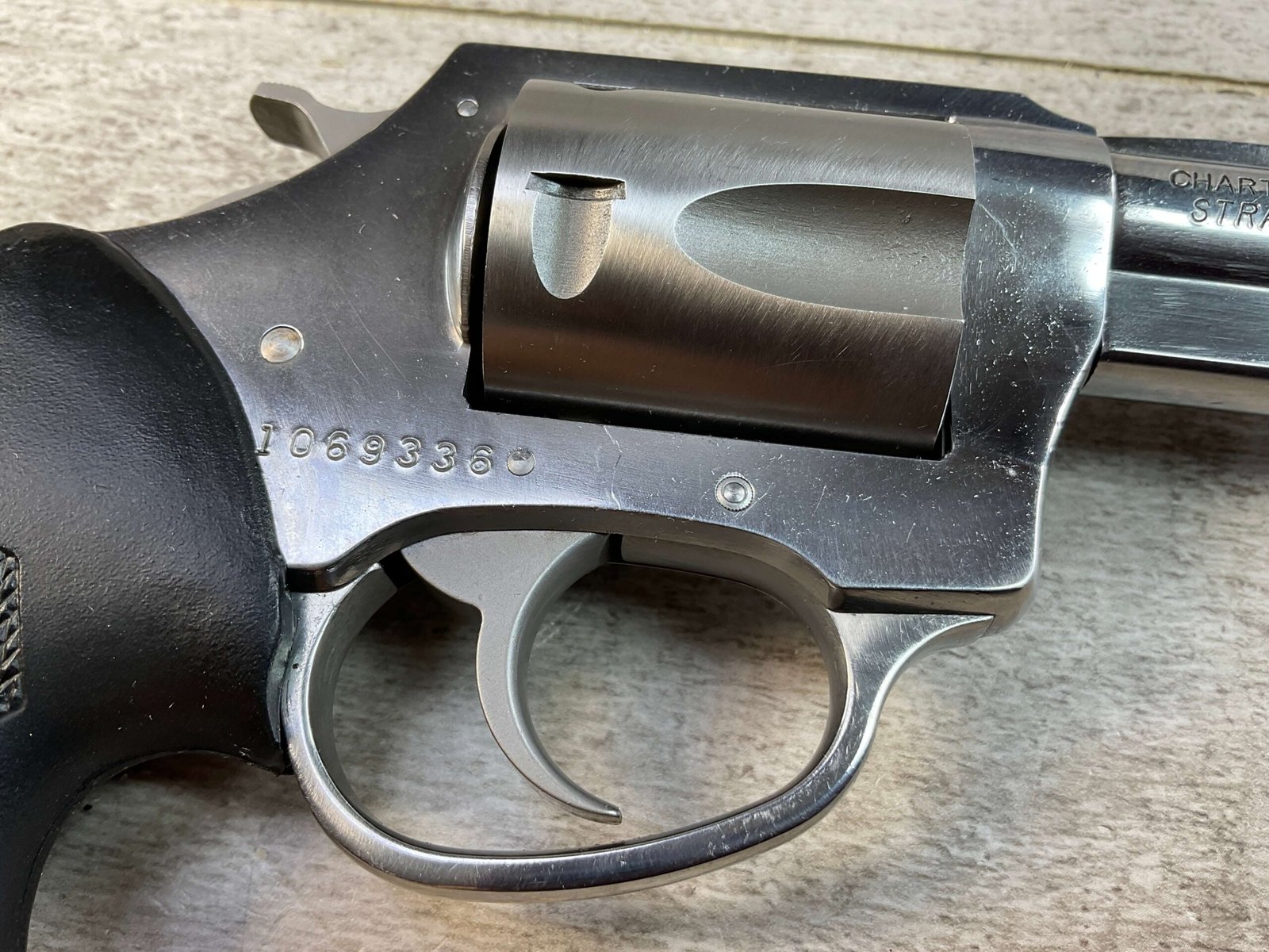 CHARTER ARMS PITBULL 9MM STAINLESS FINISH REVOLVER #1069336, 2.5″ BARREL, 5 ROUND CYLINDER, STAINLESS FINISH W/ GLASS BEADED CYLINDER, NEOPRENE GRIP, INTEGRAL SIGHTS, HAMMER BLOCK SAFETY, CONDITION AS SHOWN IN PICTURES, FROM THE JAMES EARL JONES “FAVORITES” COLLECTION W/ CERTIFICATE OF AUTHENTICITY.