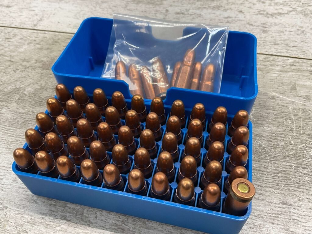 CHINESE 1993 7.62MM TOKAREV AMMO, FULL BOX (QTY 58), VINTAGE, 50 ROUNDS IN BLUE CASE AND 8 ROUNDS IN SEPARATE PLASTIC BAG, HEADSTAMP “I I / 93”.