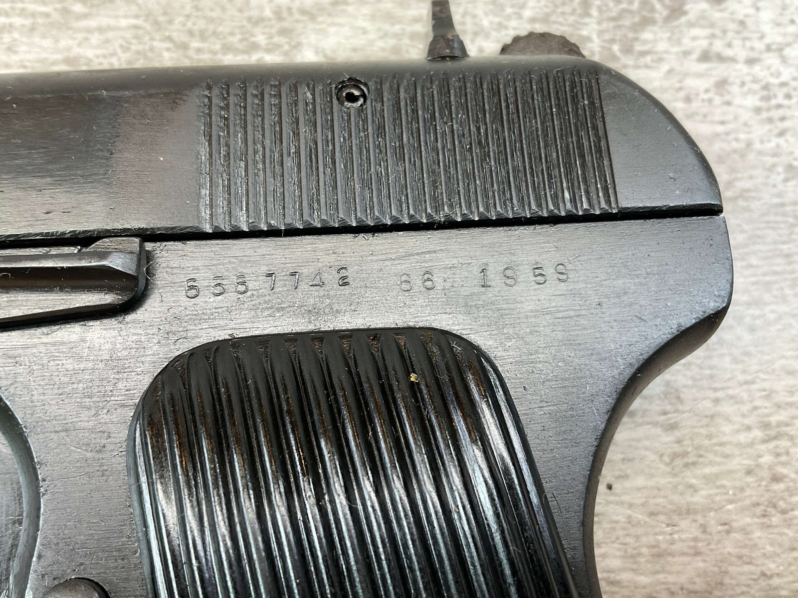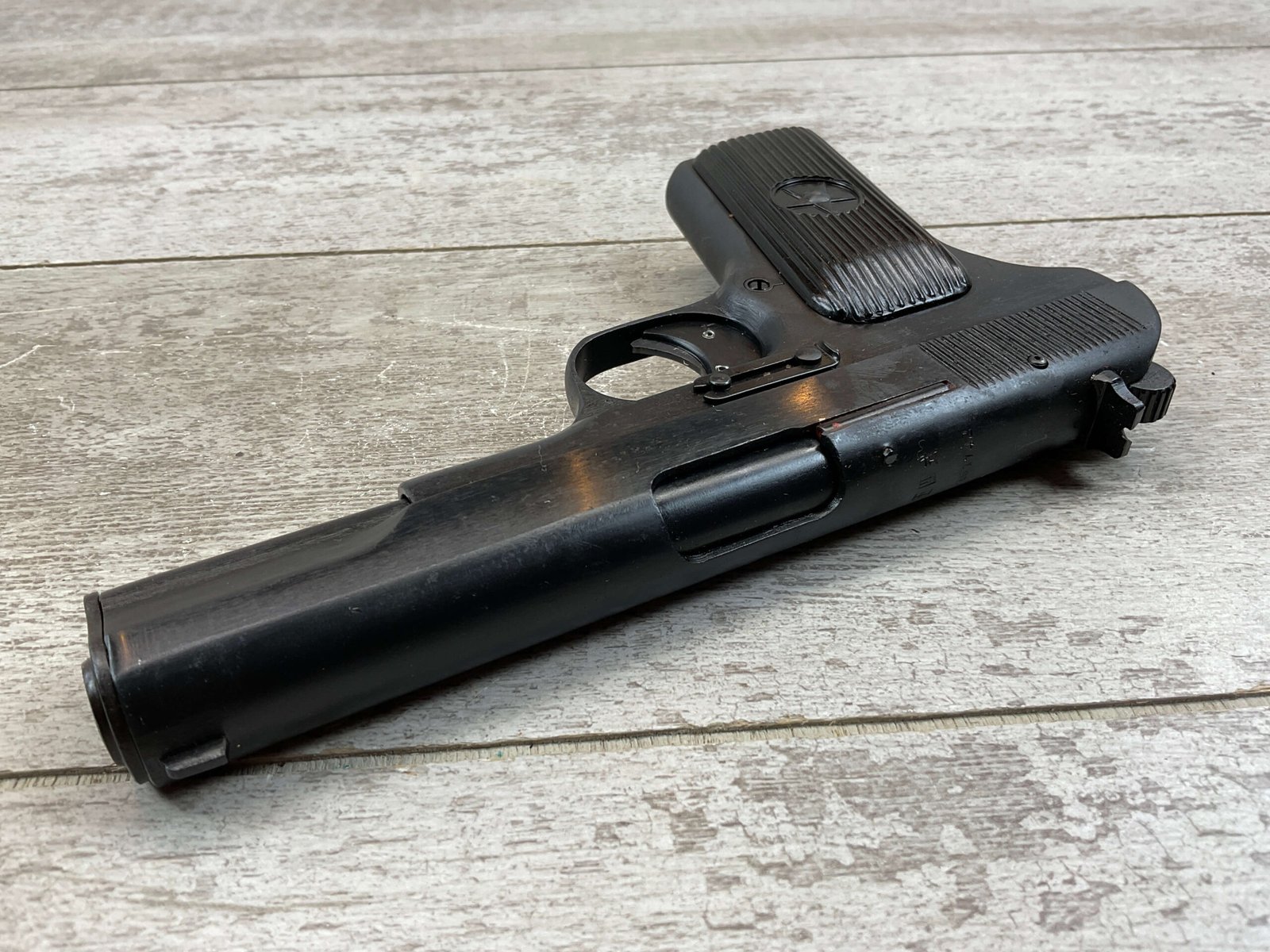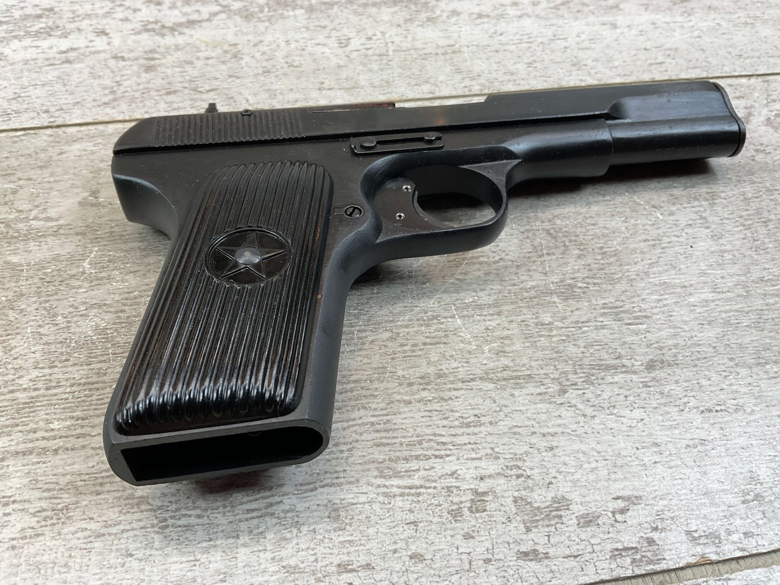 CHINESE TYPE 54 7.62X25(.30) FULL MILITARY, 1959 DATE, MATCHING FRAME/SLIDE/BARREL, HAND SELECT, EXC. GRIPS, EXC. BORE, RECENT IMPORT, TASTEFUL GLOCK-TYPE TRIGGER SAFETY, IN BOX W/CLEANING ROD & MANUAL, EXC. CONDITION, C&R OK (ADD $25 FOR EXC. EXTRA MAG)($10 EXTRA FOR 16RD.BX. BULK AMMO)