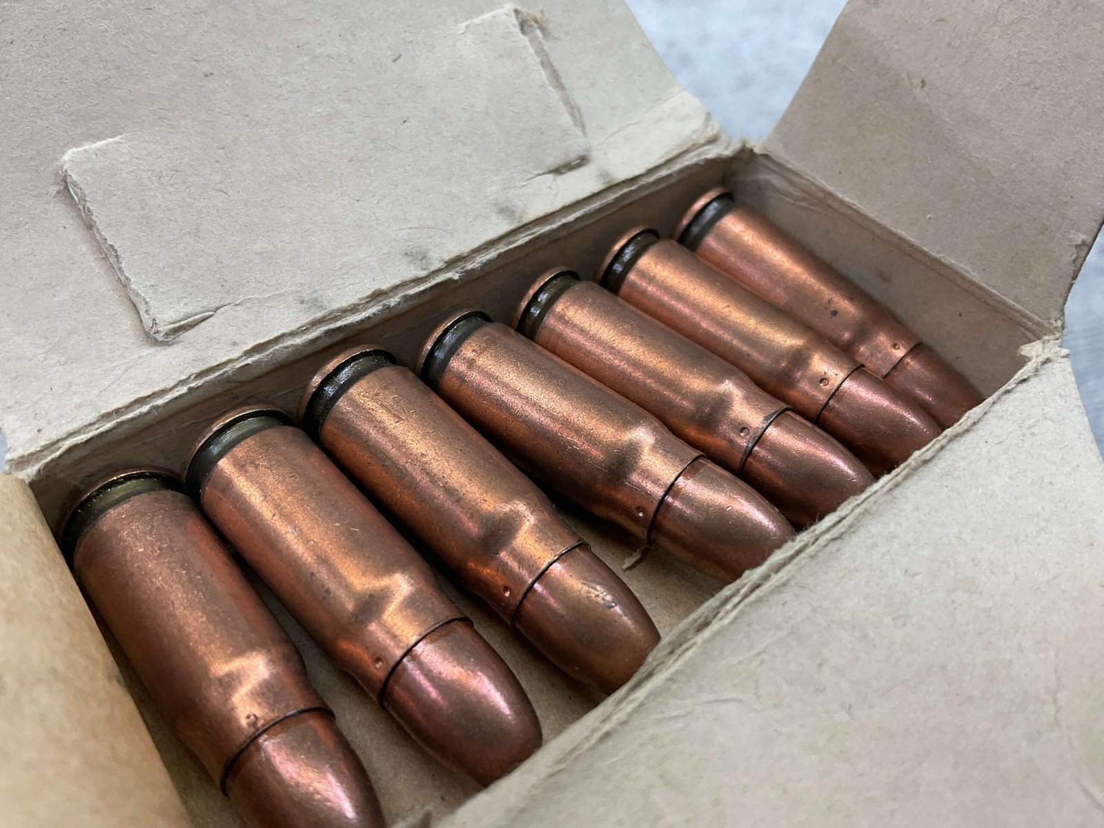 CHINESE (TAIWAN) 7.62MM STEEL TOKAREV AMMO, FULL BOX, VINTAGE, FULL BOX (70 ROUNDS), LABEL TRANSLATES TO “7.62 HANDGUN (STEEL) / TYPE 51 / 70 ROUNDS”, BOX IS IN EXC CONDITION.