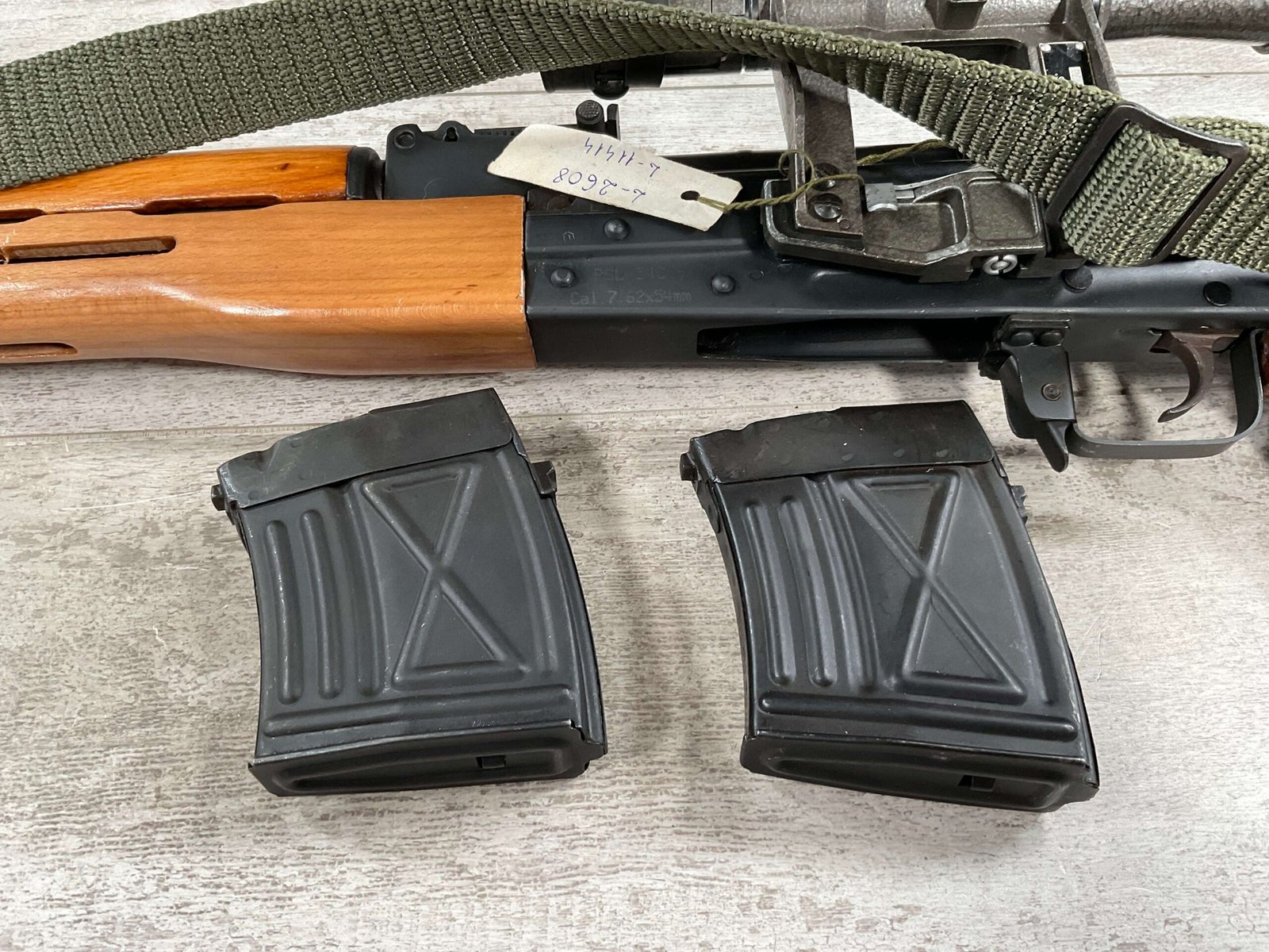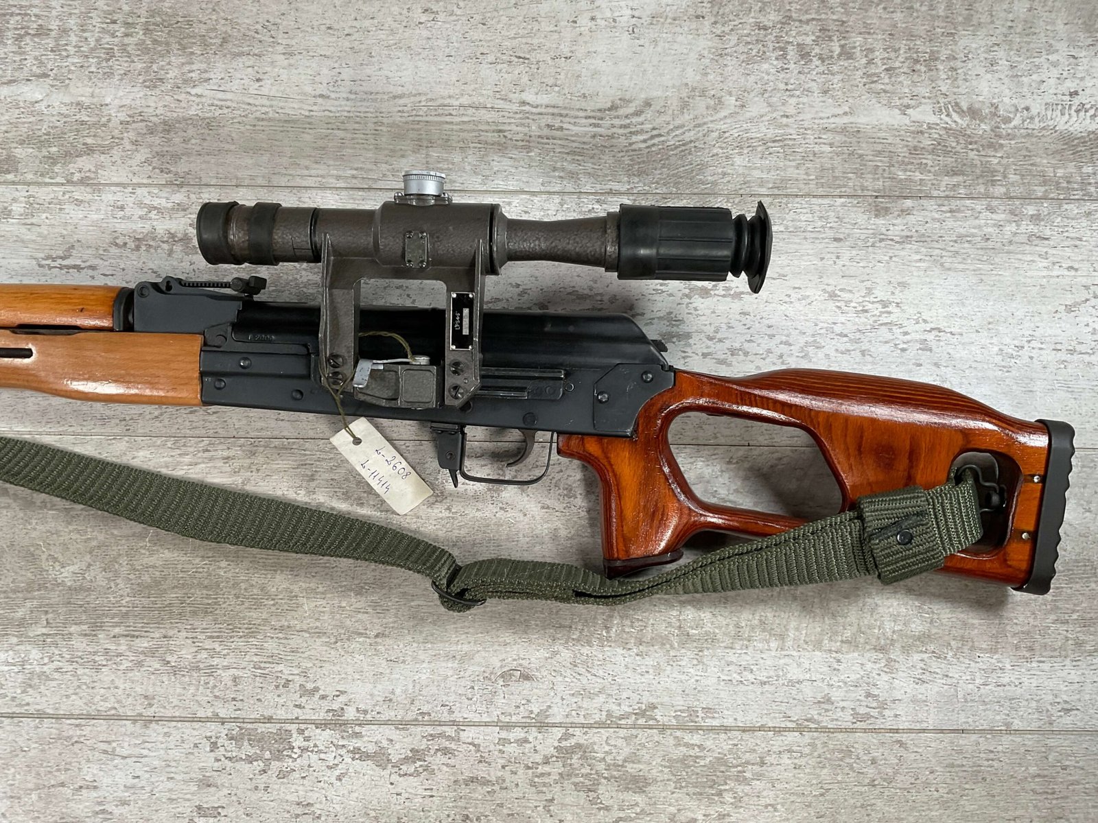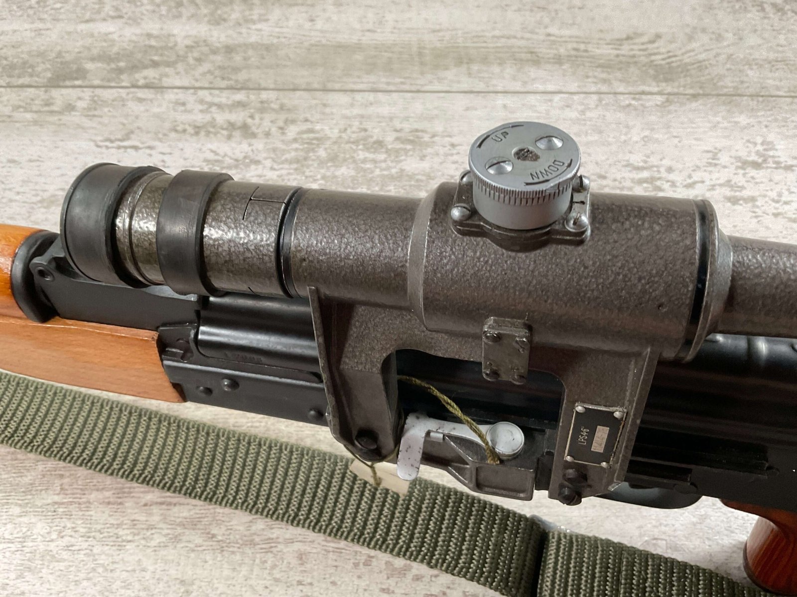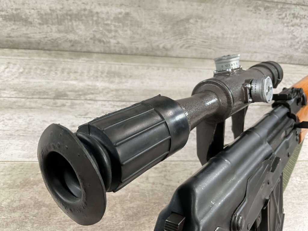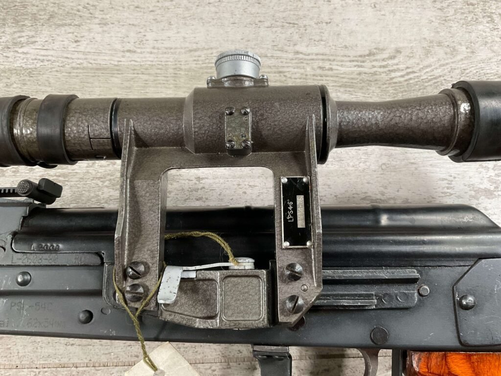 CN ROMARM SA/CUGIR ROMANIAN PSL-54 7.62x54r SNIPER RIFLE W/SCOPE #L-2608-80, AK SERIES, DRAGUNOV-LIKE, EXC WOOD FURNITURE W/THUMBHOLE STOCK, EXC PARKERIZED STEEL W/MINIMAL HANDLING MARKS, STEEL BUTT PLATE, 2 10 ROUND MAGS, ALL MATCHING NUMBERS, EXC BRIGHT BORE W.EXC RIFLING, RUSSIAN LPS 4×6 SCOPE & MOUNT #11414-76, 24″ BBL W/FLASH COMPENSATOR, 95+% OVERALL