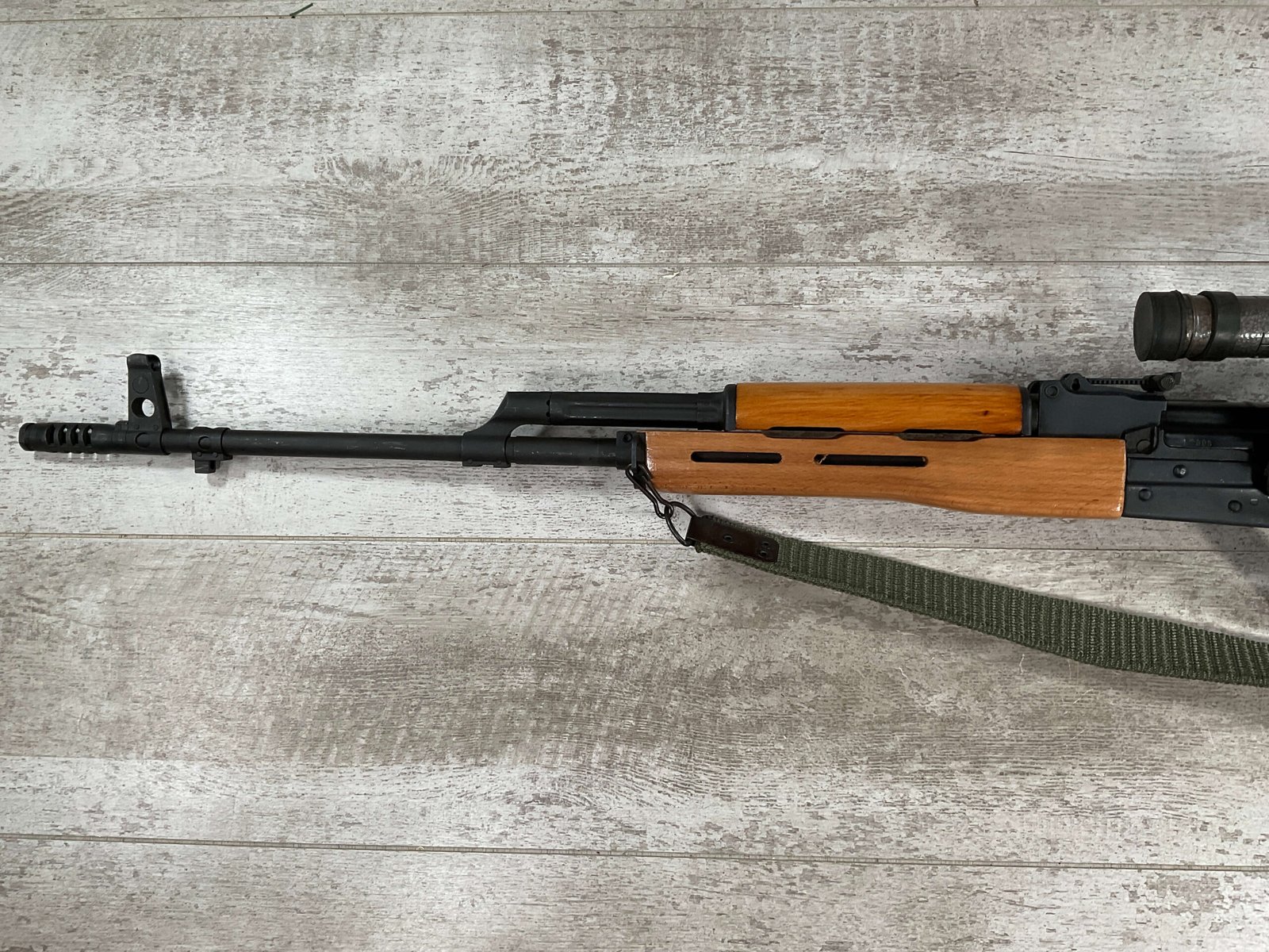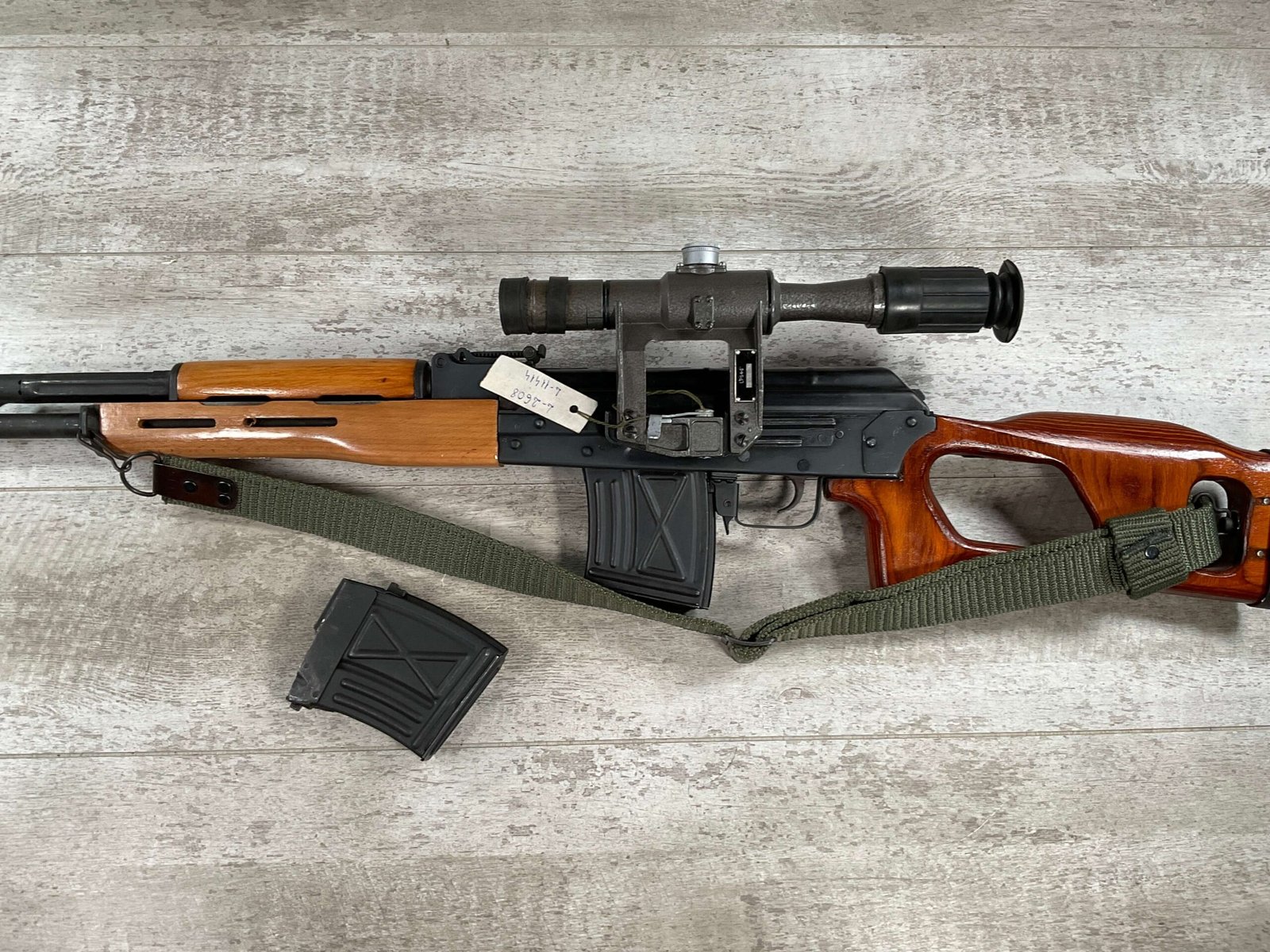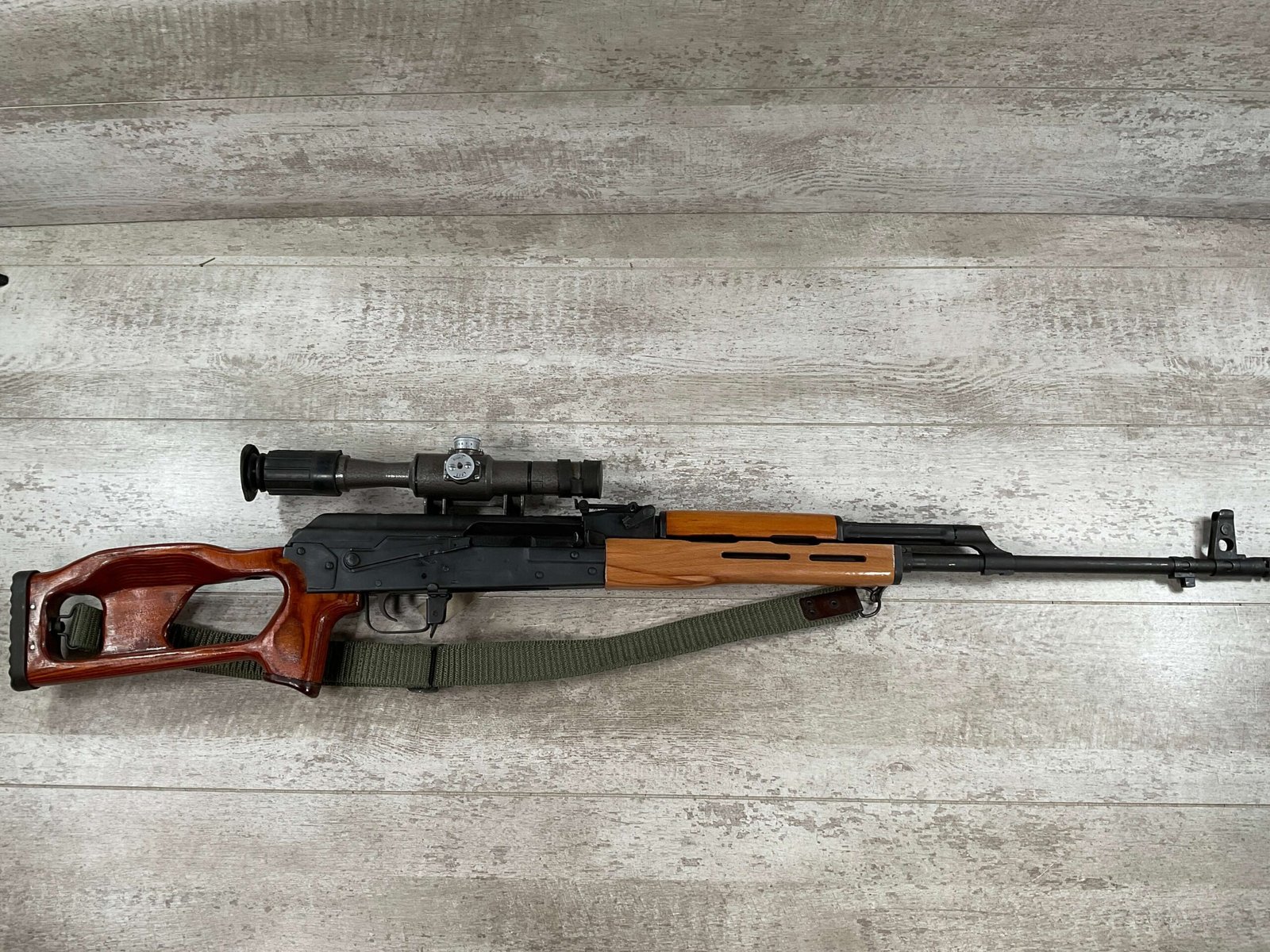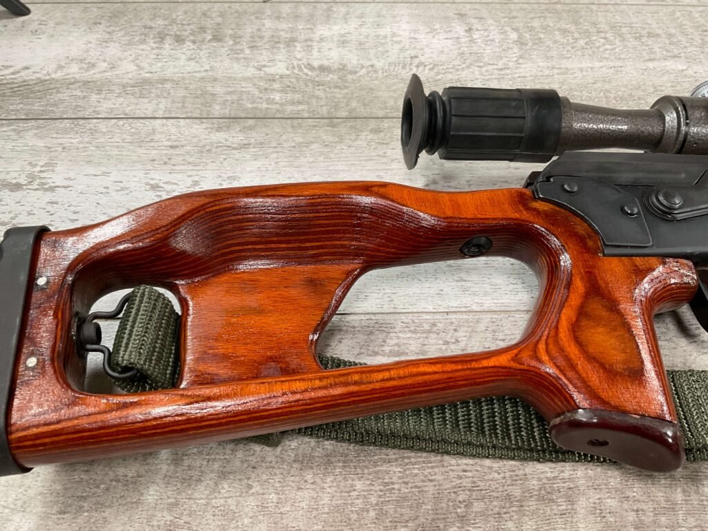 CN ROMARM SA/CUGIR ROMANIAN PSL-54 7.62x54r SNIPER RIFLE W/SCOPE #L-2608-80, AK SERIES, DRAGUNOV-LIKE, EXC WOOD FURNITURE W/THUMBHOLE STOCK, EXC PARKERIZED STEEL W/MINIMAL HANDLING MARKS, STEEL BUTT PLATE, 2 10 ROUND MAGS, ALL MATCHING NUMBERS, EXC BRIGHT BORE W.EXC RIFLING, RUSSIAN LPS 4×6 SCOPE & MOUNT #11414-76, 24″ BBL W/FLASH COMPENSATOR, 95+% OVERALL
