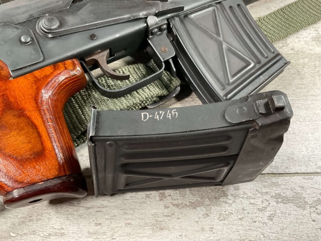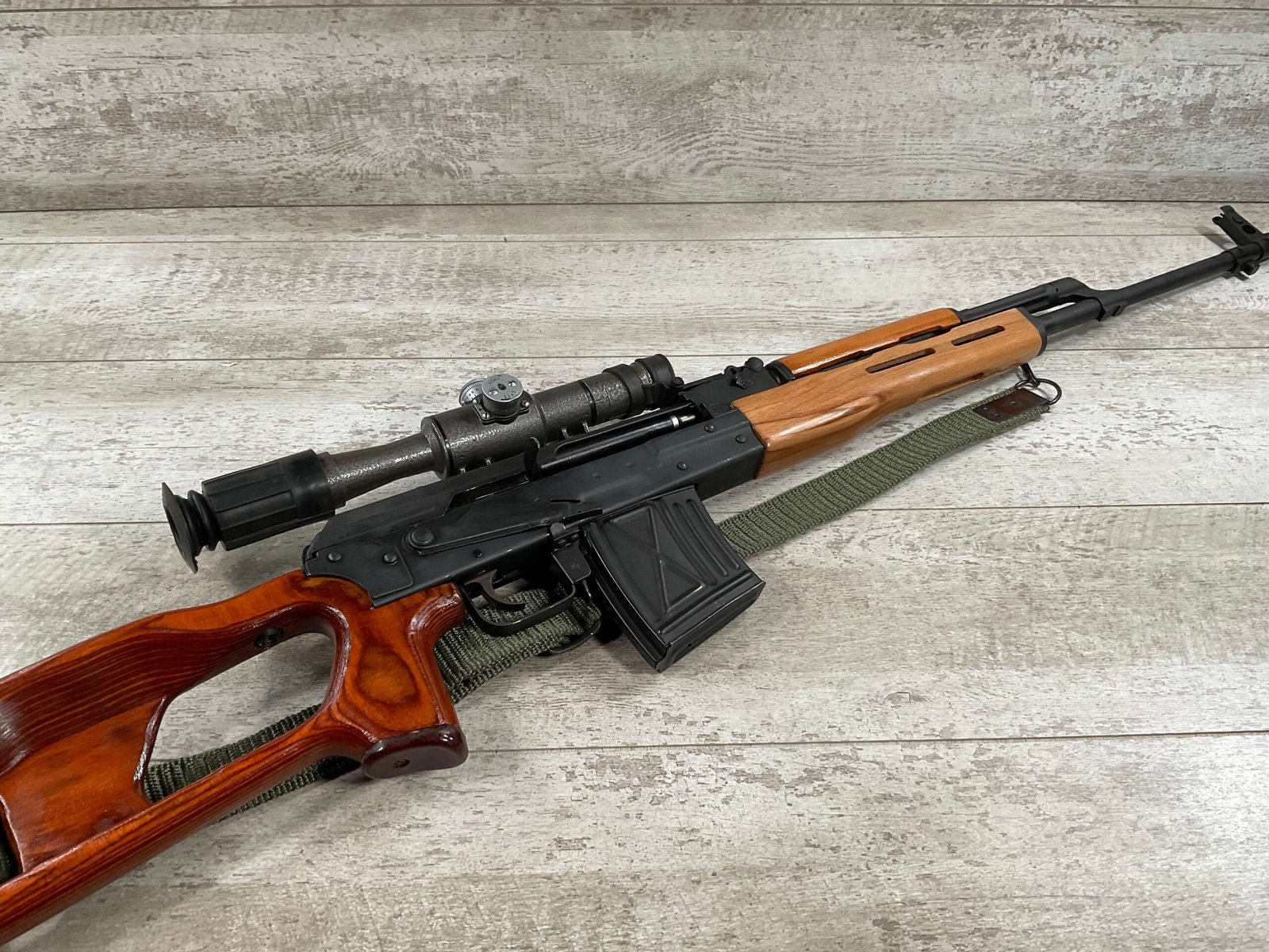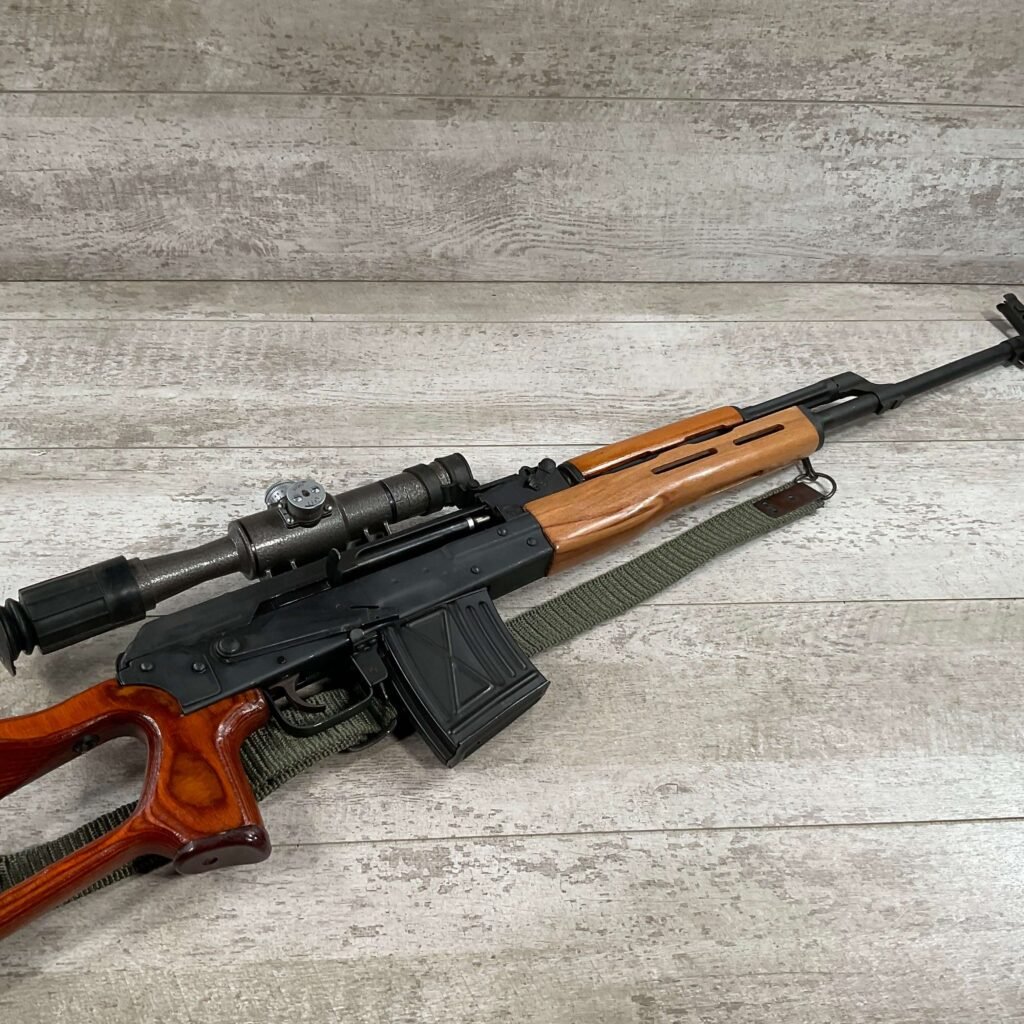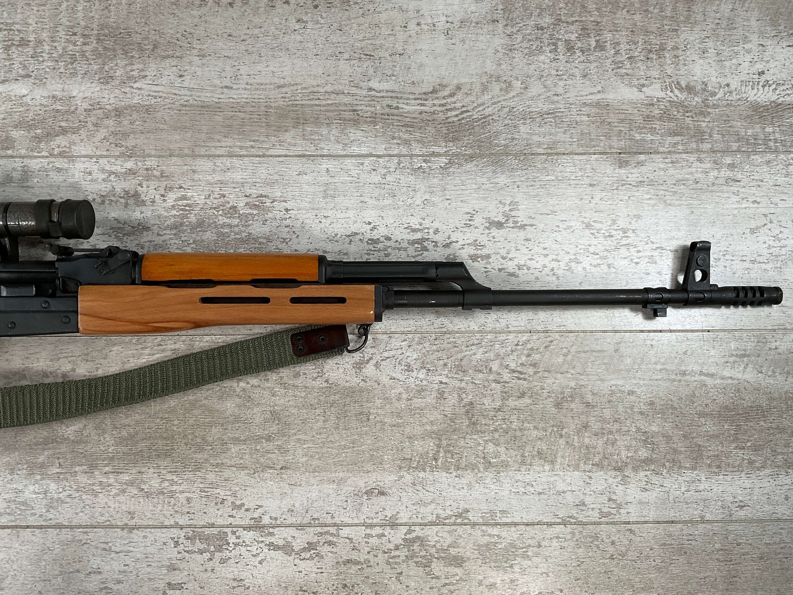 CN ROMARM SA/CUGIR ROMANIAN PSL-54 7.62x54r SNIPER RIFLE W/SCOPE #L-2608-80, AK SERIES, DRAGUNOV-LIKE, EXC WOOD FURNITURE W/THUMBHOLE STOCK, EXC PARKERIZED STEEL W/MINIMAL HANDLING MARKS, STEEL BUTT PLATE, 2 10 ROUND MAGS, ALL MATCHING NUMBERS, EXC BRIGHT BORE W.EXC RIFLING, RUSSIAN LPS 4×6 SCOPE & MOUNT #11414-76, 24″ BBL W/FLASH COMPENSATOR, 95+% OVERALL