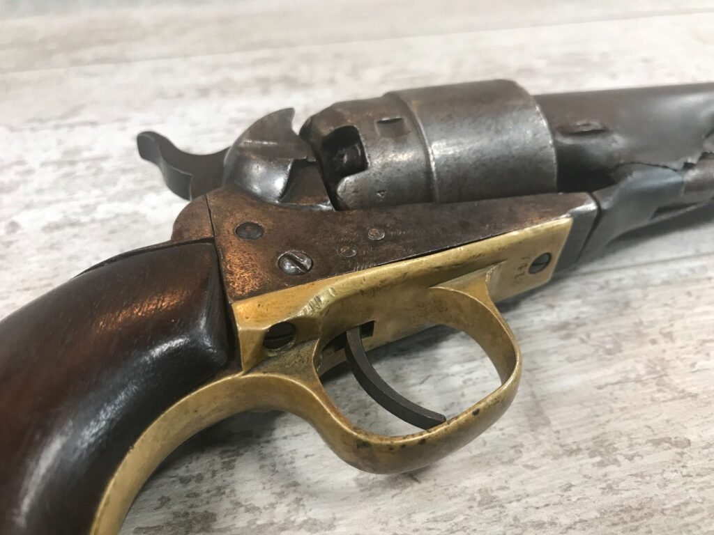 COLT 1860 ARMY #7413 (1861 MFR), .44CAL, 8″ BARREL, ANTIQUE BROWN PATINA, PERCUSION CAPS MISSING, FRAME CRACKED, MECHANICALLY NEEDS ATTENTION, STILL AN AMAZING PIECE OF HISTORY!!