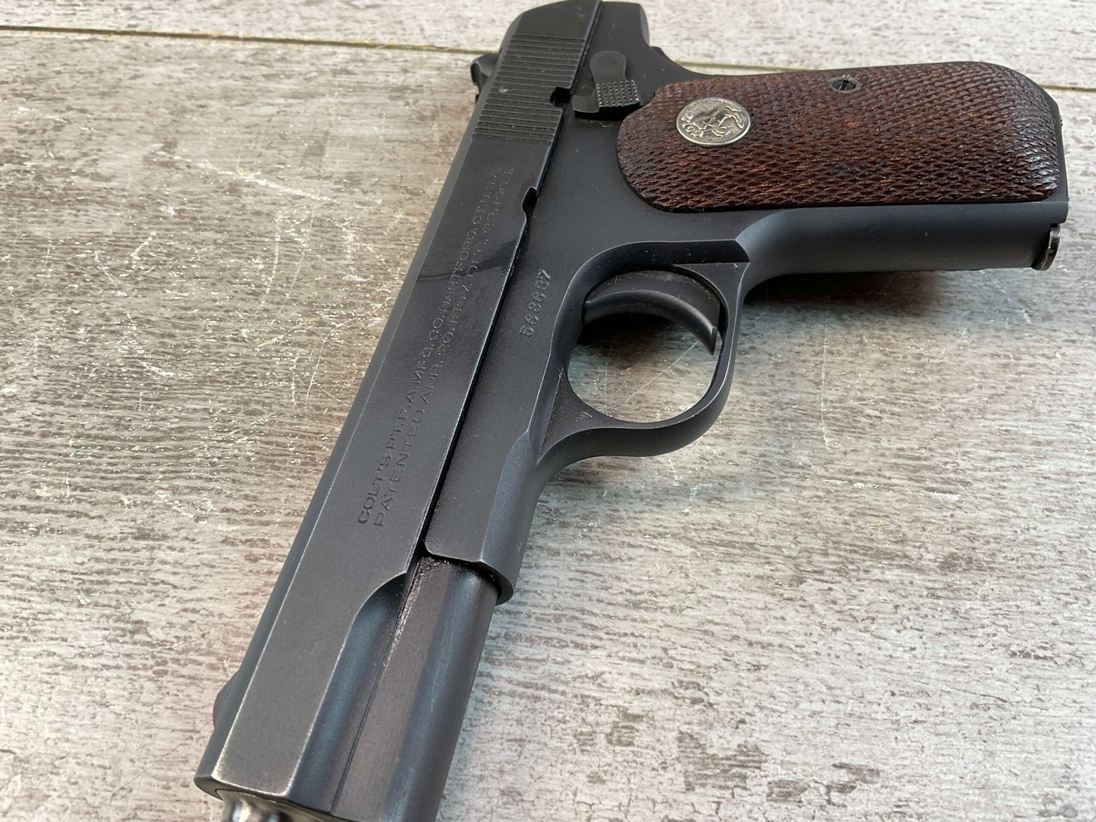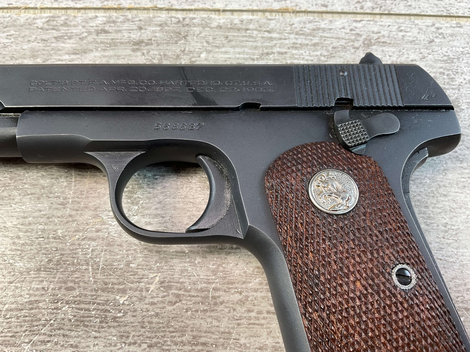 COLT 1903 POCKET HAMMERLESS .32 AUTO SEMI AUTO PISTOL, JAMES EARL JONES COLLECTION, US PROPERTY MARKED #568637, 1943 MFR, US PROPERTY MARKED, EXC PARKERIZED FINISH, EXC MINTY BORE & RIFLING, EXC ORIGINAL CHECKERED WOOD GRIPS W/ SILVER MEDALLION, A MUST FOR THE COLT / WWII COLLECTOR! CONDITION AS SHOWN IN PICTURES, FROM THE JAMES EARL JONES “FAVORITES” COLLECTION W/ CERTIFICATE OF AUTHENTICITY.