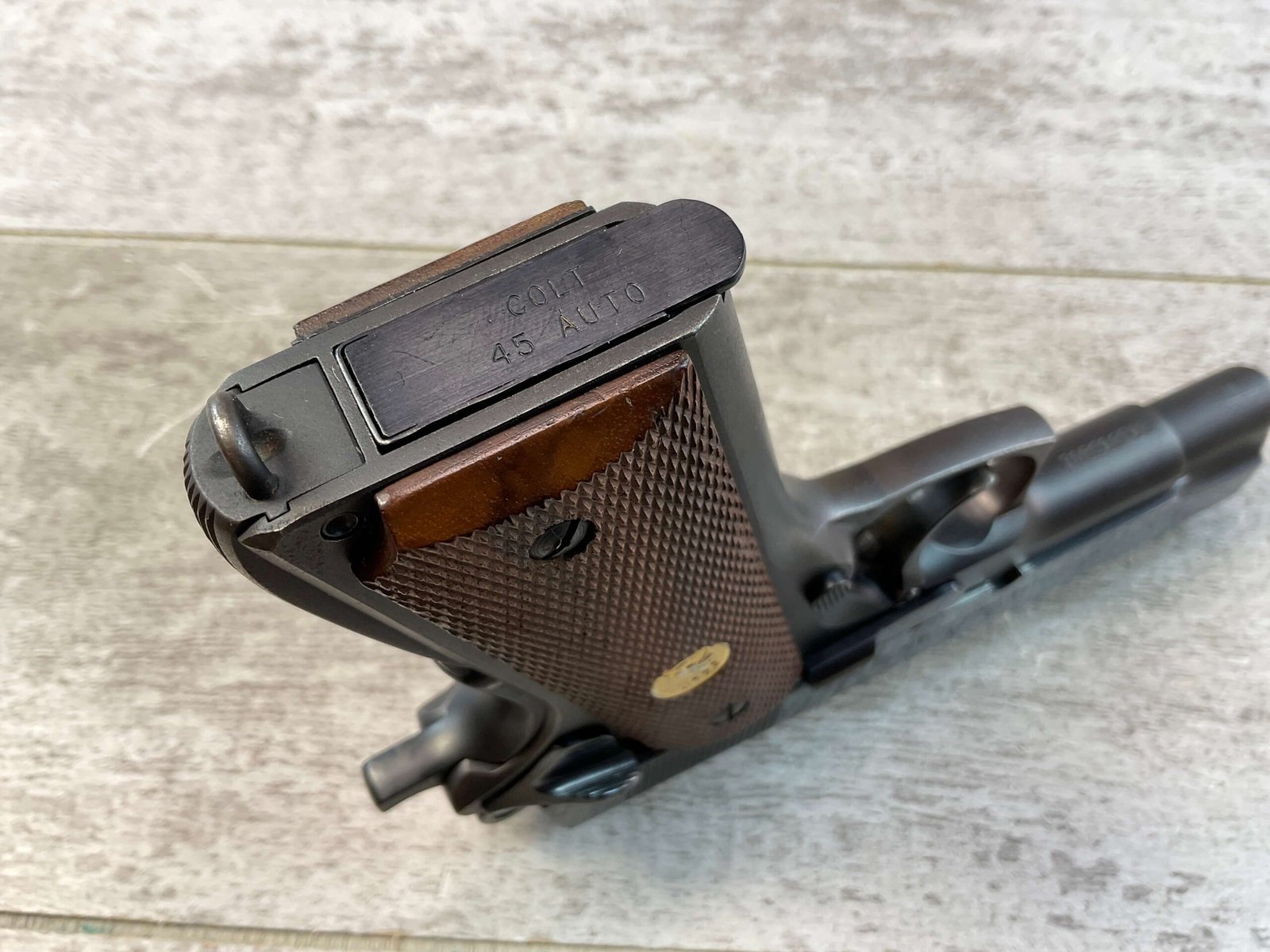 COLT COMBAT COMMANDER 1911 45 ACP SEMI AUTO PISTOL, JAMES EARL JONES COLLECTION #70BS13713, 4.25″ BARREL, EXC CHECKERED WALNUT COLT GRIPS, VG ORIGINAL FINISH W/HIGH EDGE WEAR & LIGHT SCRATCHES FROM USE, DA TRIGGER KIT, ONE COLT MAGAZINE, SMOOTH ACTION, CONDITION AS SHOWN IN PICTURES, FROM THE JAMES EARL JONES “FAVORITES” COLLECTION W/ CERTIFICATE OF AUTHENTICITY.