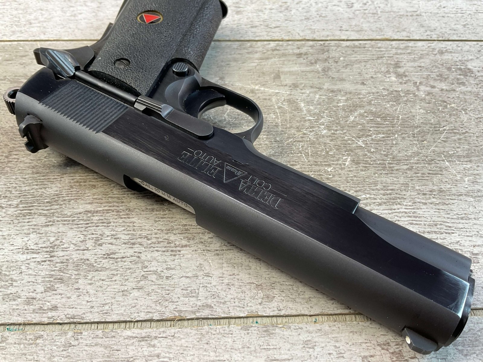 COLT DELTA ELITE 10MM SEMI AUTO PISTOL, JAMES EARL JONES COLLECTION #DE09369, 5″ BARREL, EXC BORE & RIFLING, EXC HIGH GLOSS FINISH W/ VIRTUALY NO SCRATCHES, EXC BLACK NEOPRENE GRIPS, 3 DOT HIGH PROFILE SIGHTS, 1 -86 ROUND MAGAZINE INCLUDED, CONDITION AS SHOWN IN PICTURES, FROM THE JAMES EARL JONES “FAVORITES” COLLECTION W/ CERTIFICATE OF AUTHENTICITY.