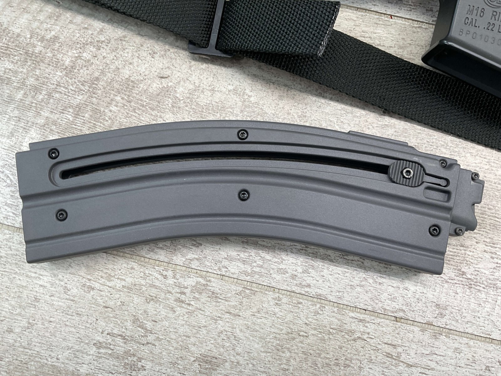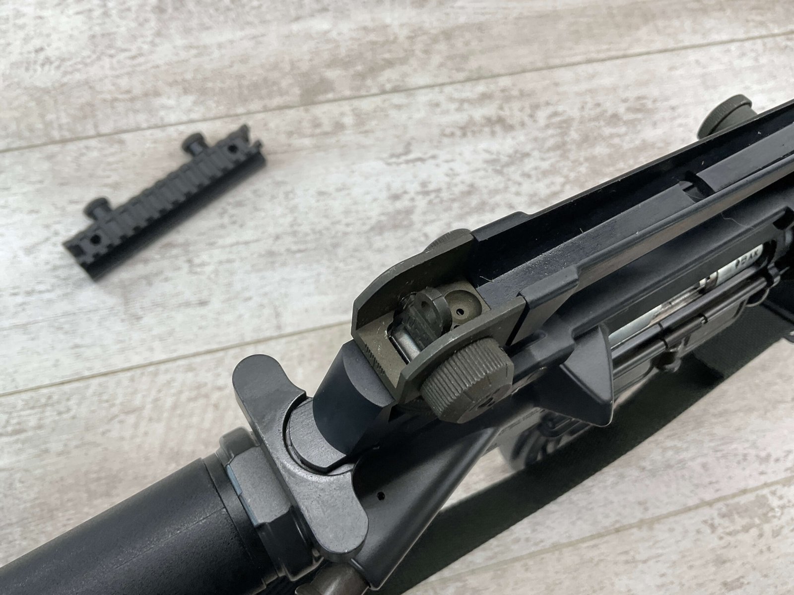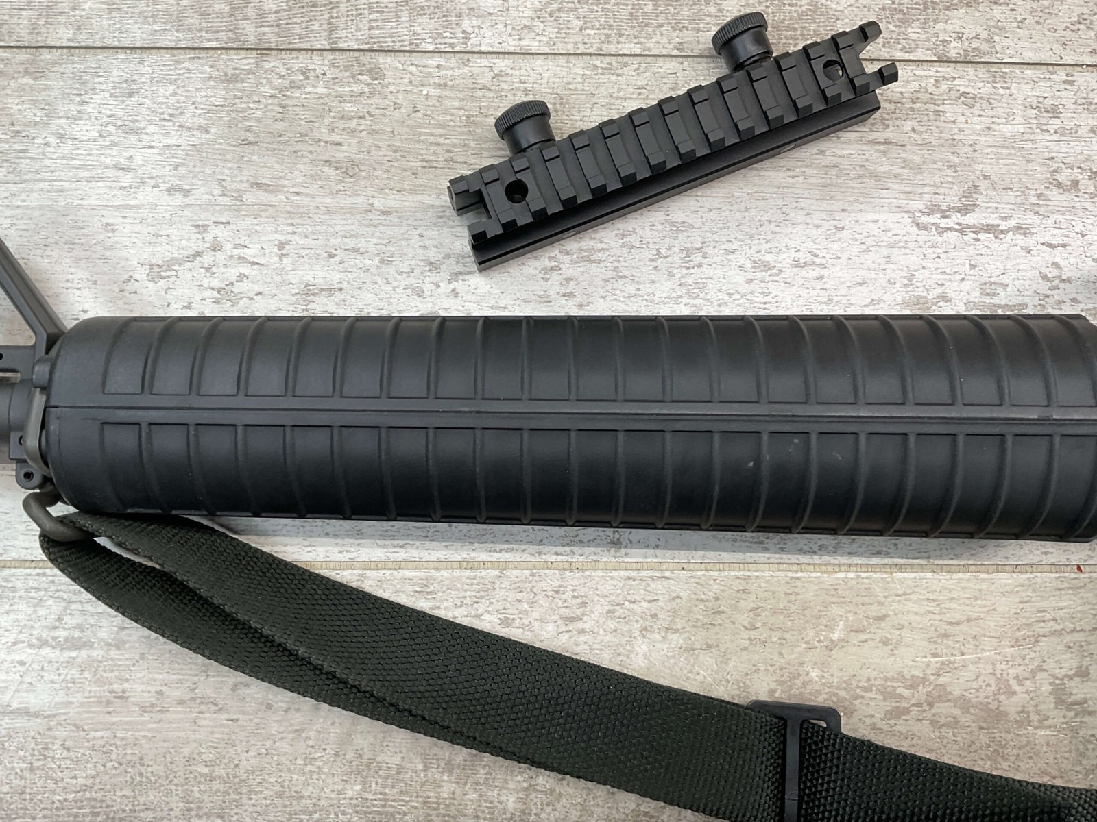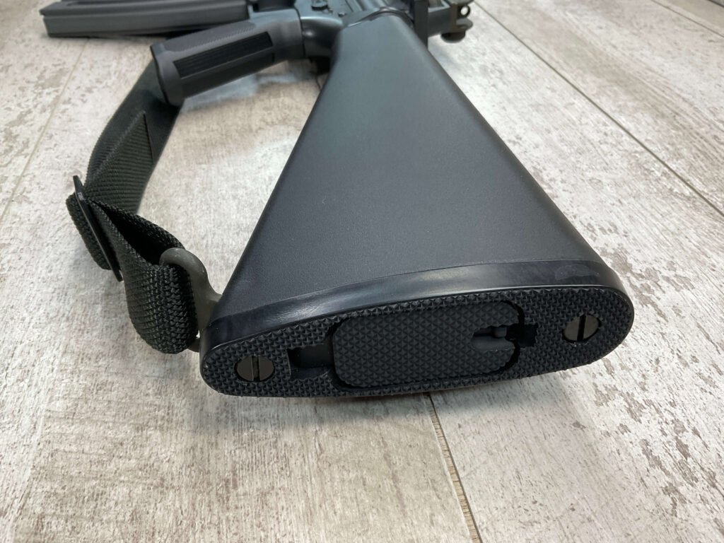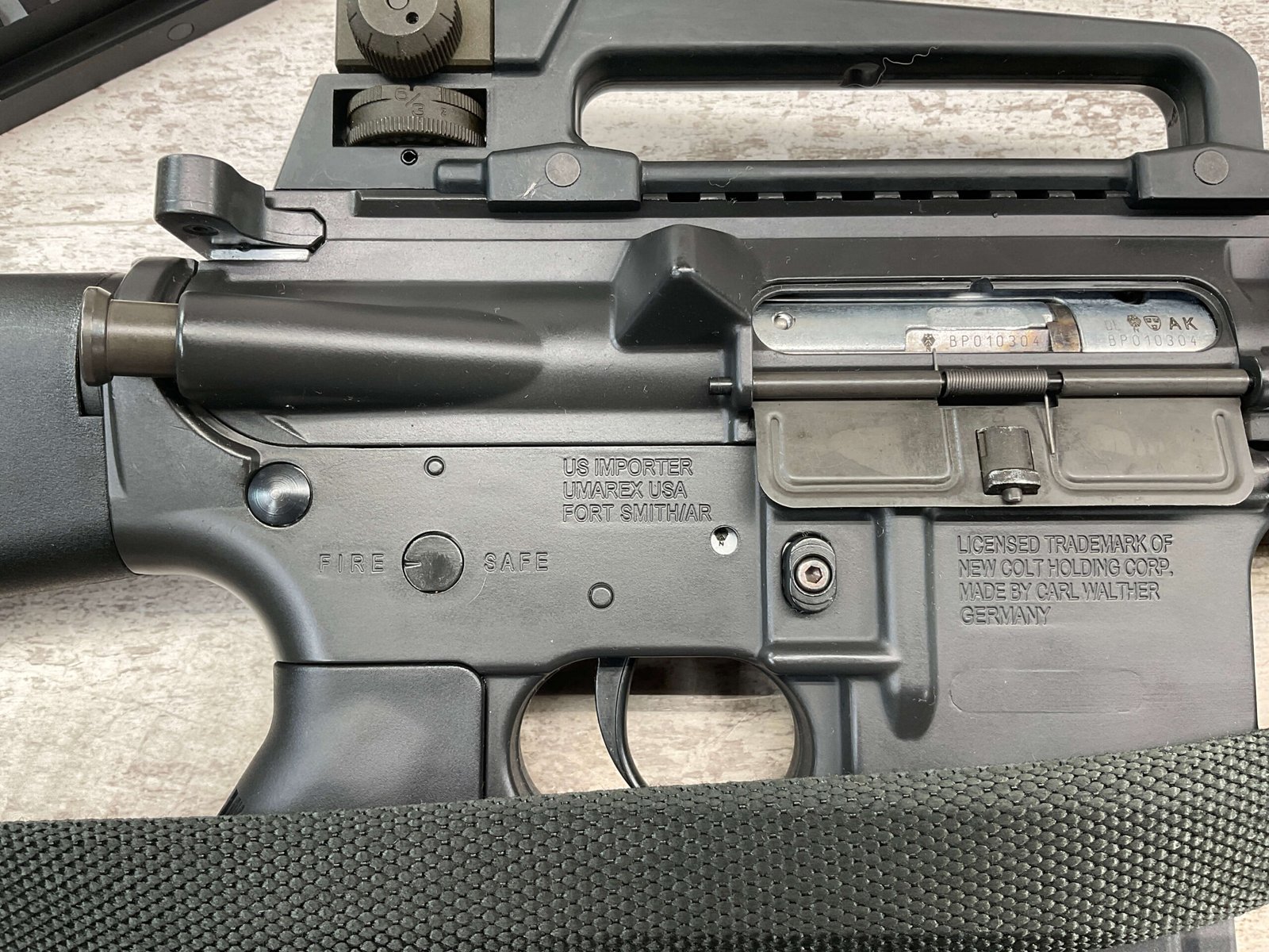 COLT M16 .22LR SPORTER SEMI AUTO RIFLE, MINTY #BP010304, SPORTER, 21.5″ BBL, A2 ADJUSTABLE SIGHTS W/REMOVABLE CARRY HANDLE & REMOVABLE SCOPE MOUNT, BAYONET LUG, BIRD CAGE FLASH HIDER, CANVAS SLING, 1 FACTORY 30 ROUND MAGAZINE INCLUDED (MORE AVAILABLE), EXC BRIGHT BORE & RIFLING, 98+% OVERALL