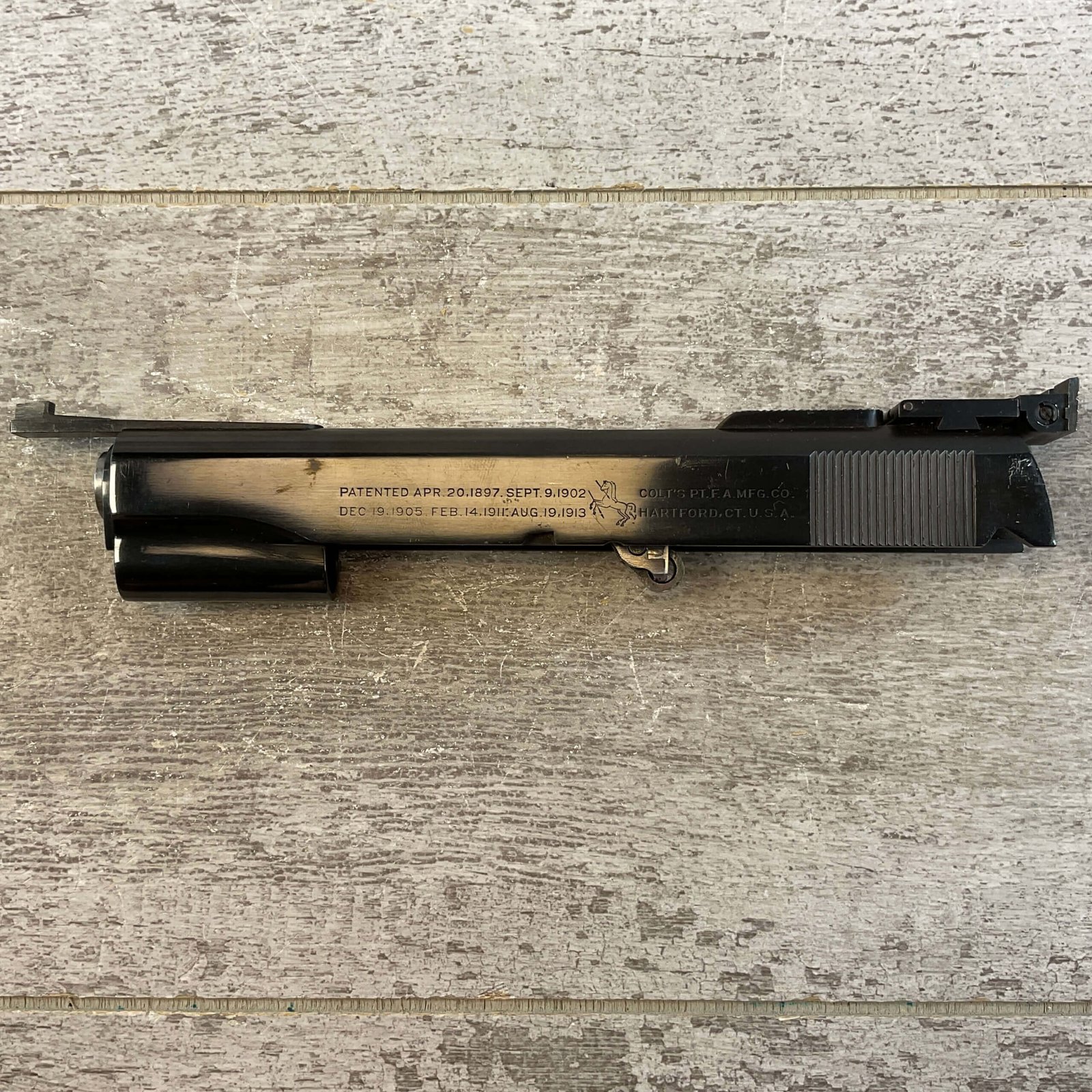 COLT WWII SLIDE & NM BARREL W/TARGET SIGHTS, JAMES EARL JONES COLLECTION #5-11672-PF