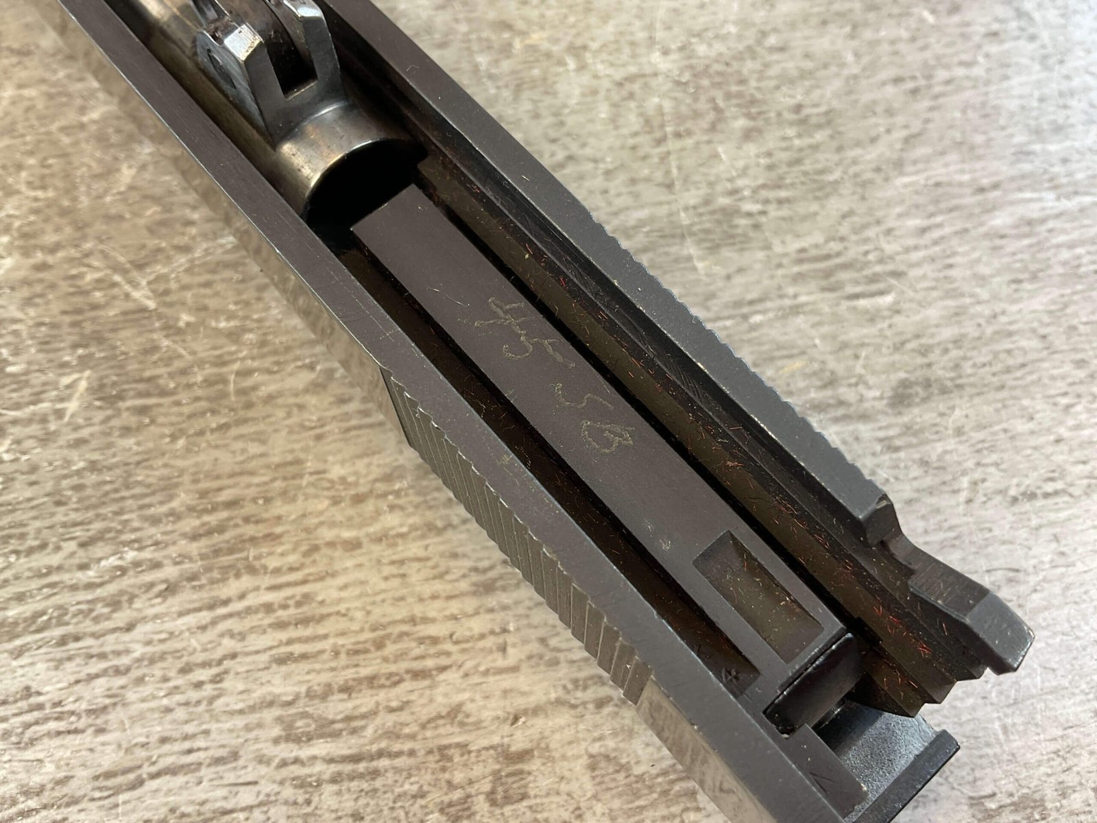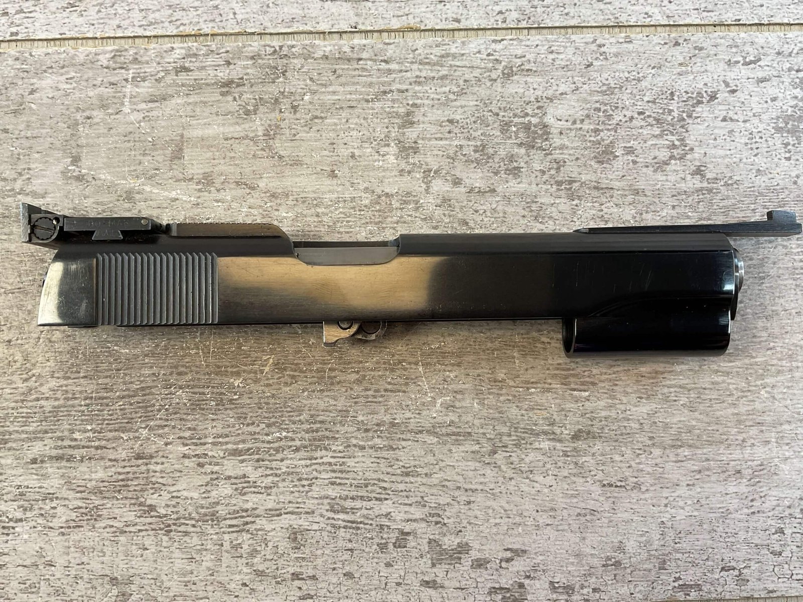 COLT WWII SLIDE & NM BARREL W/TARGET SIGHTS, BOMAR SIGHTS, EXC “P” MARKED BARREL & NM BUSHING, OVERALL CONDITION AS SEEN IN PHOTOS.
