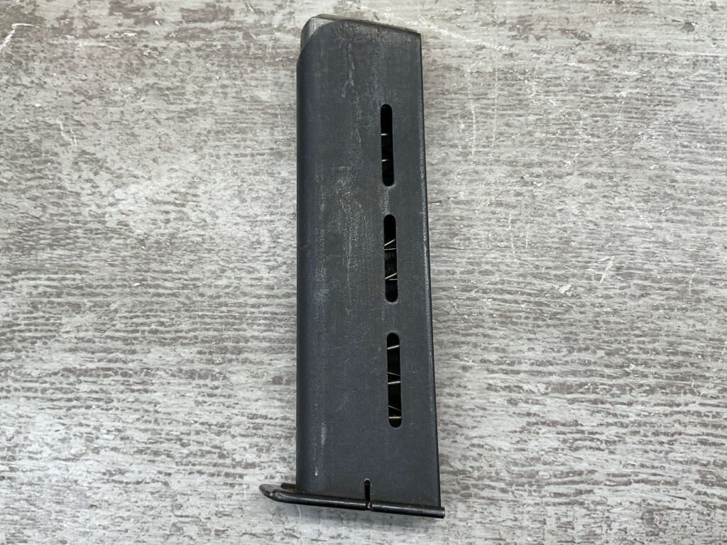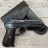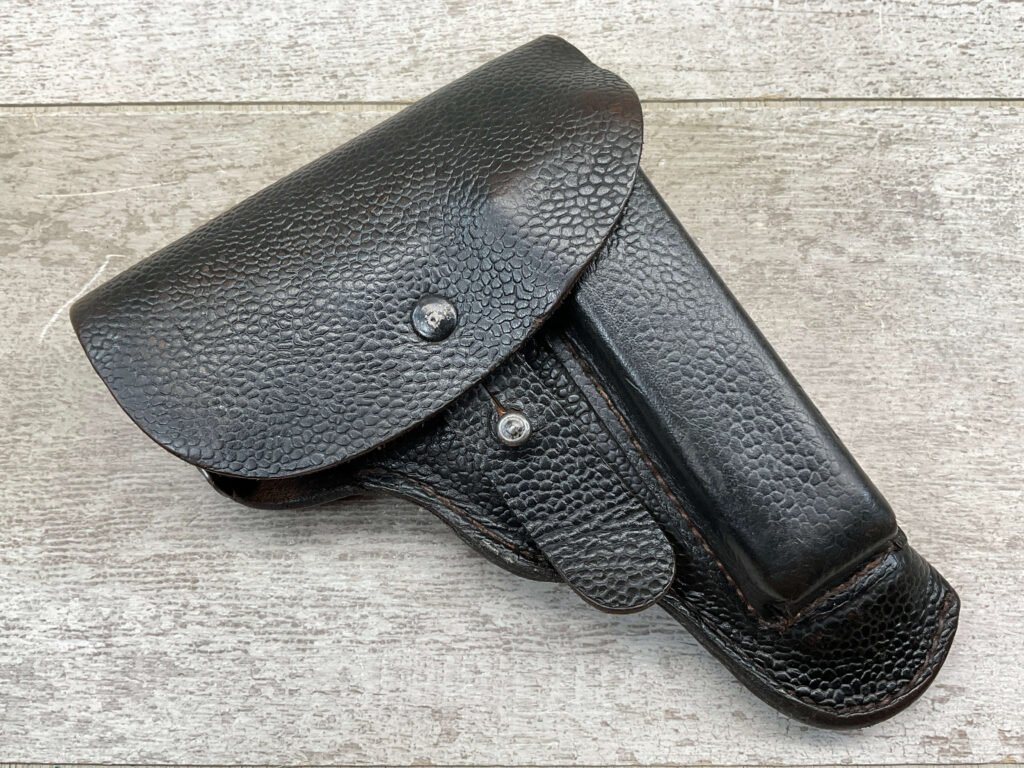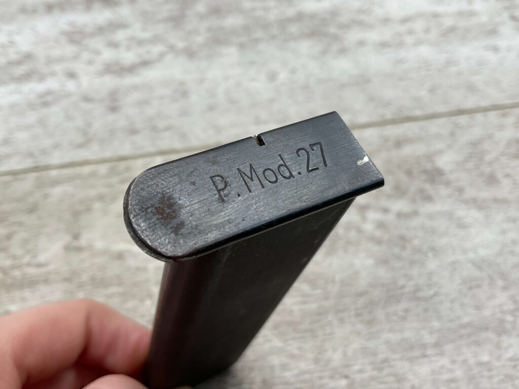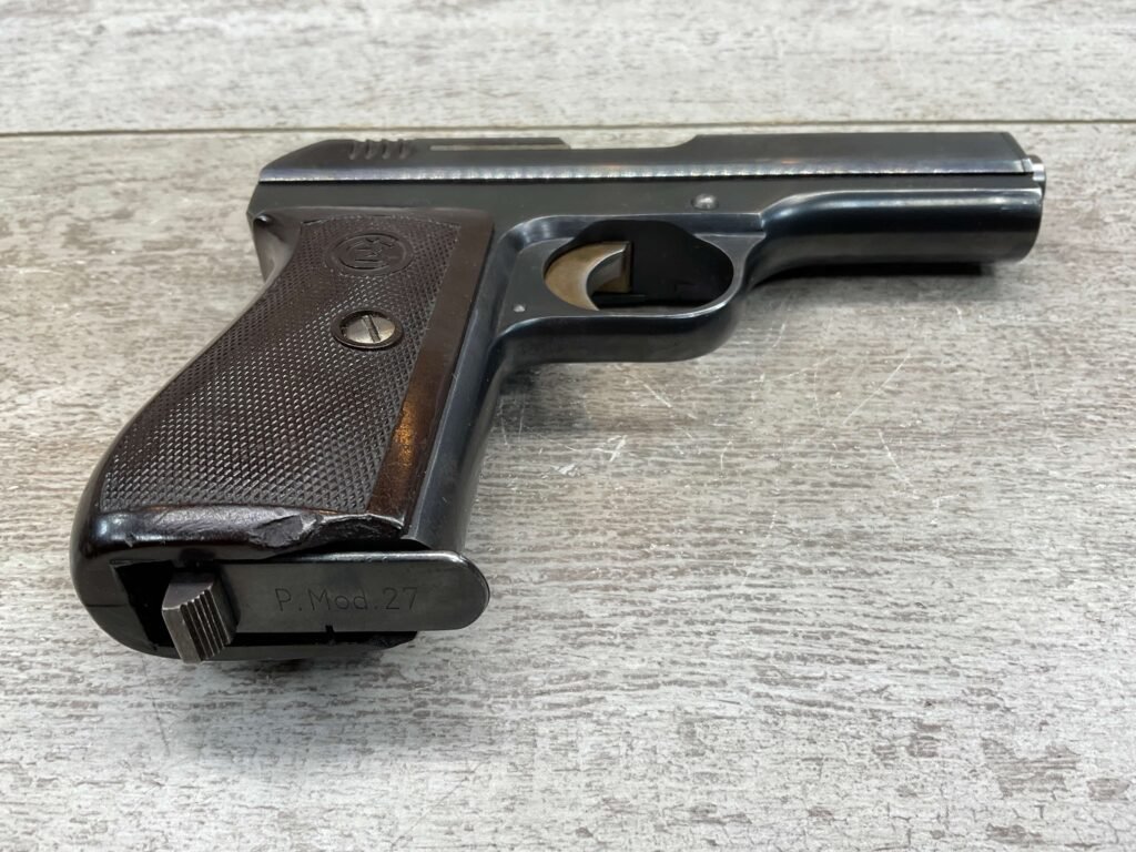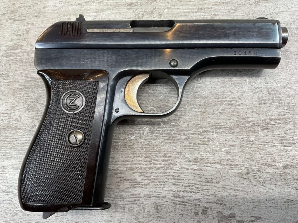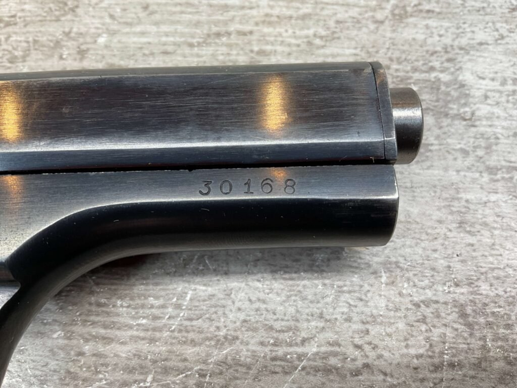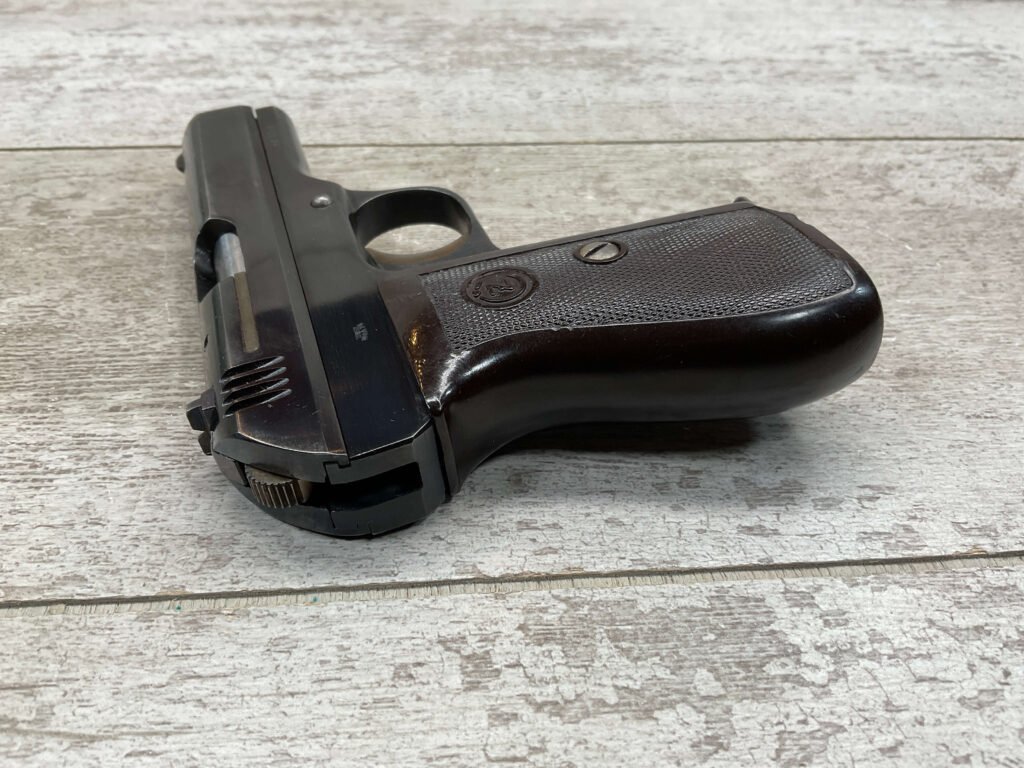 CZ27 7.65MM NAZI MARKED W/2 MAGS & HOLSTER #30168, “PISTOLE MODELL 27 KAL 7.65” ON LEFT SIDE OF SLIDE, “BOHMISCHE WAFFENFABRIK A.G. IN PRAG WaA76 30168″” TOP OF SLIDE, EXC BLACK PEBBLE GRAIN HOLSTER & EXTRA MAG “P.MOD 27” MARKED BASE, EXC BRIGHT BORE & RIFLING, VG PLASTIC GRIPS W/ SMALL PIECE MISSING ON RIGHT SIDE, “WaA76 PROOFED FRAME & BARREL, ALL MATCHING, 95%+ OVERALL