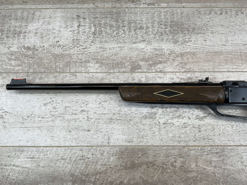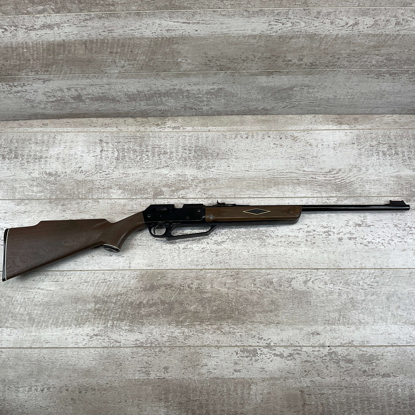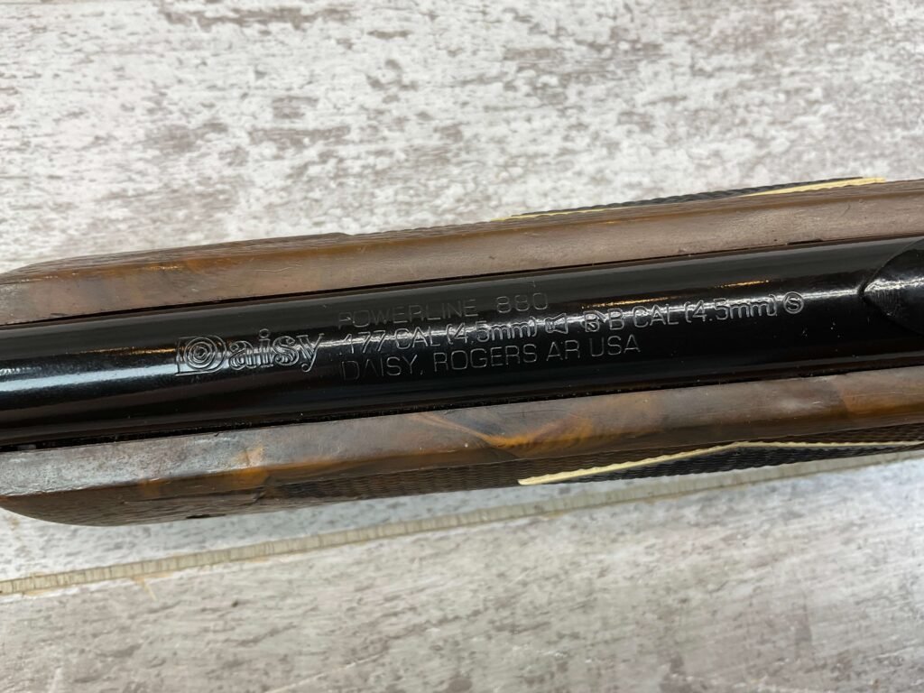 DAISY MODEL 880 POWERLINE .177 CAL AIR RIFLE, IN VG CONDITION WITH MINIMAL WEAR, SOME DISCOLORATION AND PAINT MISSING ON BODY, 95% OVERALL