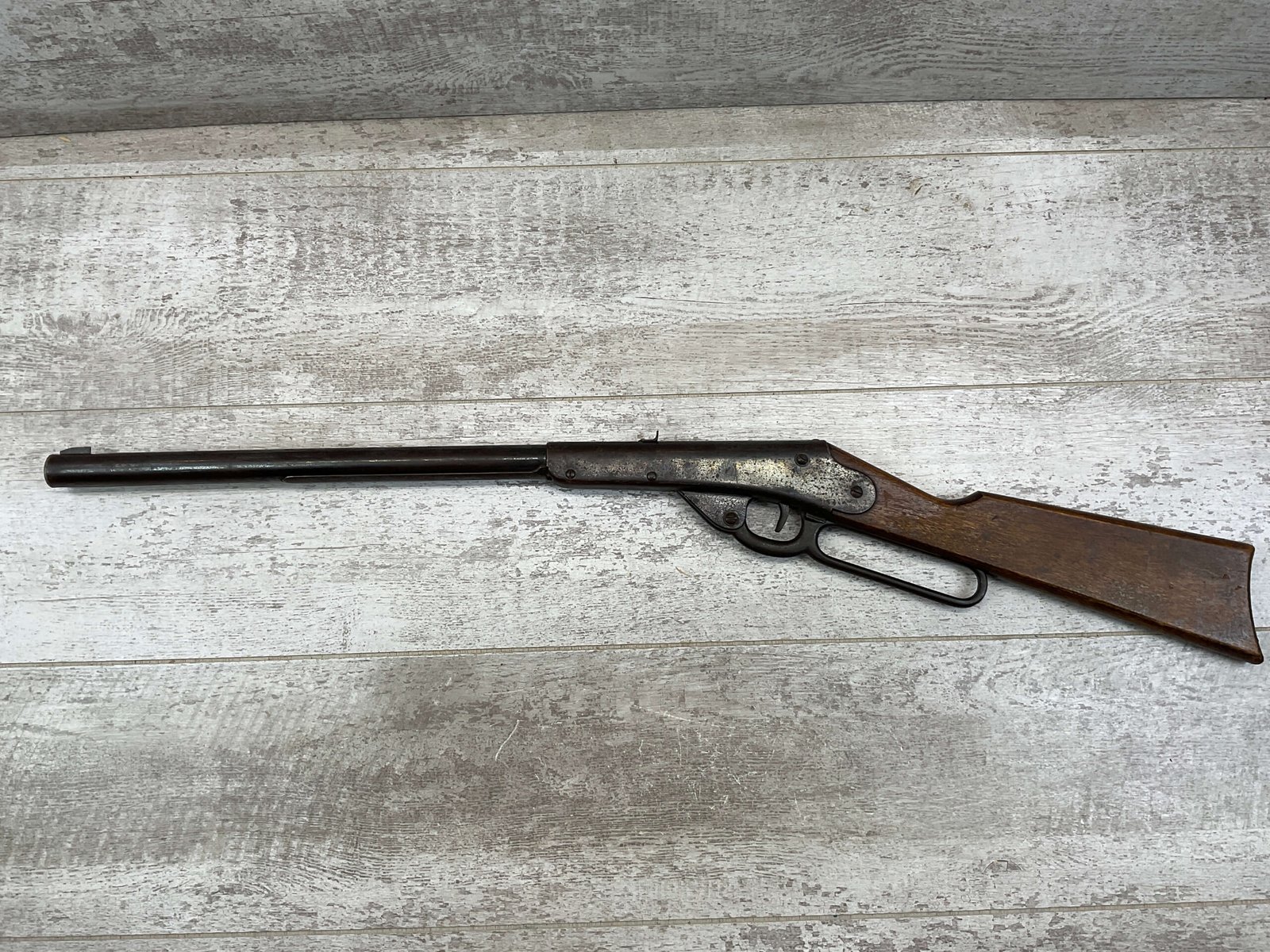 DAISY MODEL B 500 SHOT AIR RIFLE, VINTAGE, MARKED “PAT.OCT.1.1901-JULY 19.1904”, STOCK IS IN VG CONDITION, BARREL IS IN GOOD CONDITION WITH WEAR, OVERALL 90%