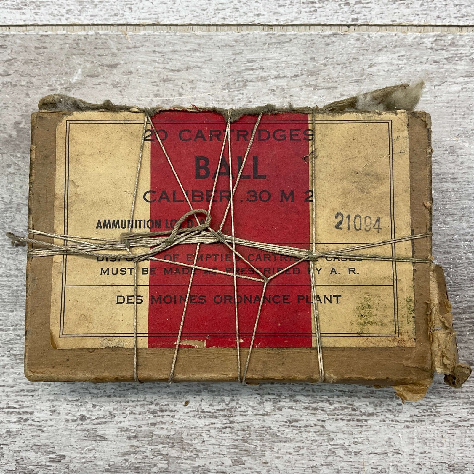 DES MOINES ORDANANCE PLANT BALL CALIBER .30 M2 VINTAGE AMMO, QTY 20, MANUFACTURED IN DES MOINES IN 1942 THRU 1945Â HEAD STAMP INCLUDES DM AND 4