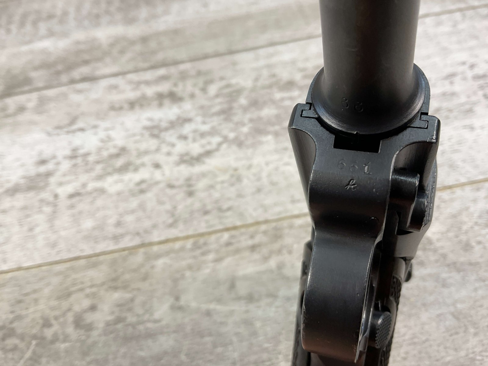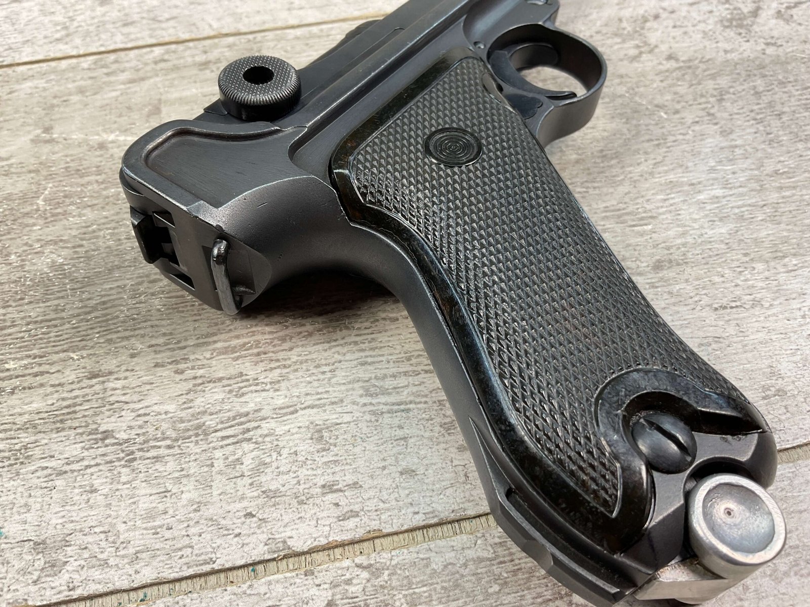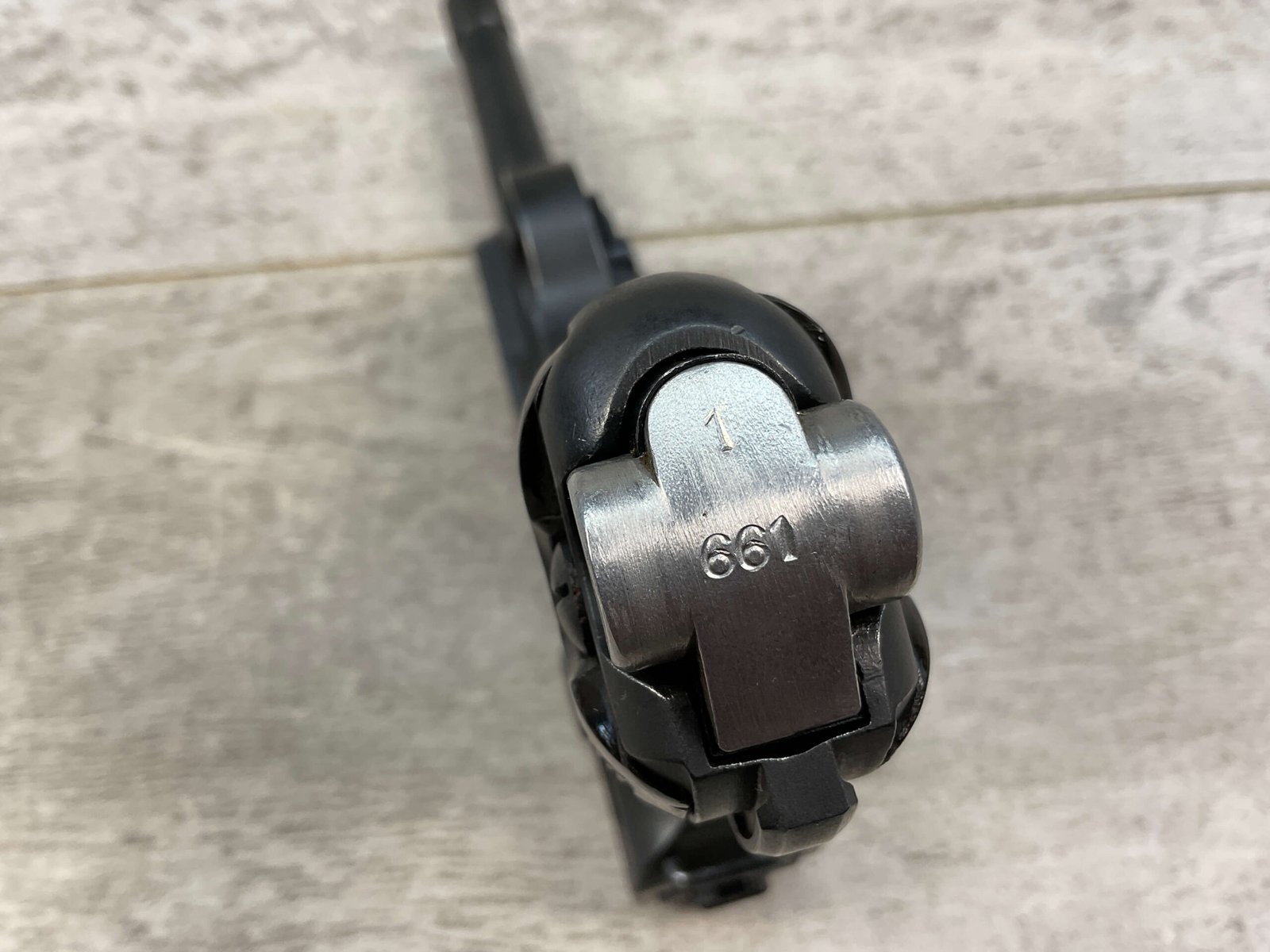 DWM LUGER P08 POLICE REWORK 9MM SEMI AUTO PISTOL #661k, EXC REBLUE FINISH, EXC BLACK GRIPS, VG-EXC BORE & RIFLING, REWORKED, 1917/1920 CHAMBER DATES, “1/N.6.11.” UNIT MARK ON FRONT GRIP STRAP, MOSTLY MATCHING, ONE BLUED MAG W/ALUMINUM BASE INCLUDED, CONDITION AS SEEN IN PHOTOS!!