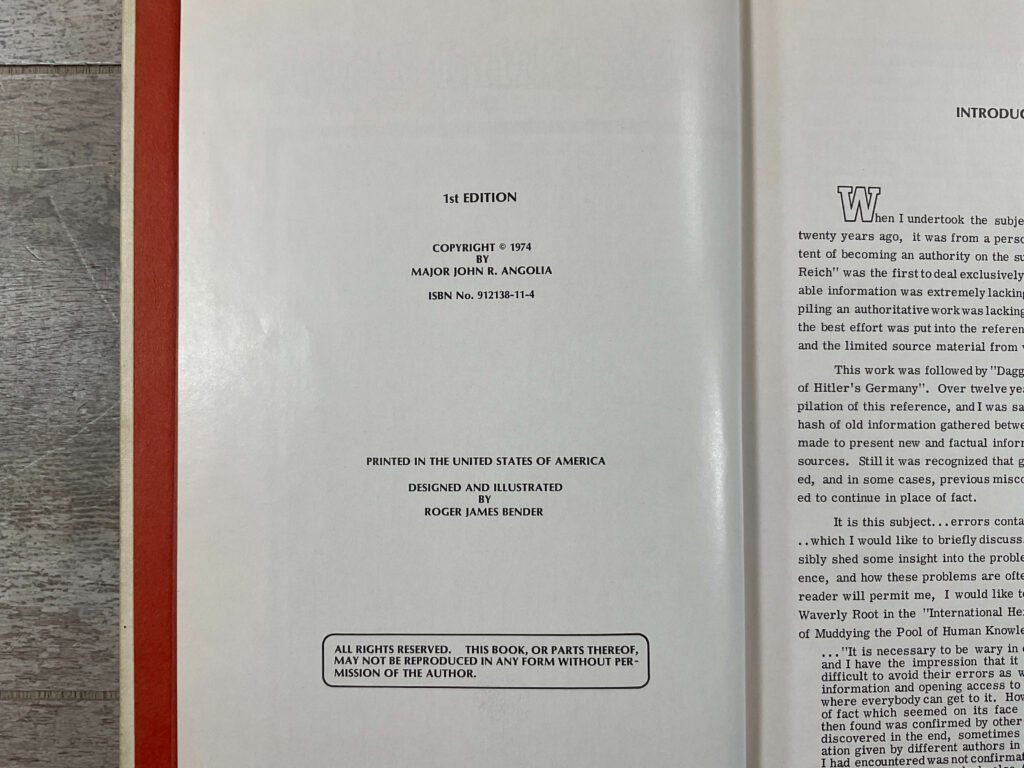 EDGED WEAPONRY OF THE THIRD REICH by MAJOR JOHN R. ANGOLIA, 1975, HARDCOVER, ISBN: 912138-11-4