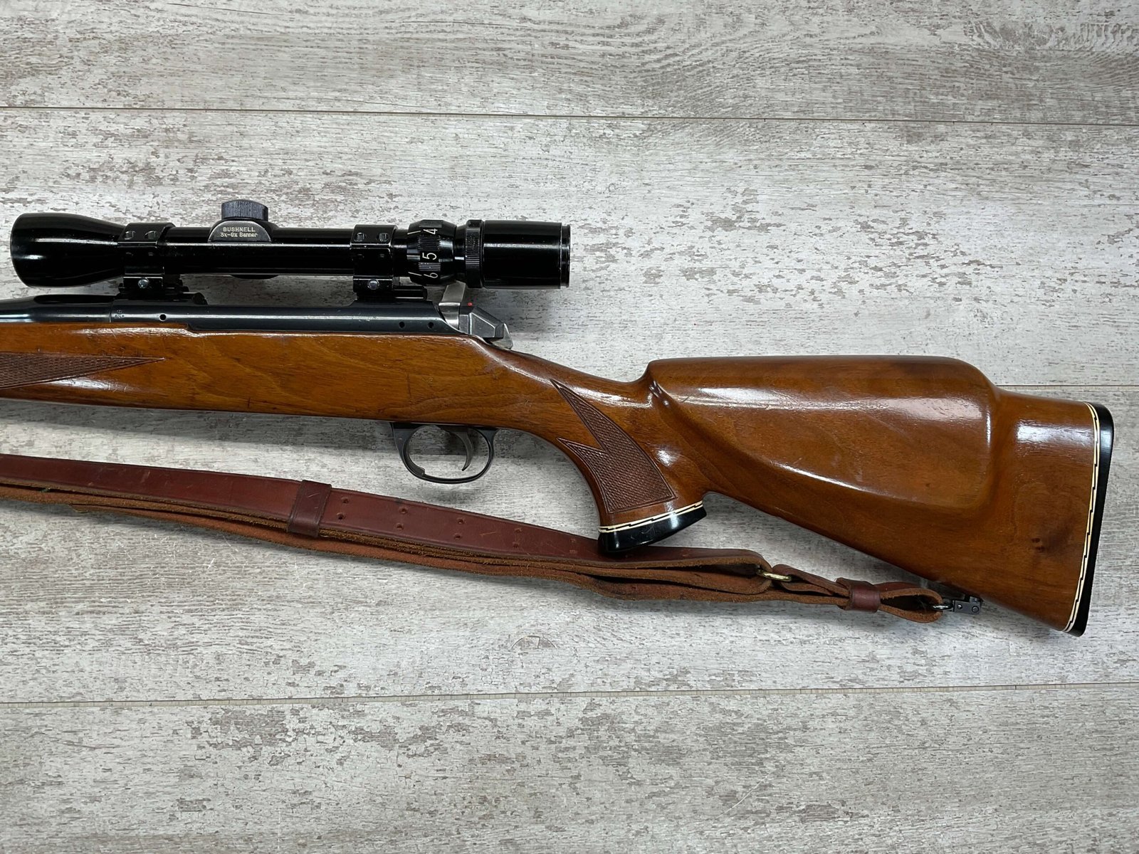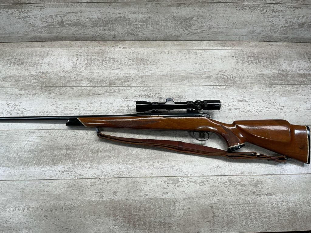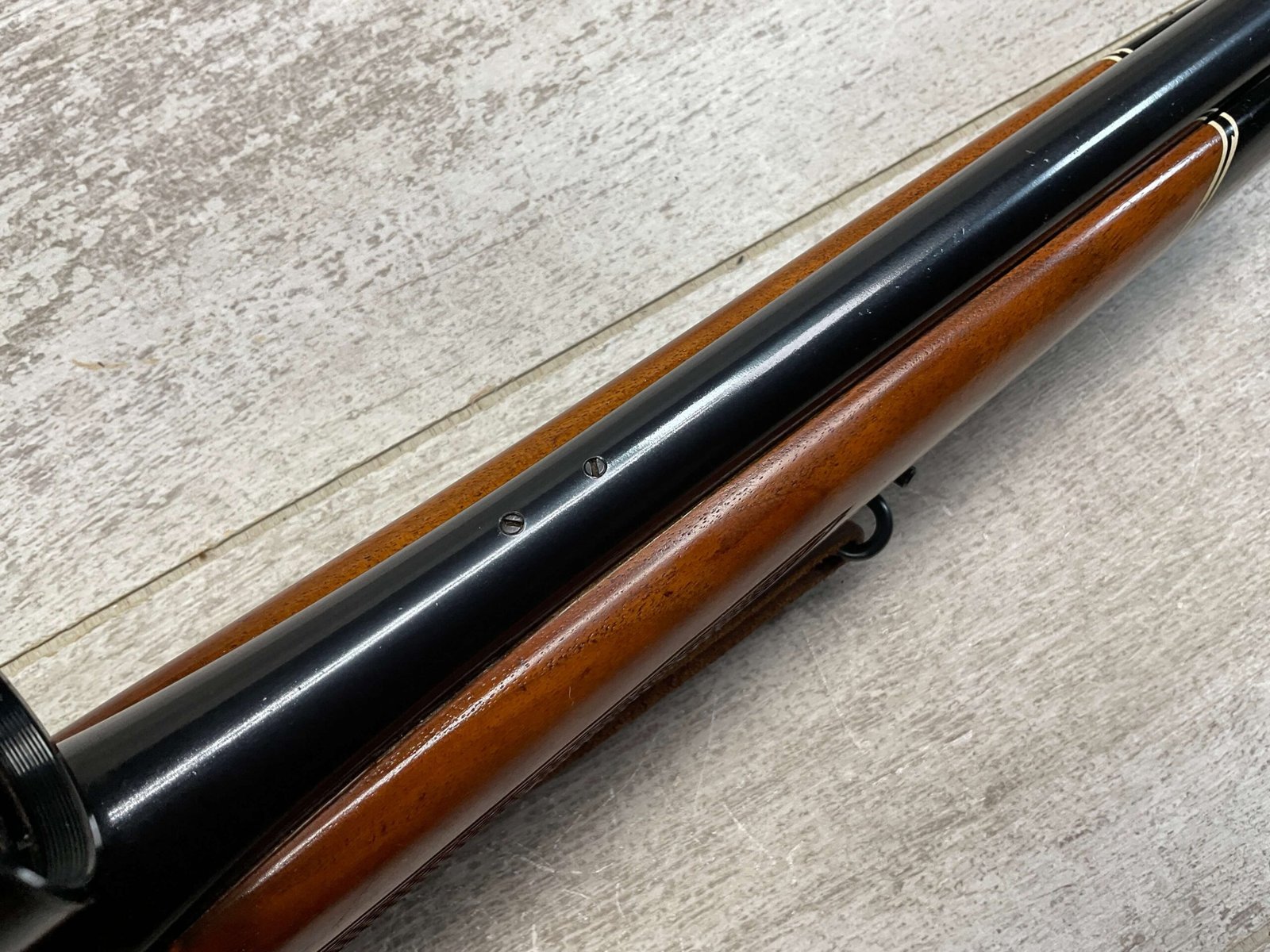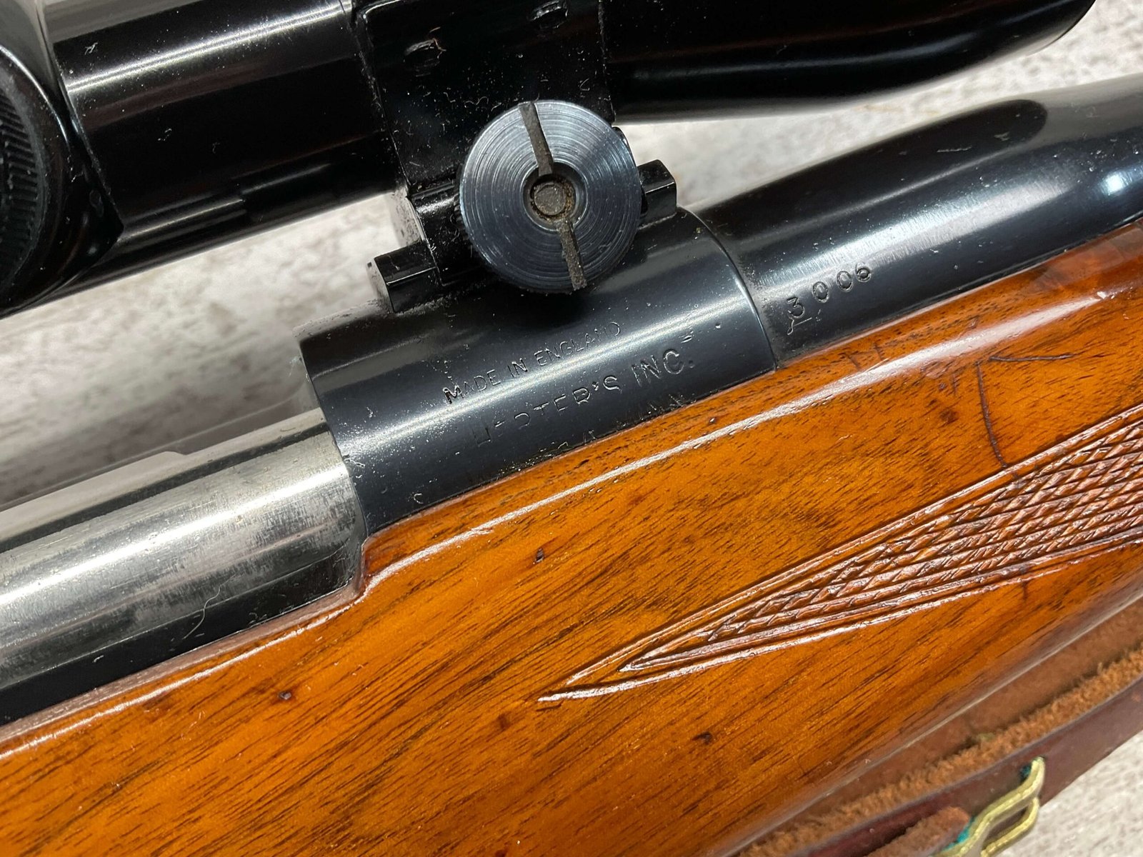 ENGLISH HERTER’S MODEL U-9 .30-06 BOLT ACTION RIFLE #NSN, 24″ BBL, VG-EXC CHECKERED WOOD STOCK W/LIGHT HANDLING/USE MARKS, MONTE CARLO SYLE STOCK, EXC BLUE W/COUPLE AREA OF FINISH WEAR, SLING SWIVELS & LEATHER SLING, VG BRIGHT BORE & STRONG RIFLING, BUSHNELL 3X-9X BANNER SCOPE, SMOOTH ACTION