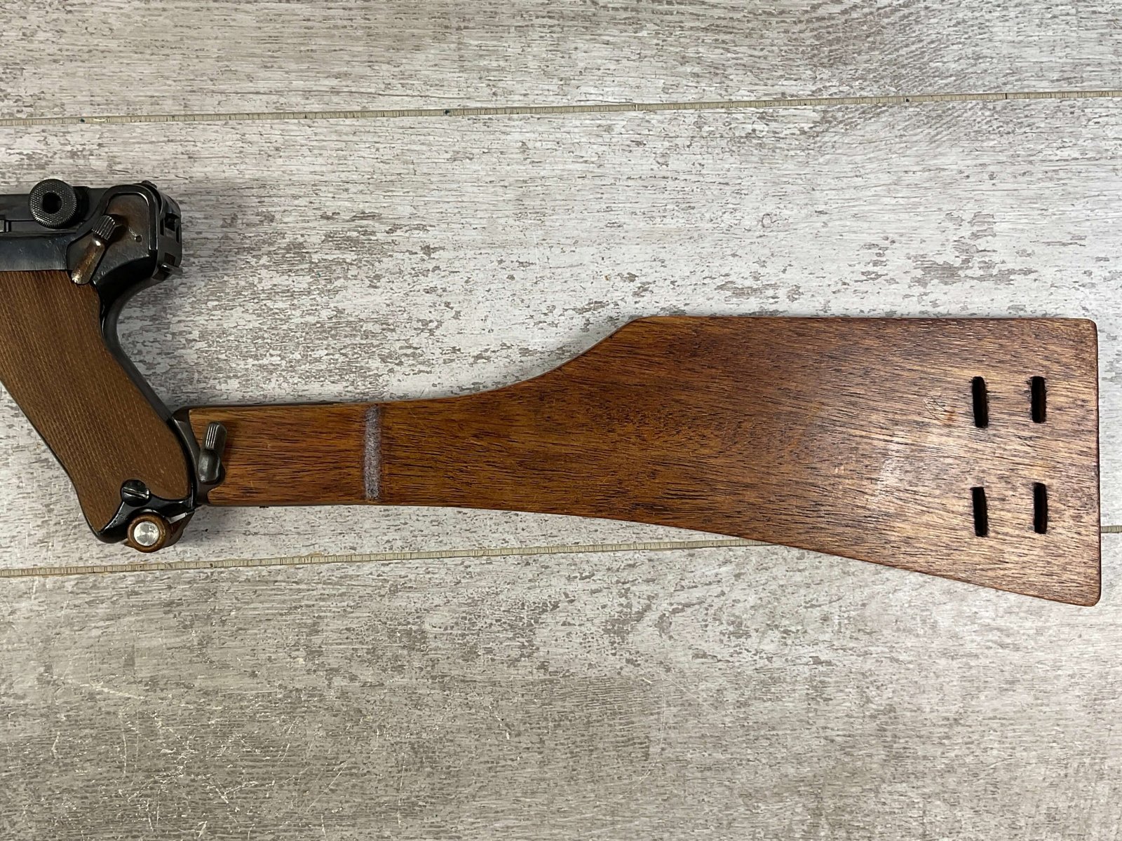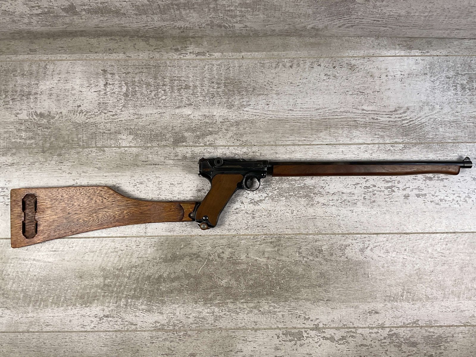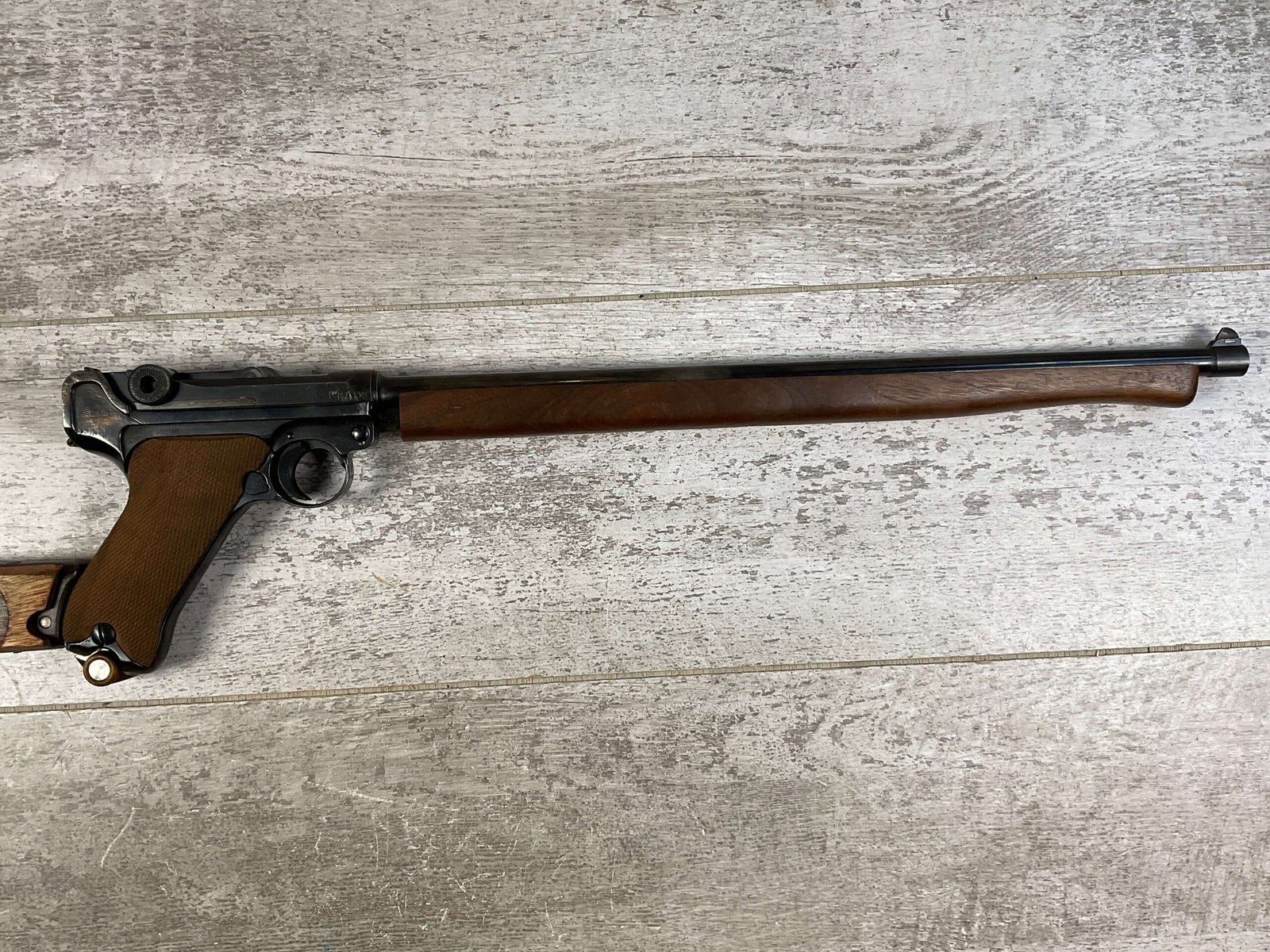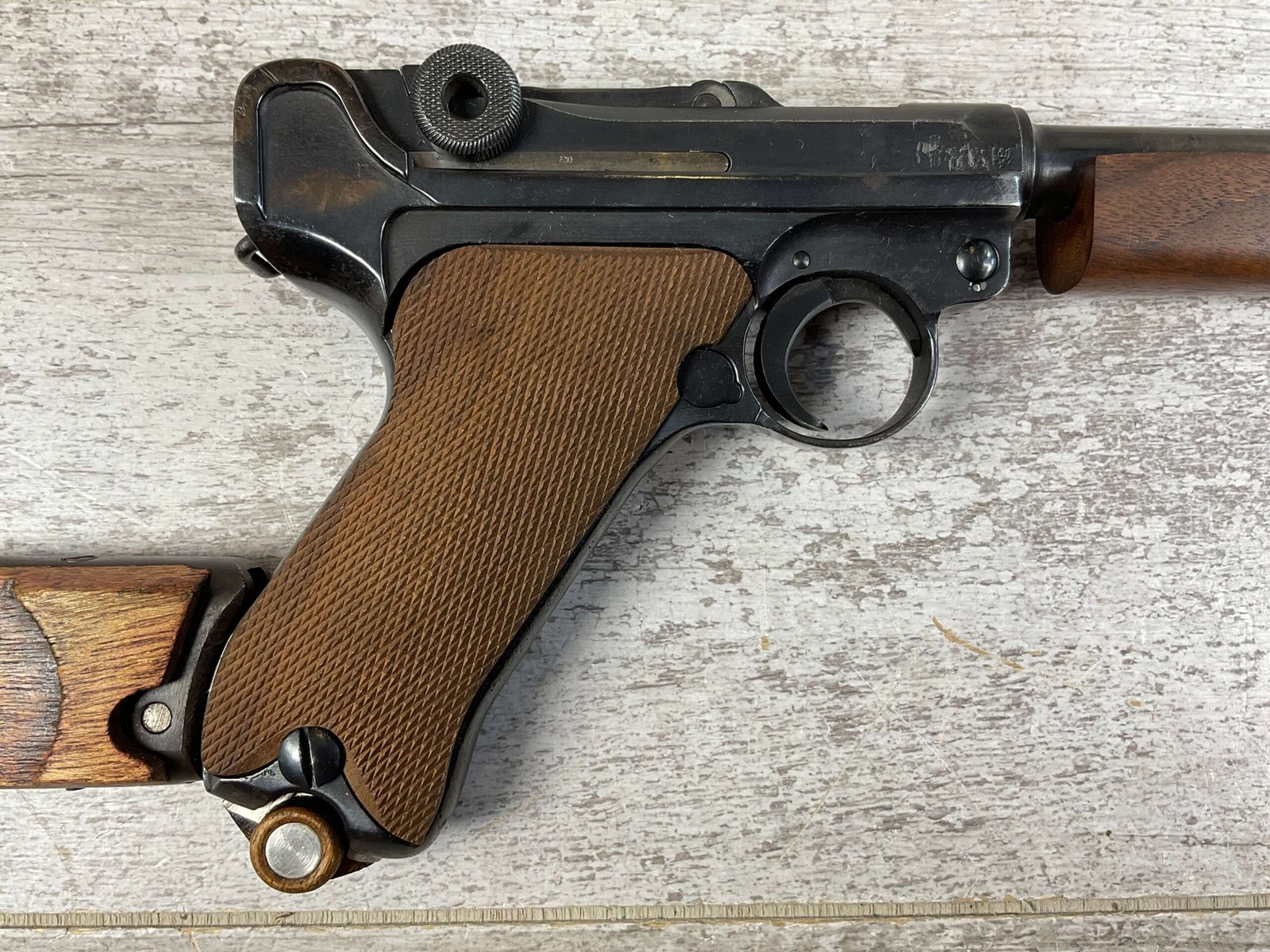 ERFURT LUGER P08 1920 9MM CARBINE SEMI AUTO PISTOL, JAMES EARL JONES COLLECTION #7851c, 16.25″ BARREL, EXC MINTY BORE & RIFLING, 70% REBLUE CONDITION, EXC REPRO GRIPS, VG UNMARKED STOCK, EXC EARLY SWISS MAGAZINE, CONDITION AS SHOWN IN PICTURES, FROM THE JAMES EARL JONES “FAVORITES” COLLECTION W/ CERTIFICATE OF AUTHENTICITY.